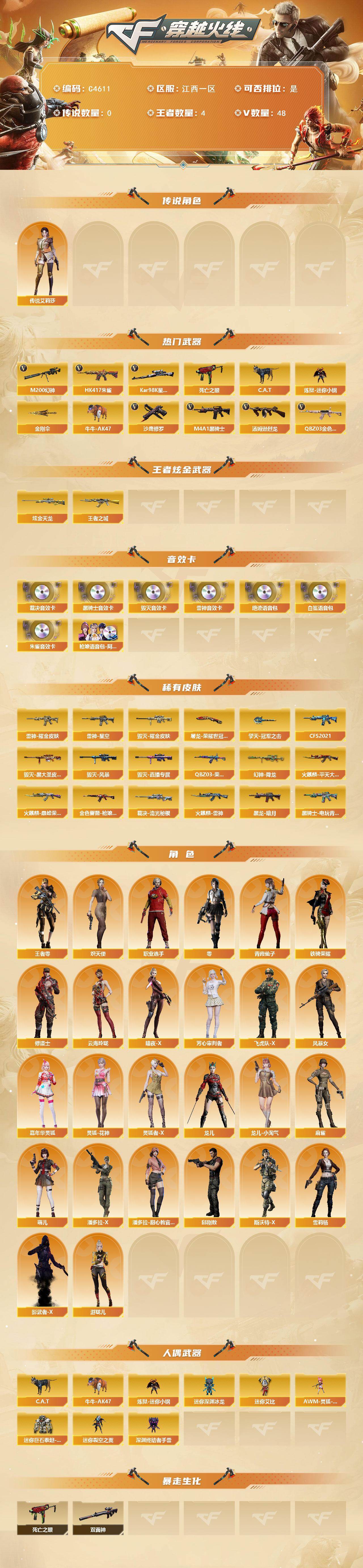 【C4611】江西一区-51V-4王者武器数-1炫金武器数