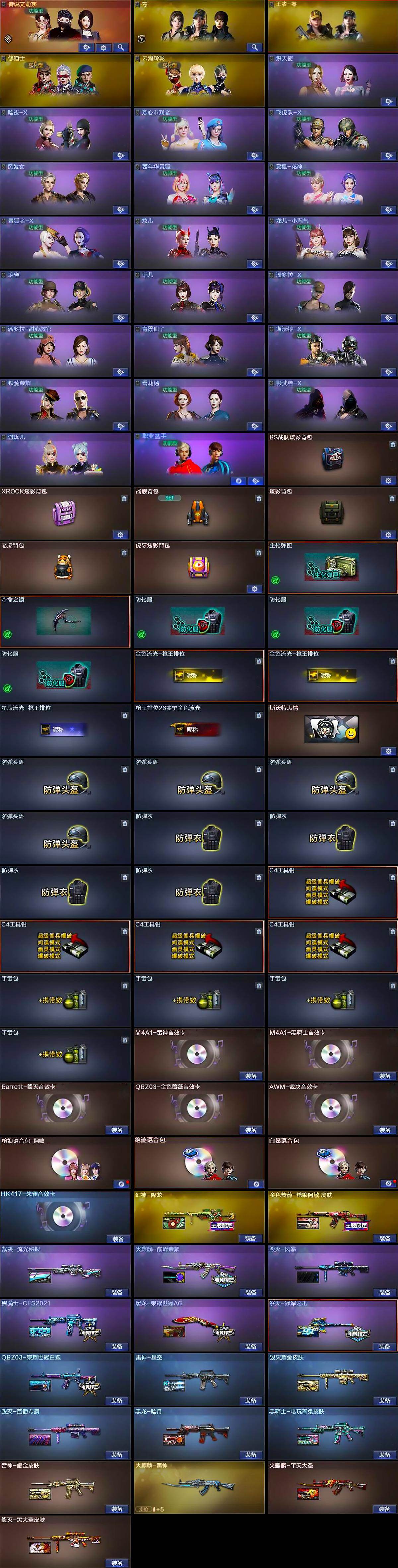 【音效卡】:M4A1-雷神音效卡,M4A1-黑骑士音效卡,Barrett-毁灭音效卡,AWM-裁决音效卡,枪娘语音包-阿敏,绝迹语音包,白鲨语音包,HK417-朱雀音效卡