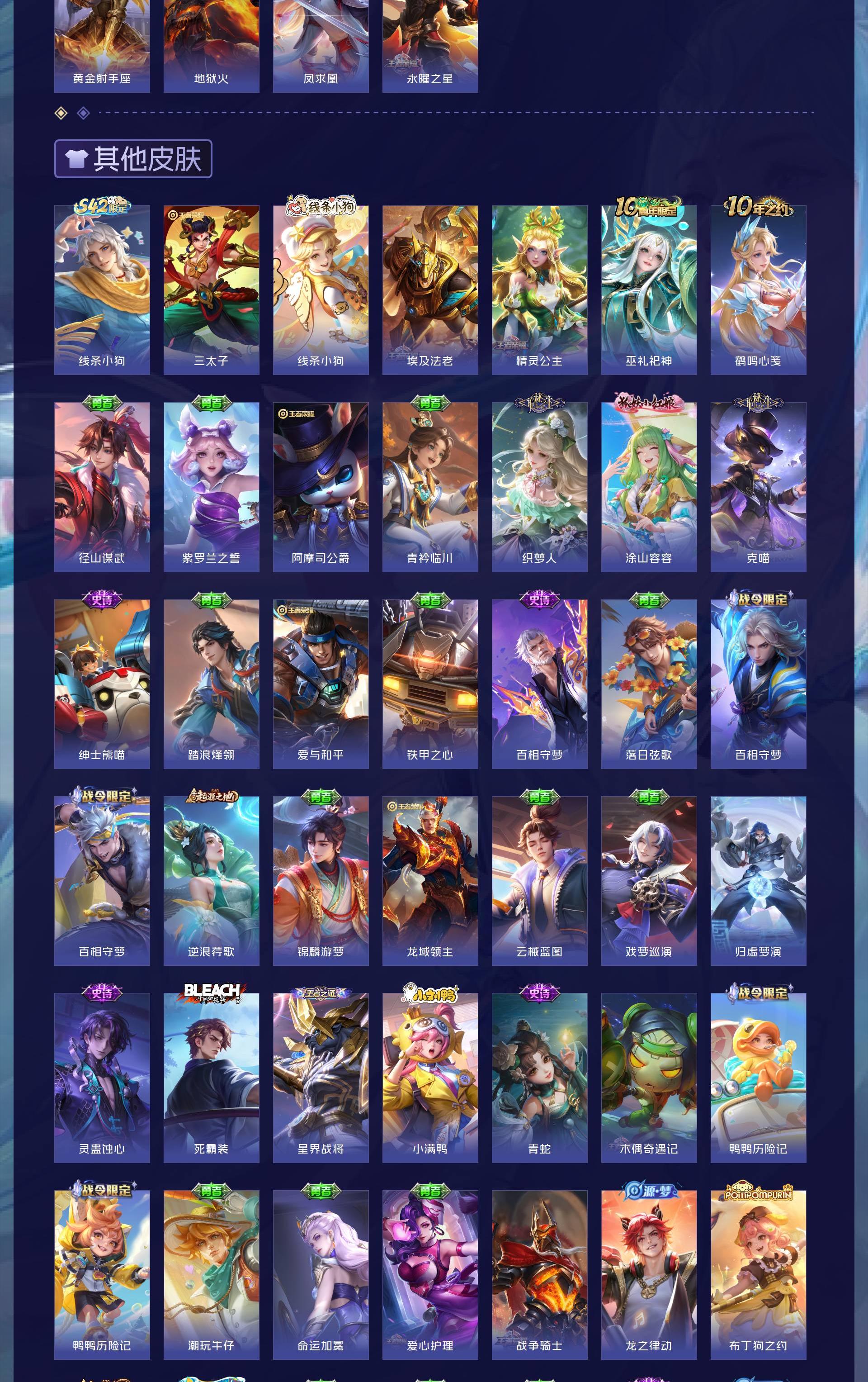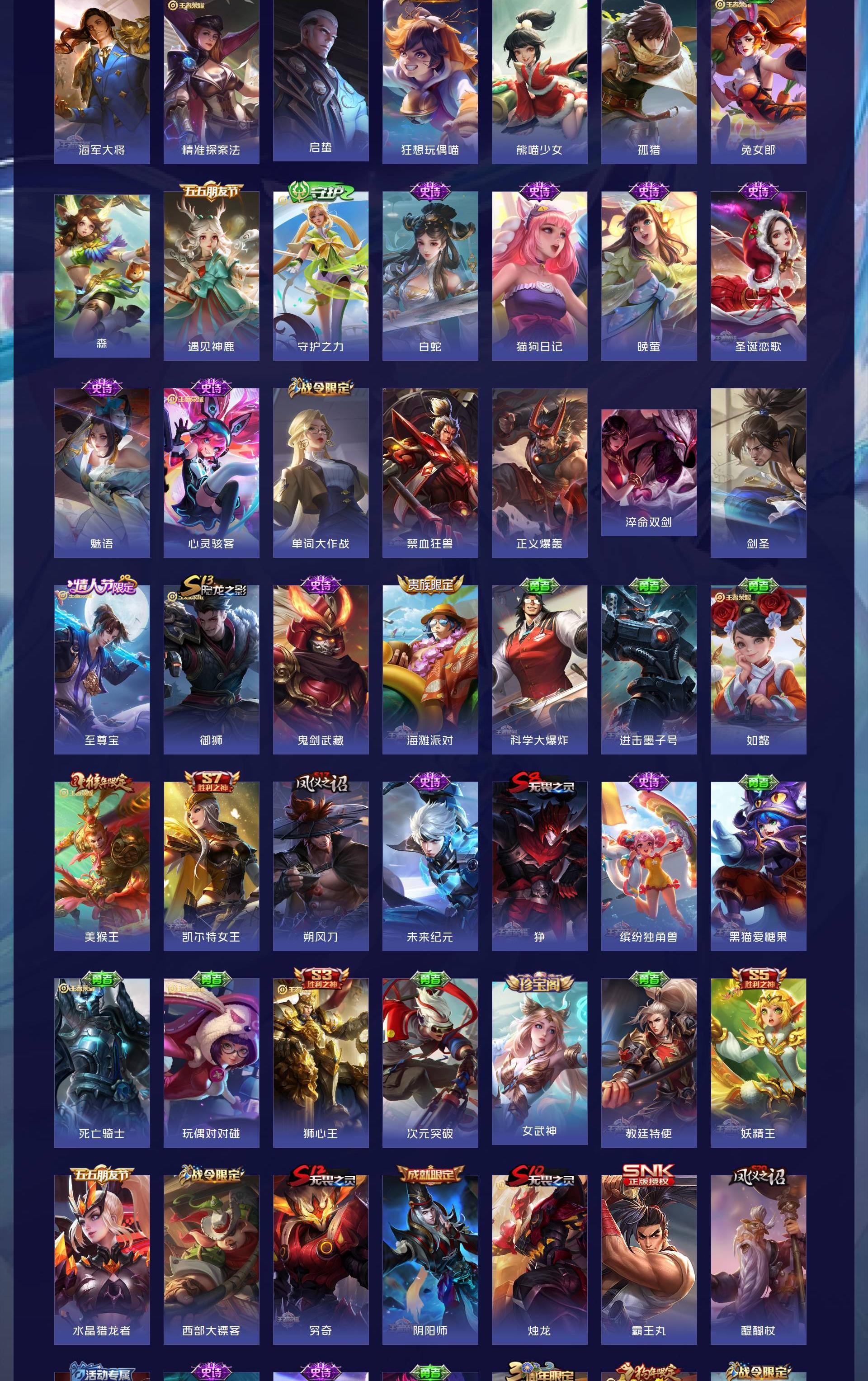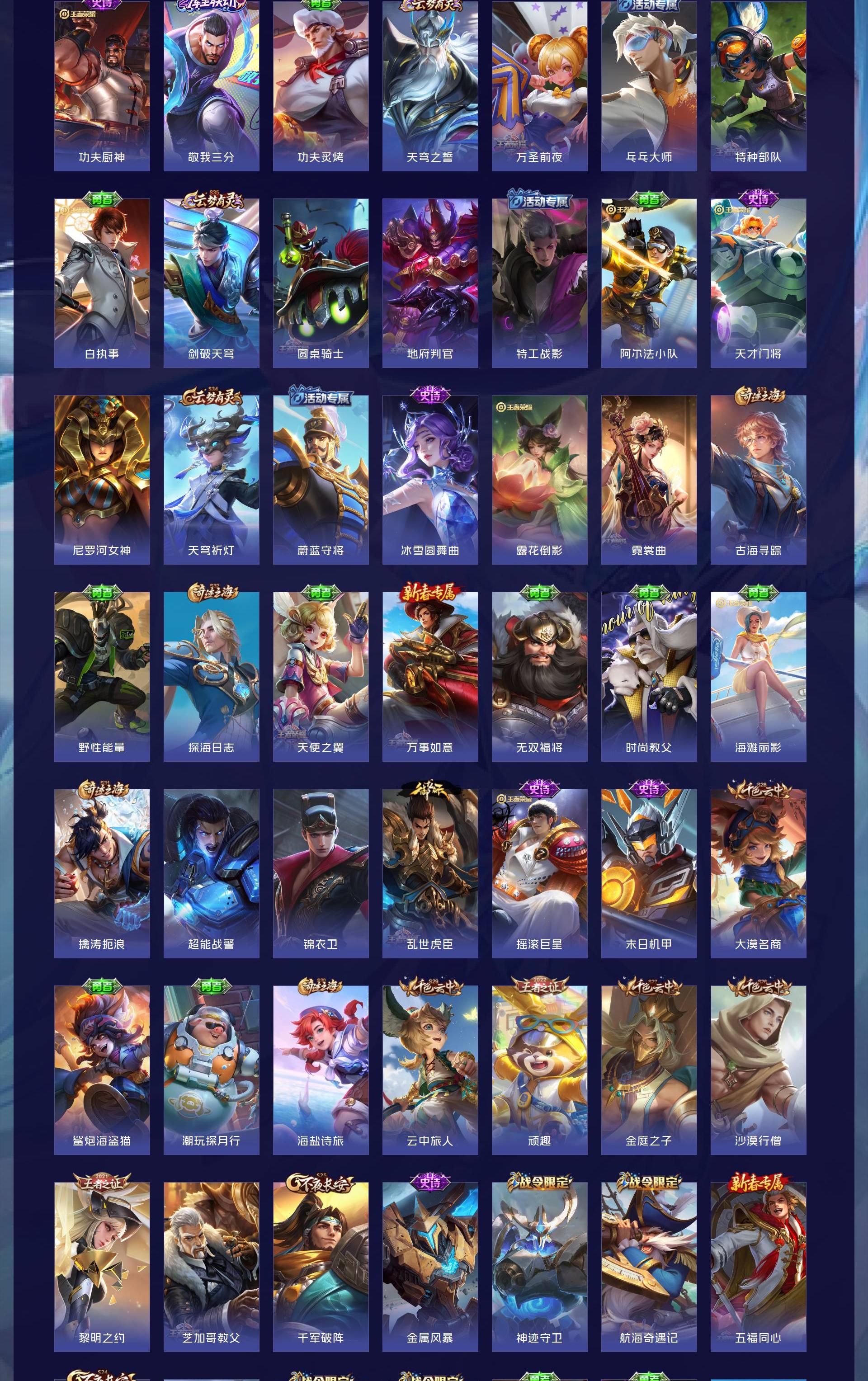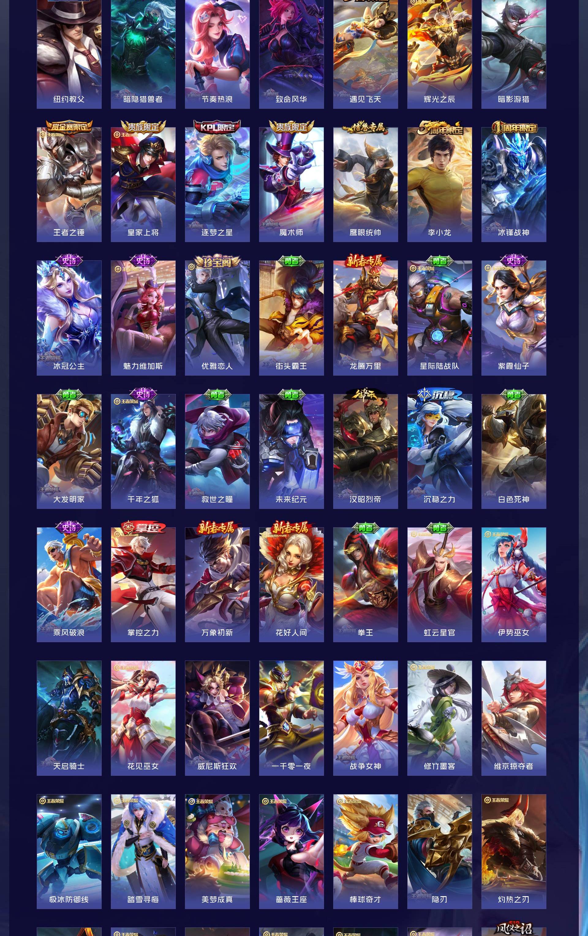 V8 皮肤343 英雄128 永恒钻石 荣耀典藏3 珍品传说2 传说18 其他皮肤324