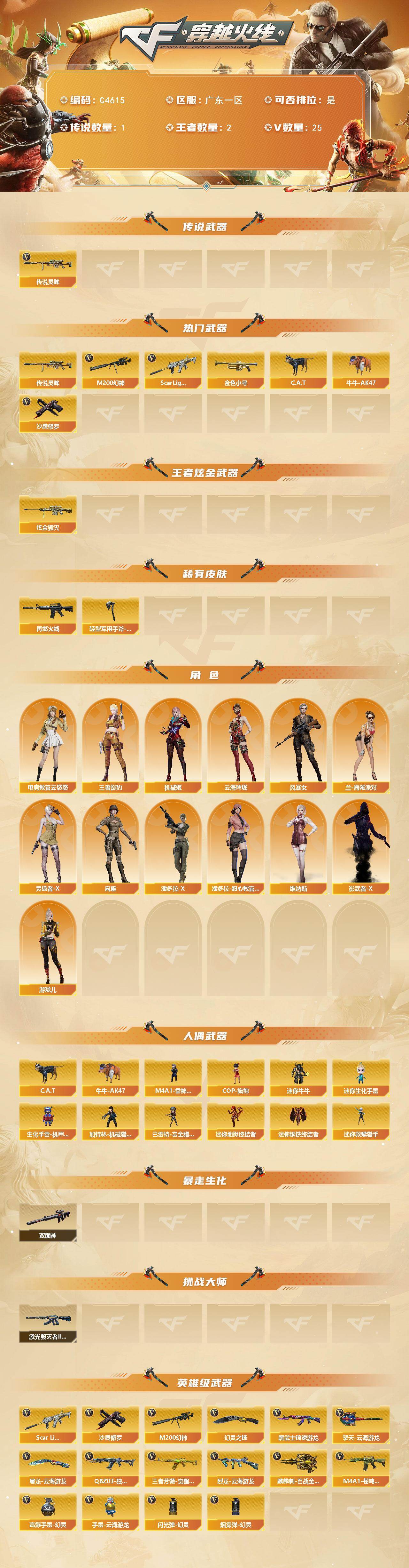 【C4615】广东一区-27V-2王者武器数-1炫金武器数