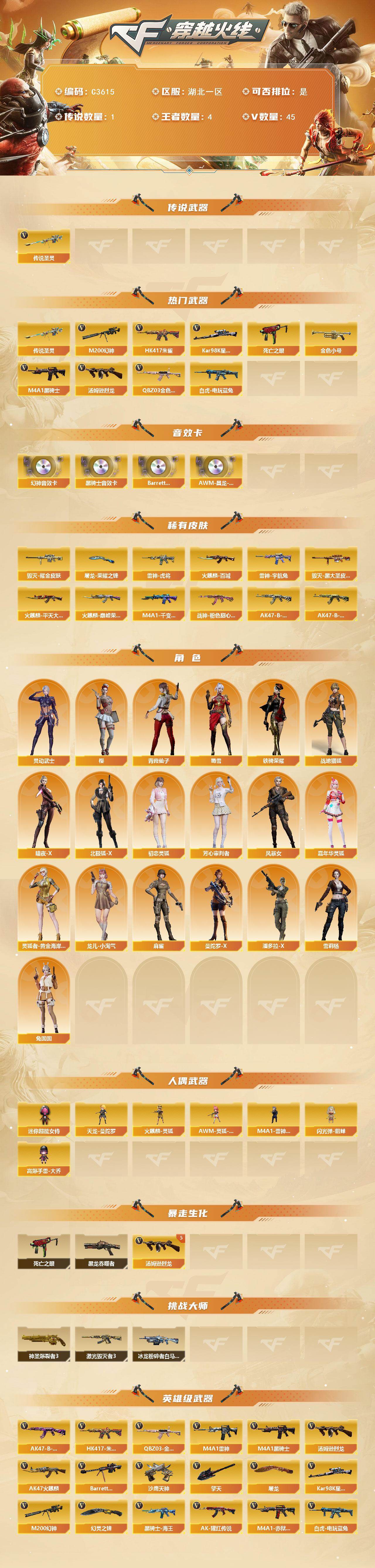 【C3615】湖北一区-49V-4王者武器数-0炫金武器数