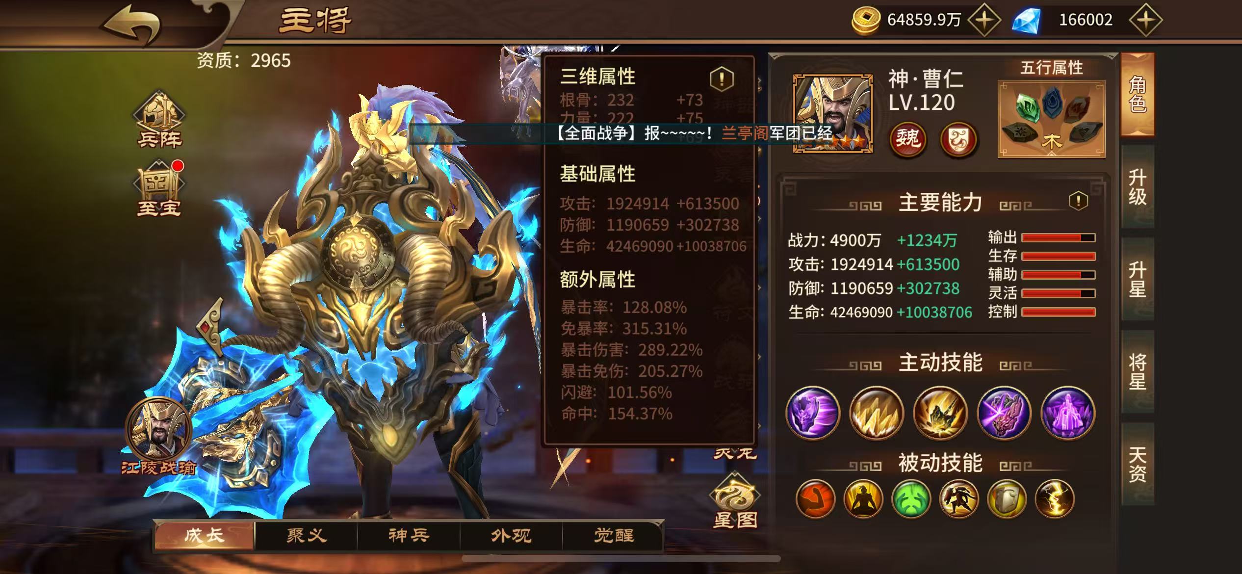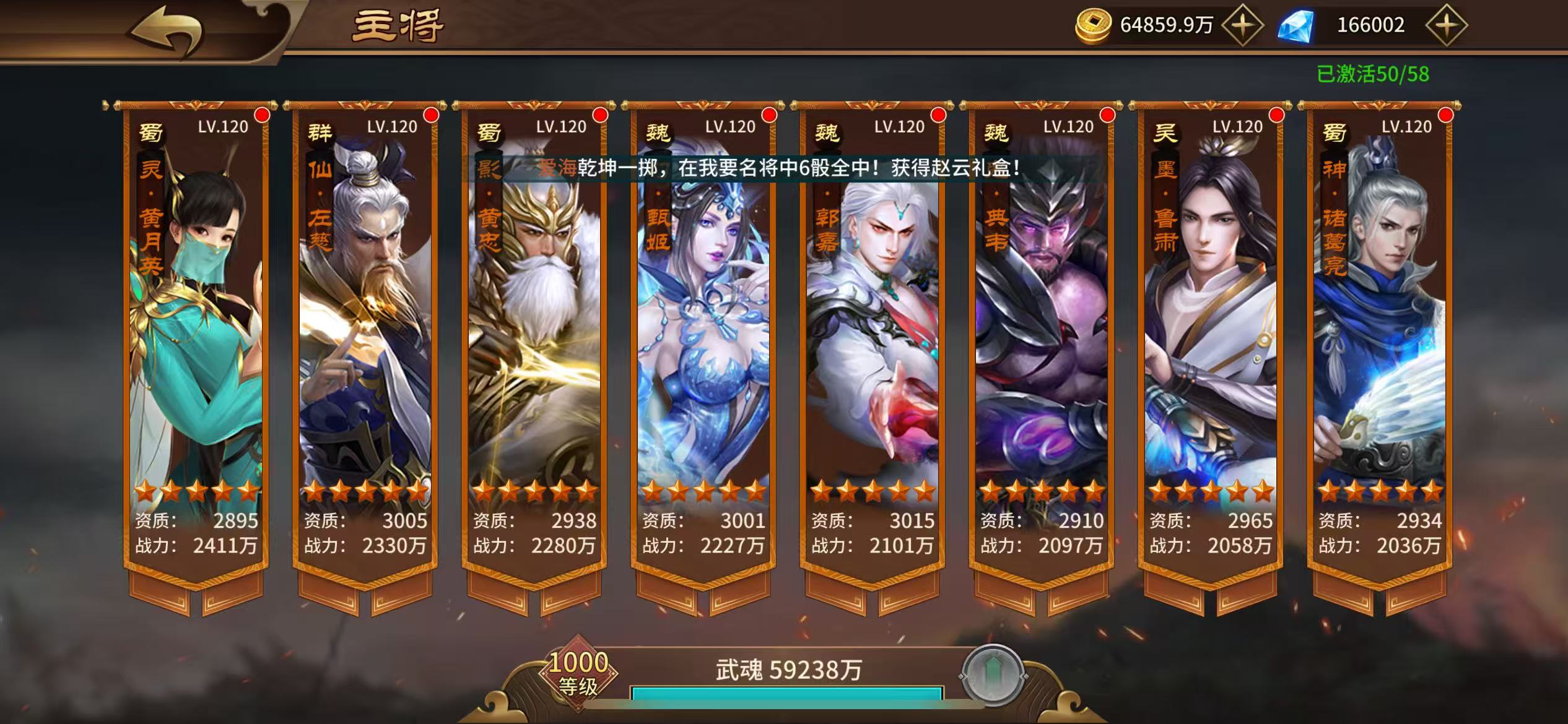 曹仁魏延等7橙将,3299灯,六月份自选新橙,可双核,凤凰狻猊,巅峰张角,盛怒迷踪套洗完