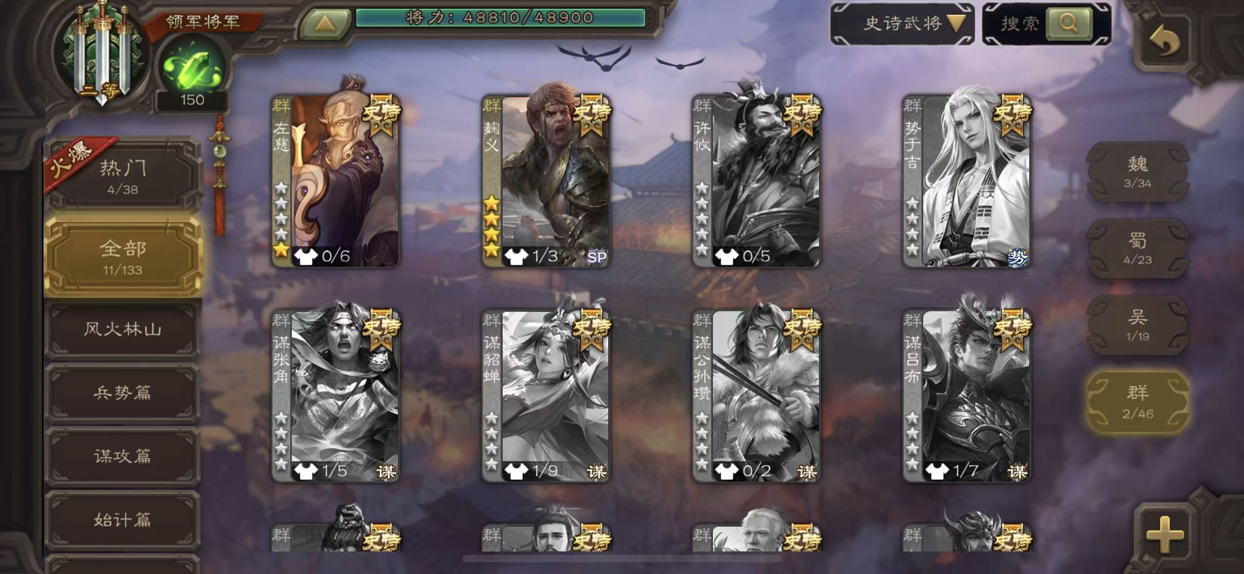 史诗武将数量: