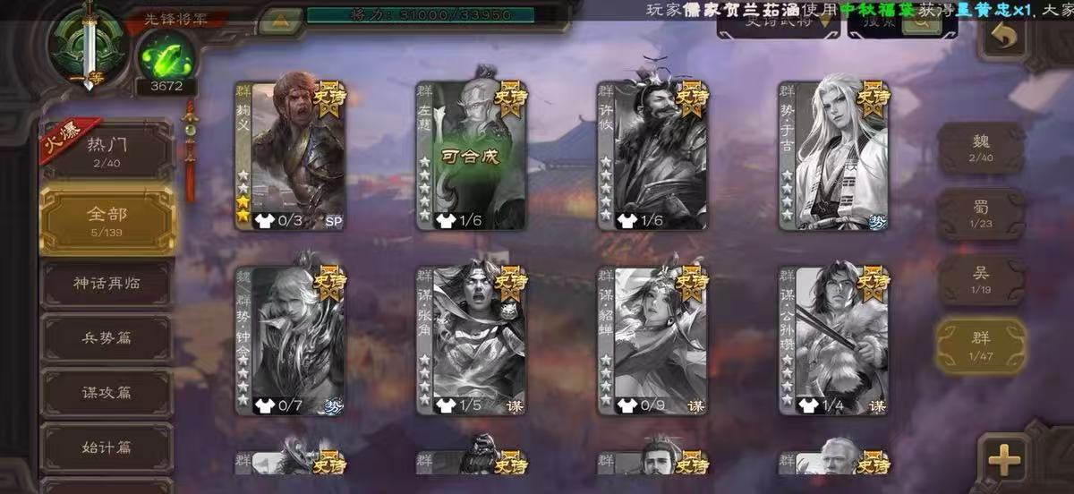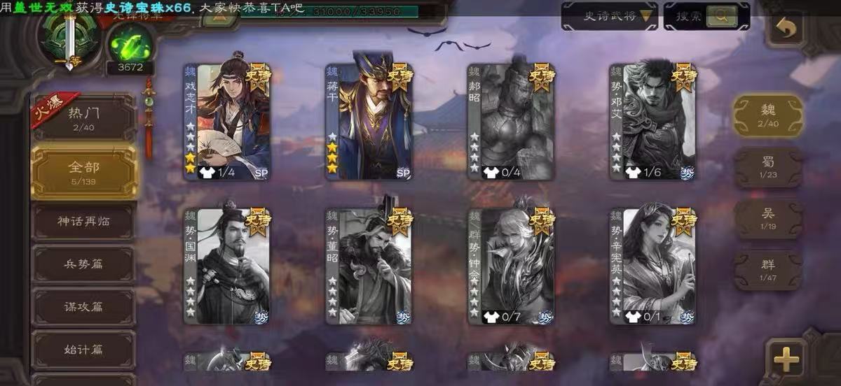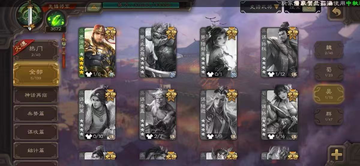 史诗武将数量: