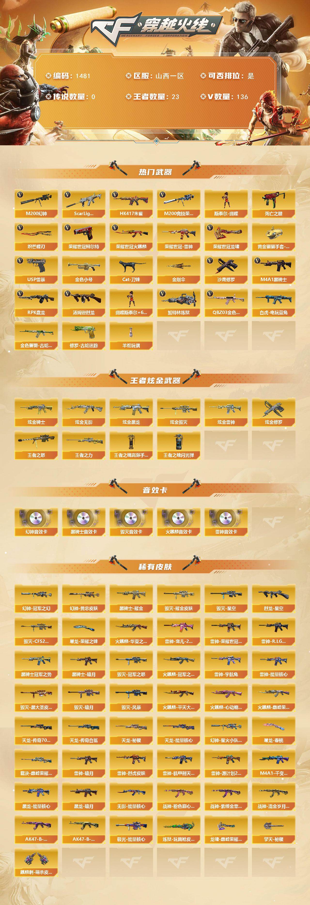 山西一区-149V-23王者武器数-9炫金武器数【热门武器】:QBZ03-金