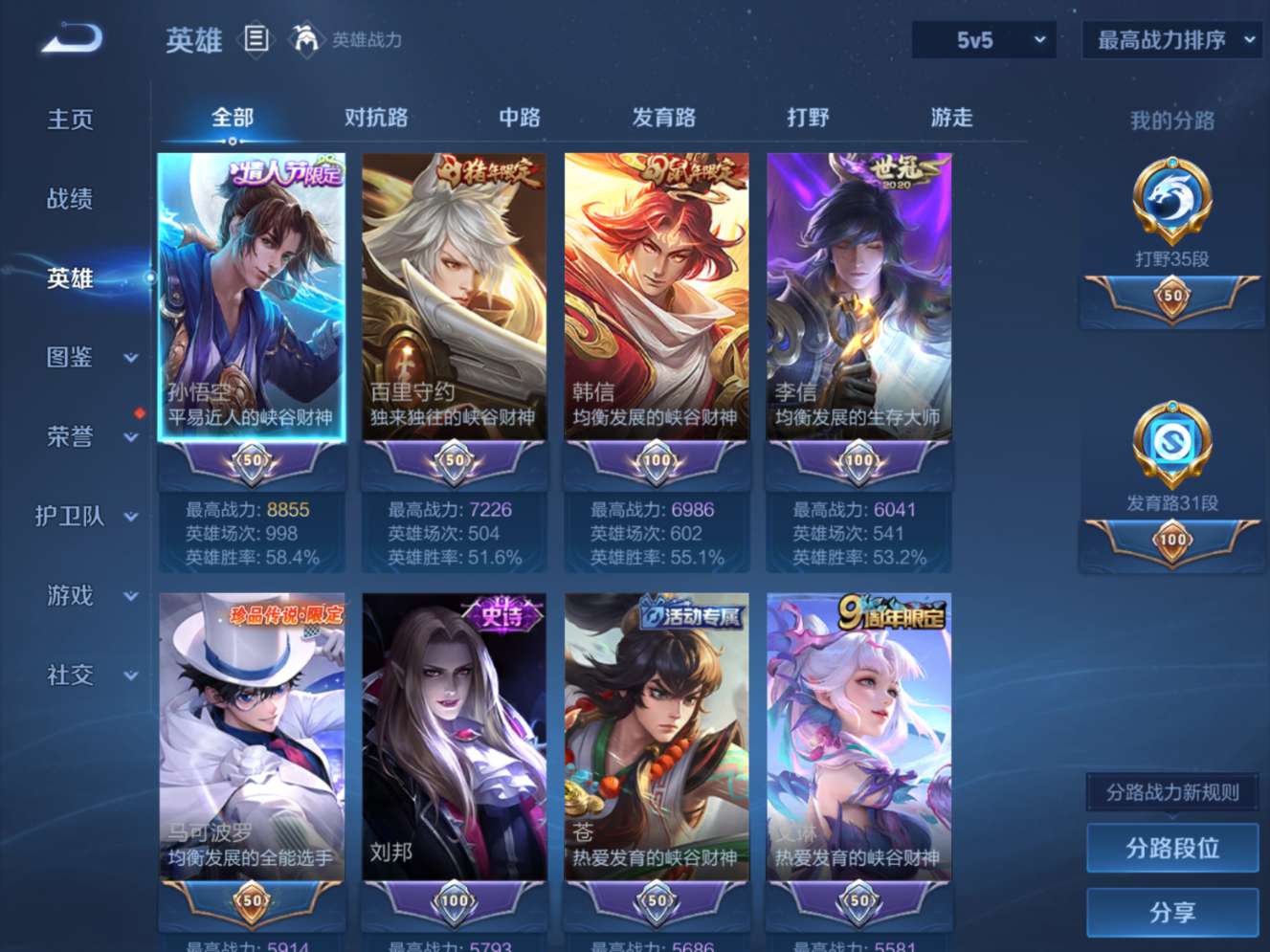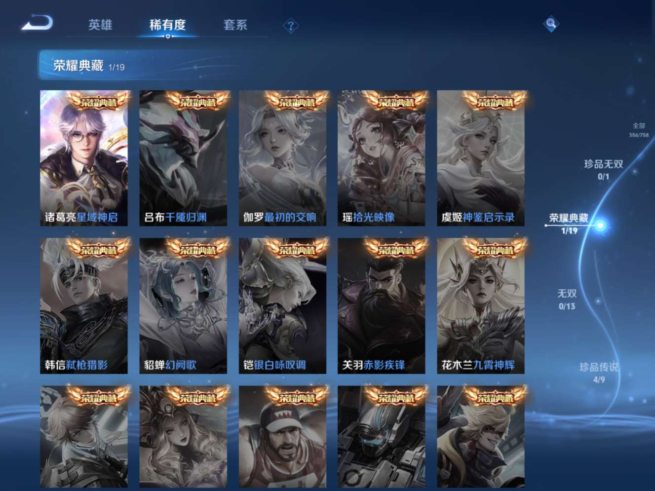 128英雄-356皮肤--V8-1典藏4珍品传说15传说 打野35段 发育路31段 【典藏】 星域神