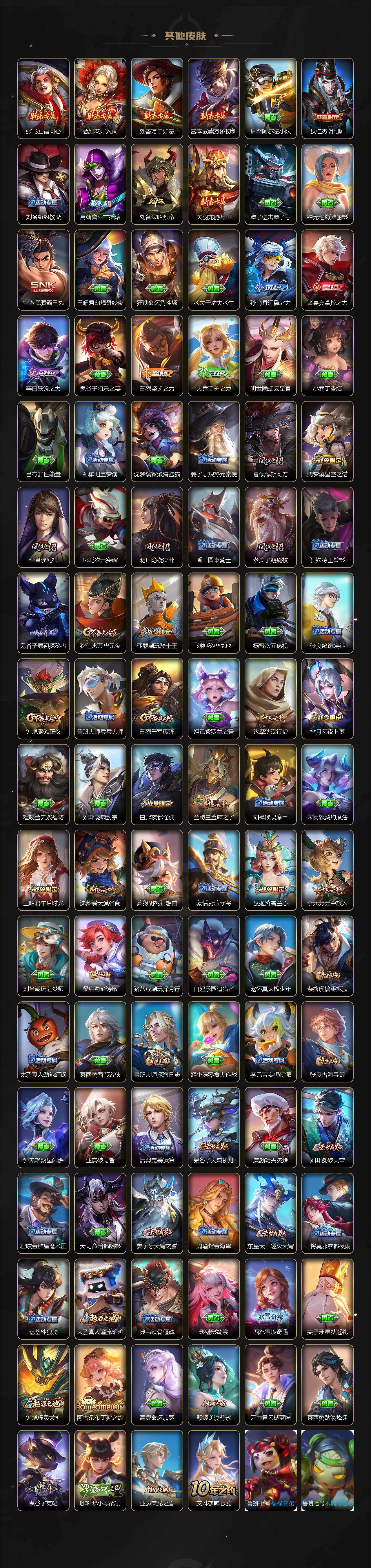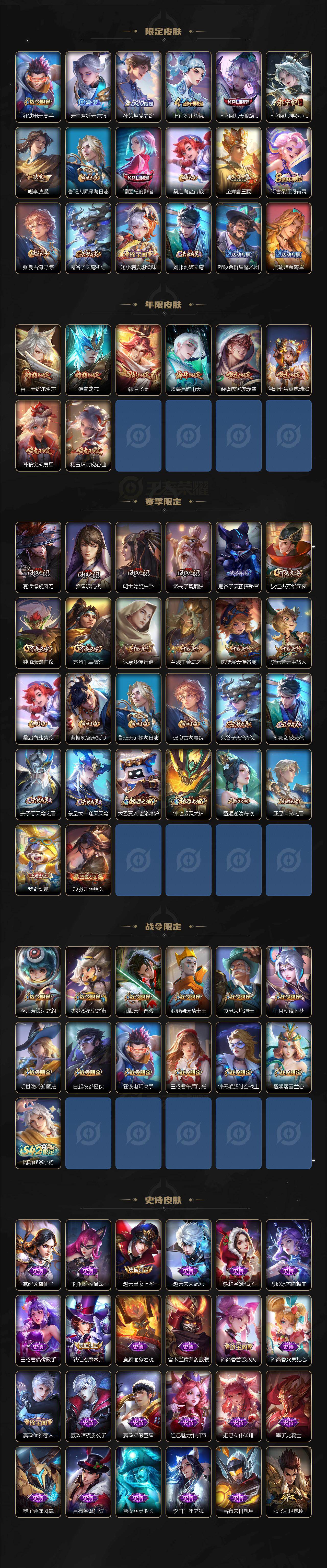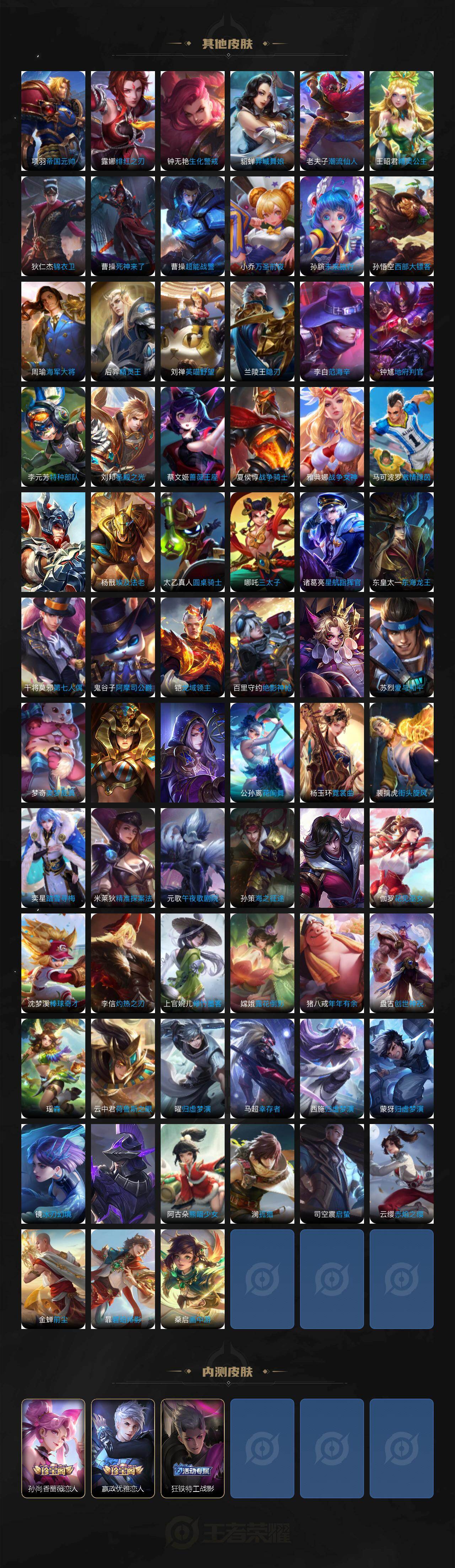 【传说皮肤】:桑启鸣野蒿,澜电玩雷克斯,孙悟空齐天大圣,李白诗剑行,不知火舞绯月行,百里守约碎云,橘右京枫霜尽,马可波罗深海之息,马超无双飞将