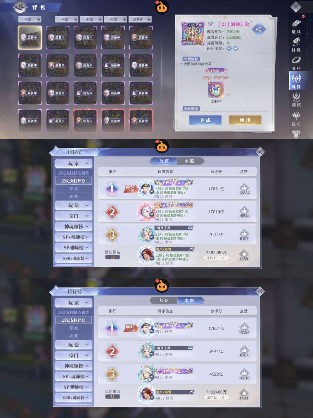 1050亿战力。彩1十方蓉蓉29sp。全图差卫庄。业火神诏双神。黑丝大雪皮。红皮王林。2专双神