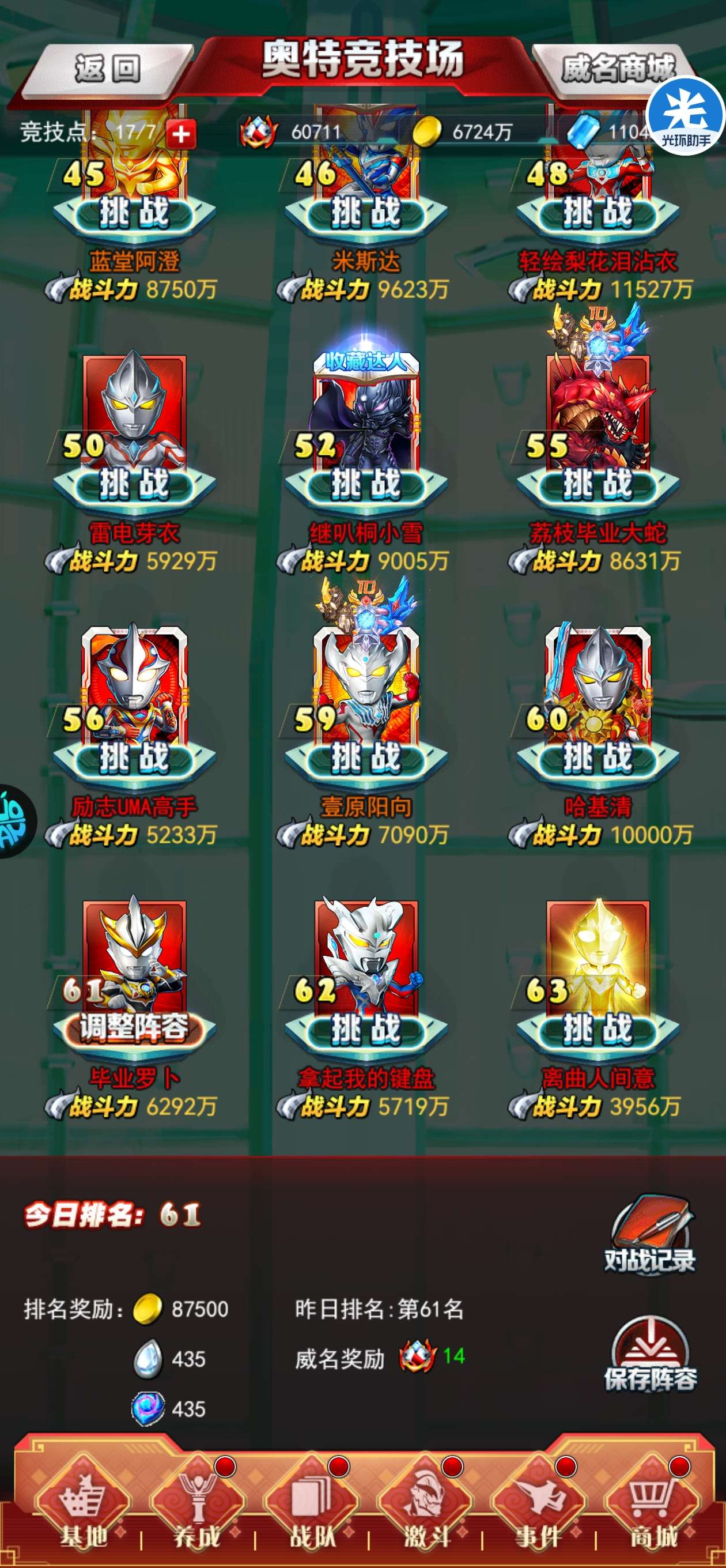 竞技场排名:
