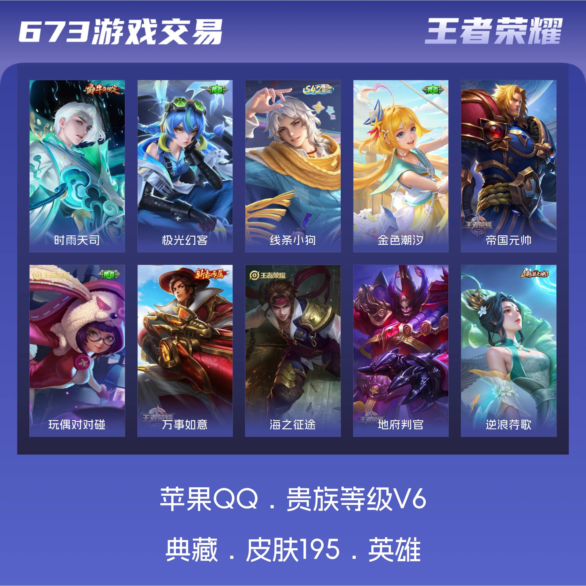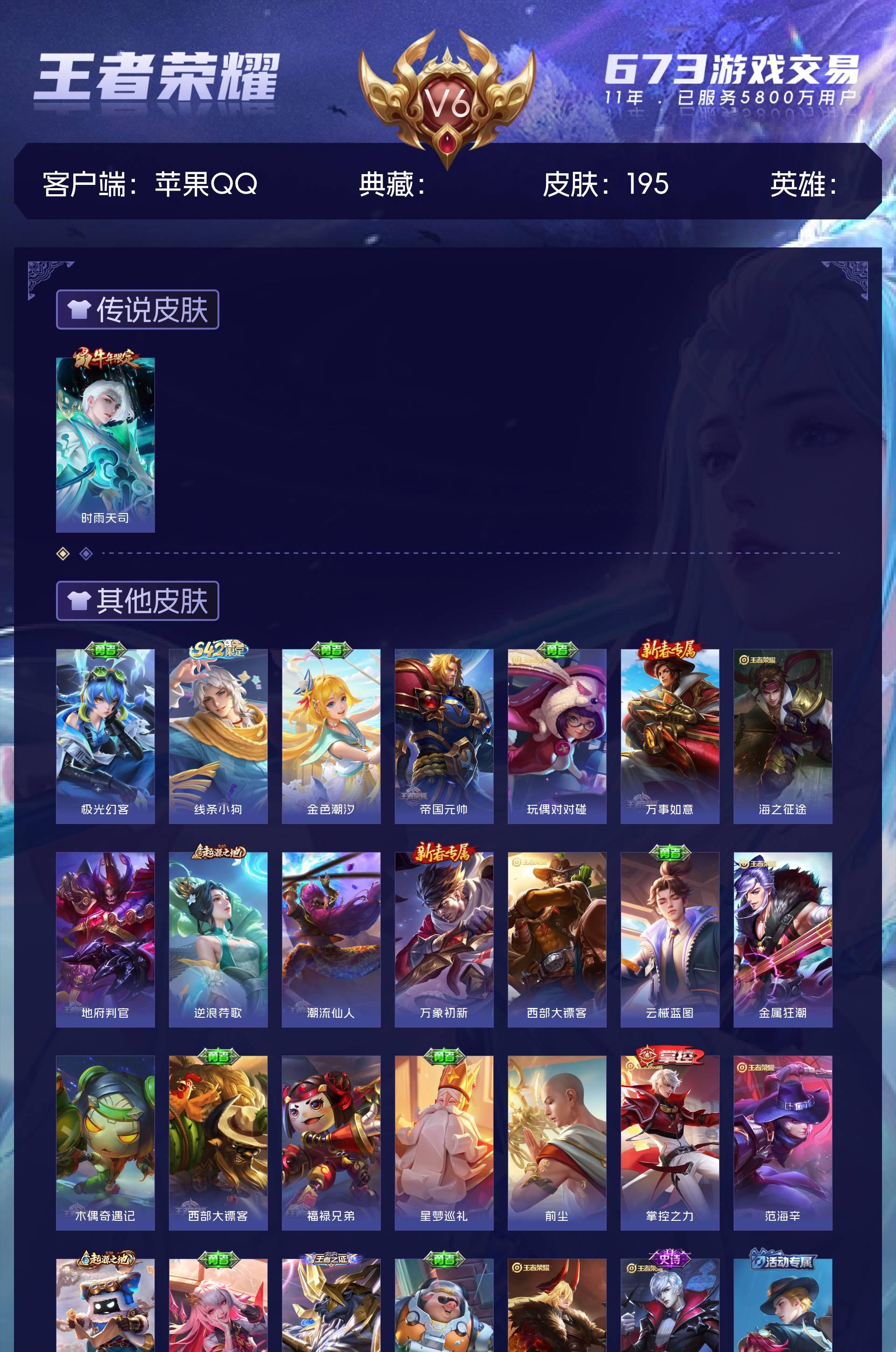 V6 皮肤195 至尊星耀 传说1 其他皮肤200