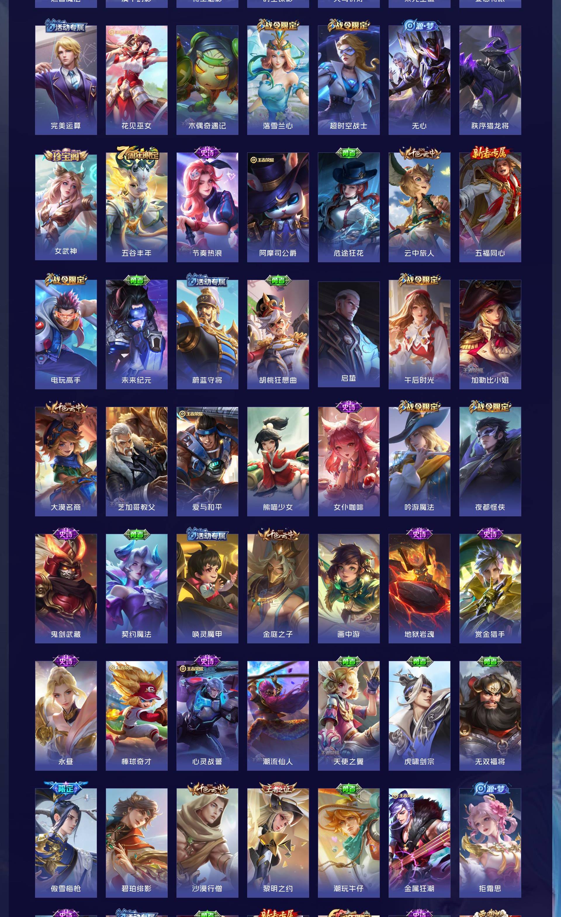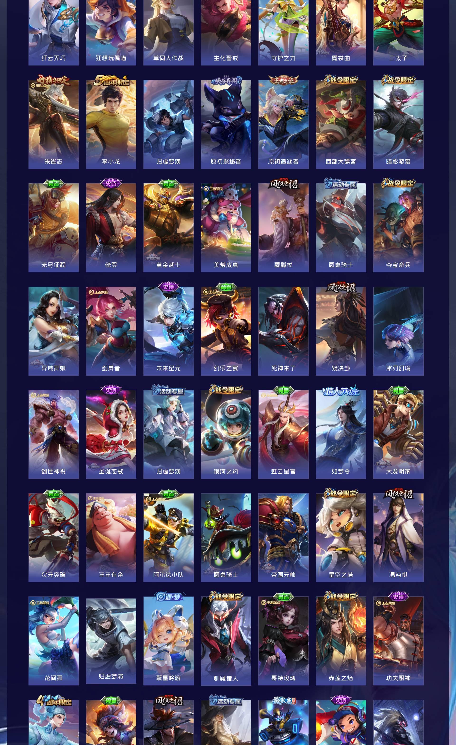 V6 皮肤362 英雄127 最强王者 荣耀典藏2 星传说2 传说18 其他皮肤348
