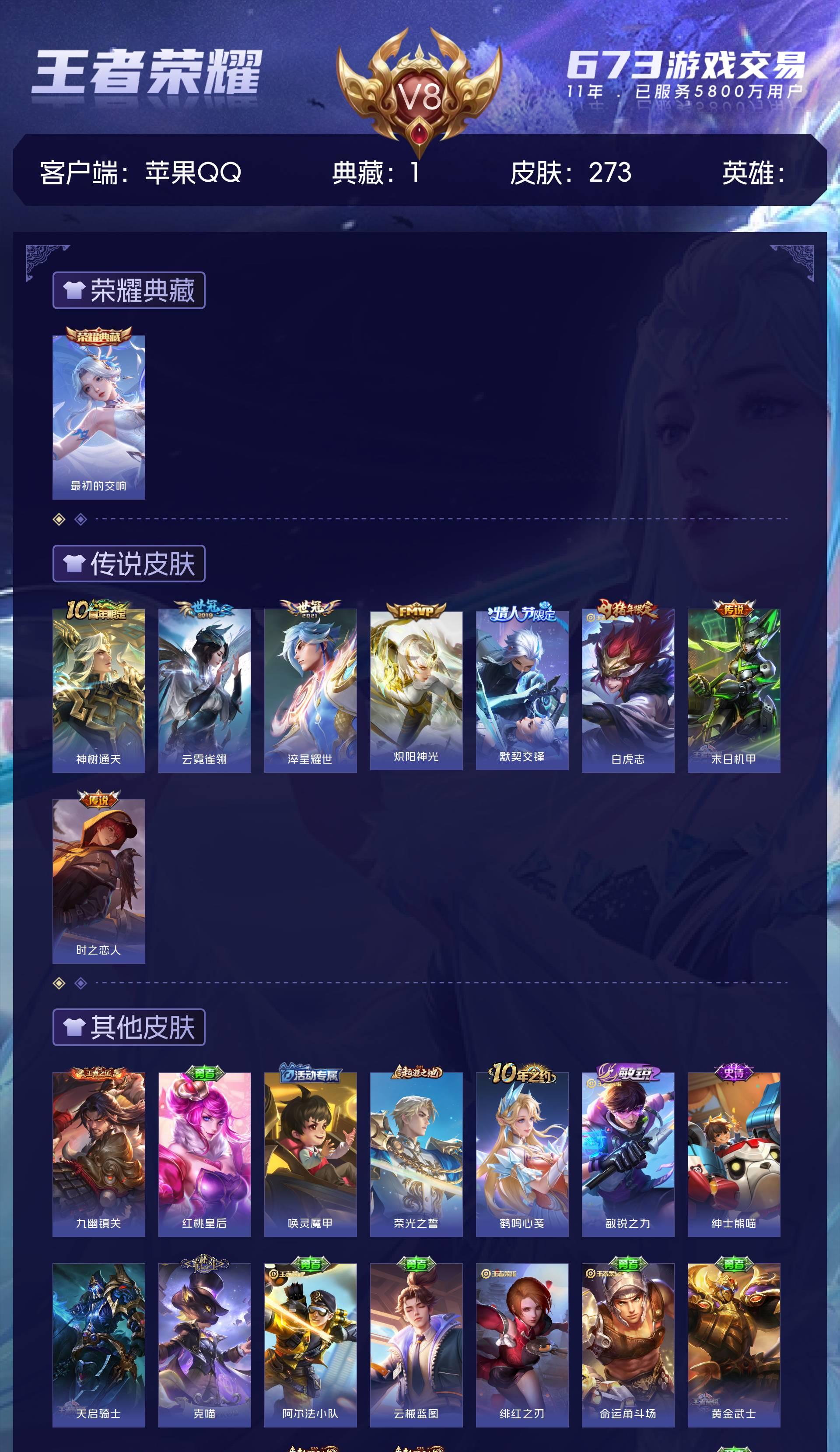 V8 皮肤273 绝世王者 荣耀典藏1 传说8 其他皮肤270