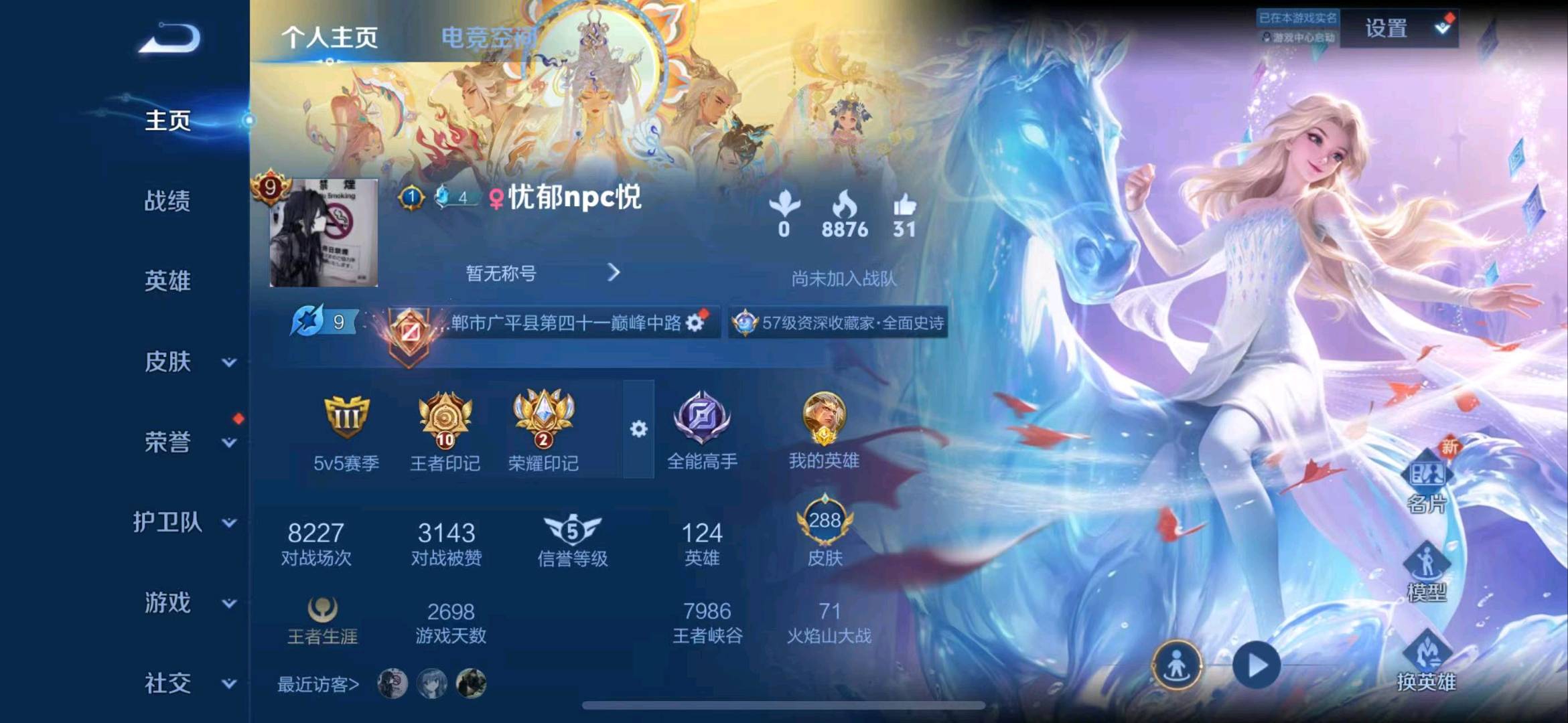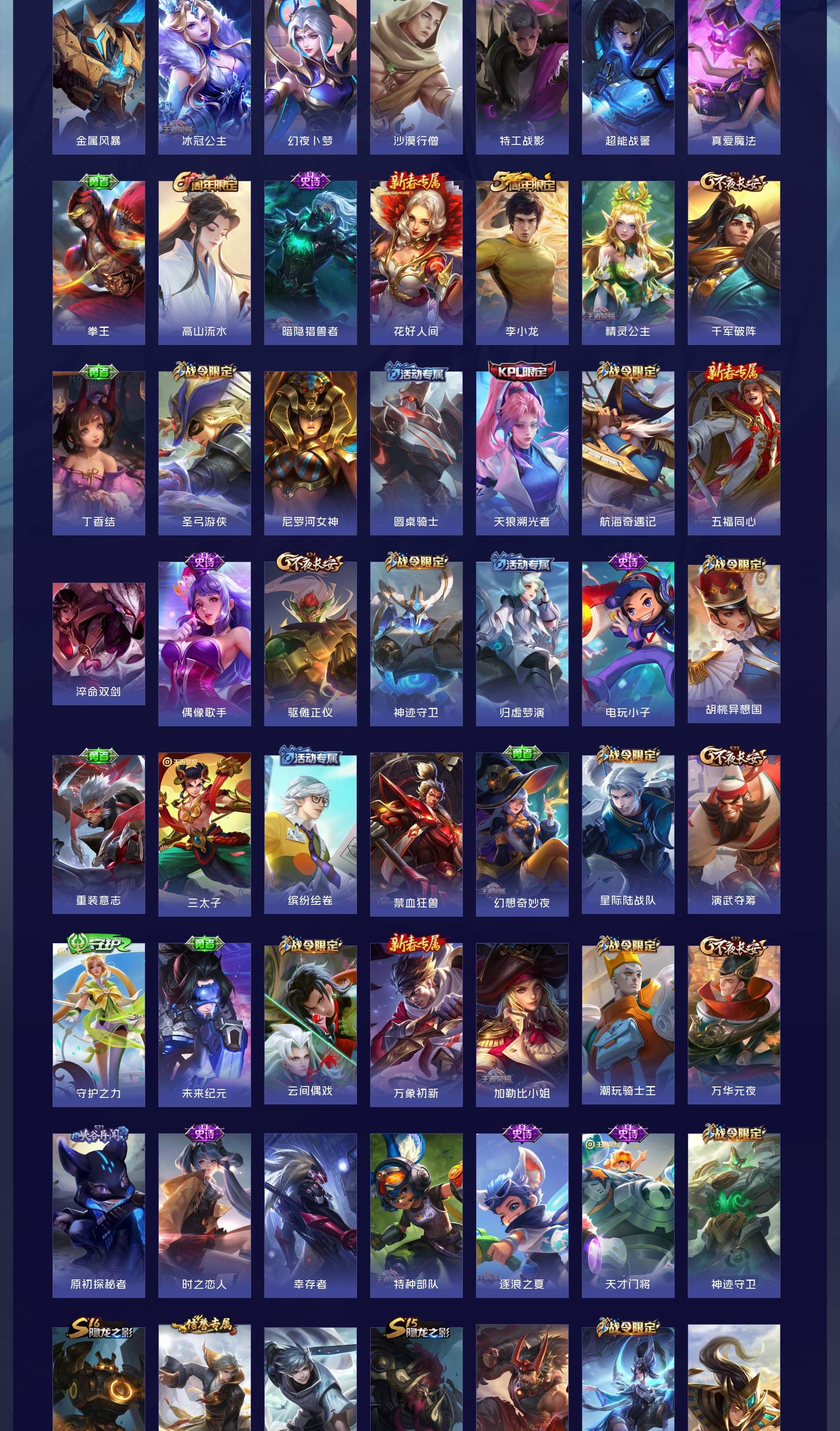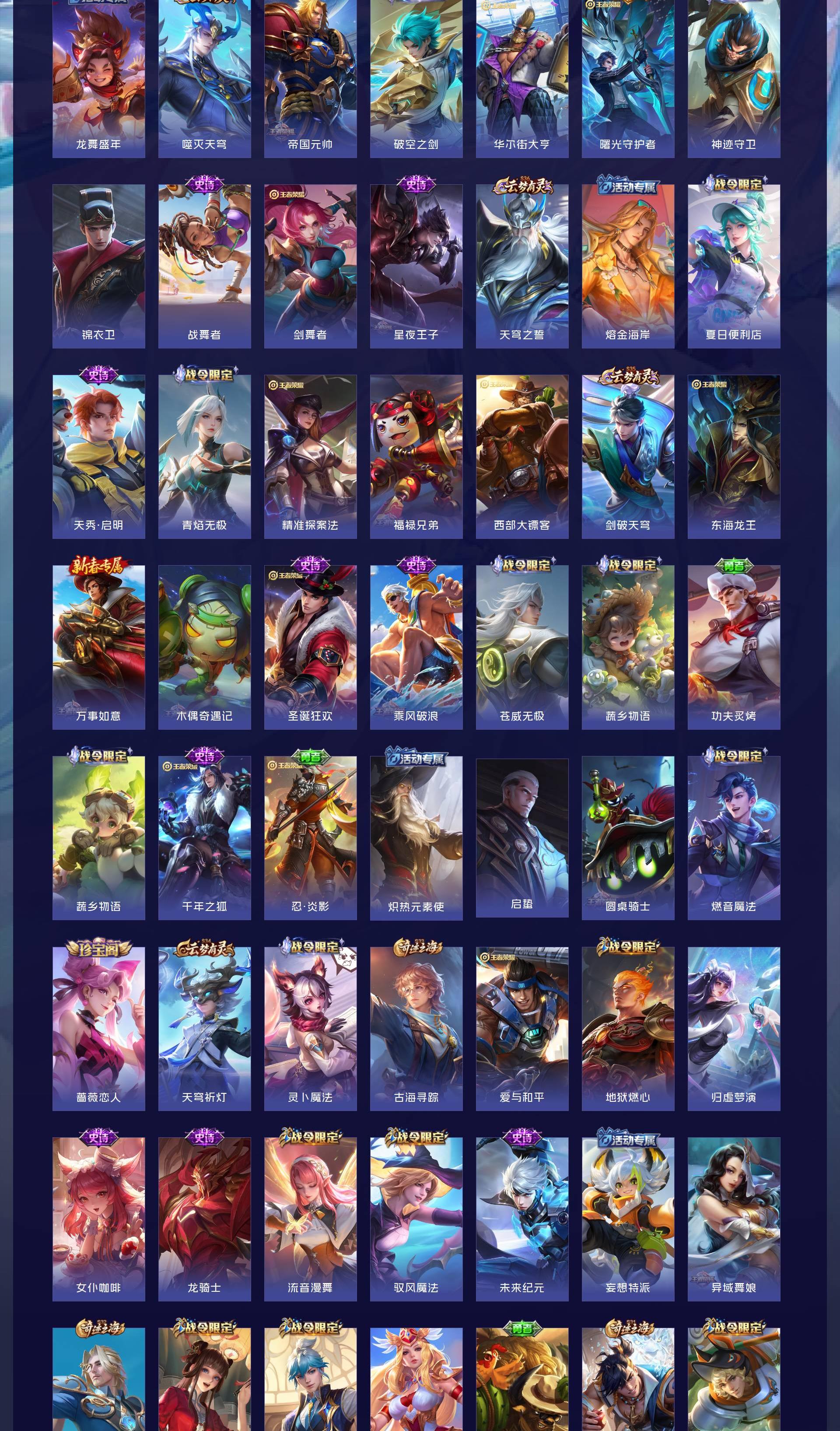 V9 皮肤314 英雄128 荣耀王者 荣耀典藏3 无双皮肤4 珍品传说3 星传说1 传说20 其他皮肤290