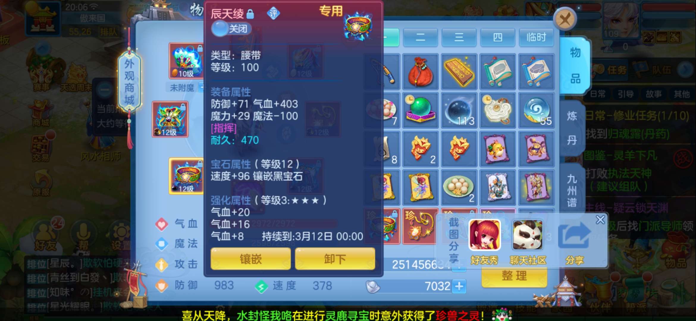 全身12段 神兽蛇 宝宝 装备都有 可刷一切 魔耀华 法器暴击加触发连能打一万二血 109修炼存太多