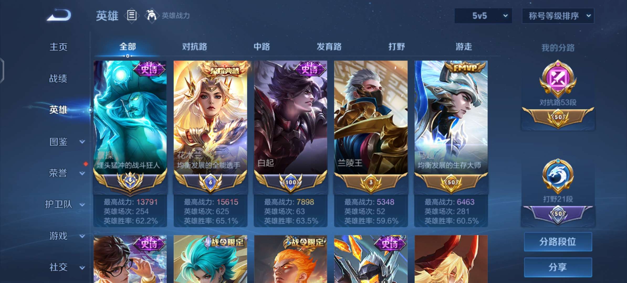1.6万国六木兰1.4万大国曹操小国标白起高评分高胜率历史最高2300+,本赛季战令已充好