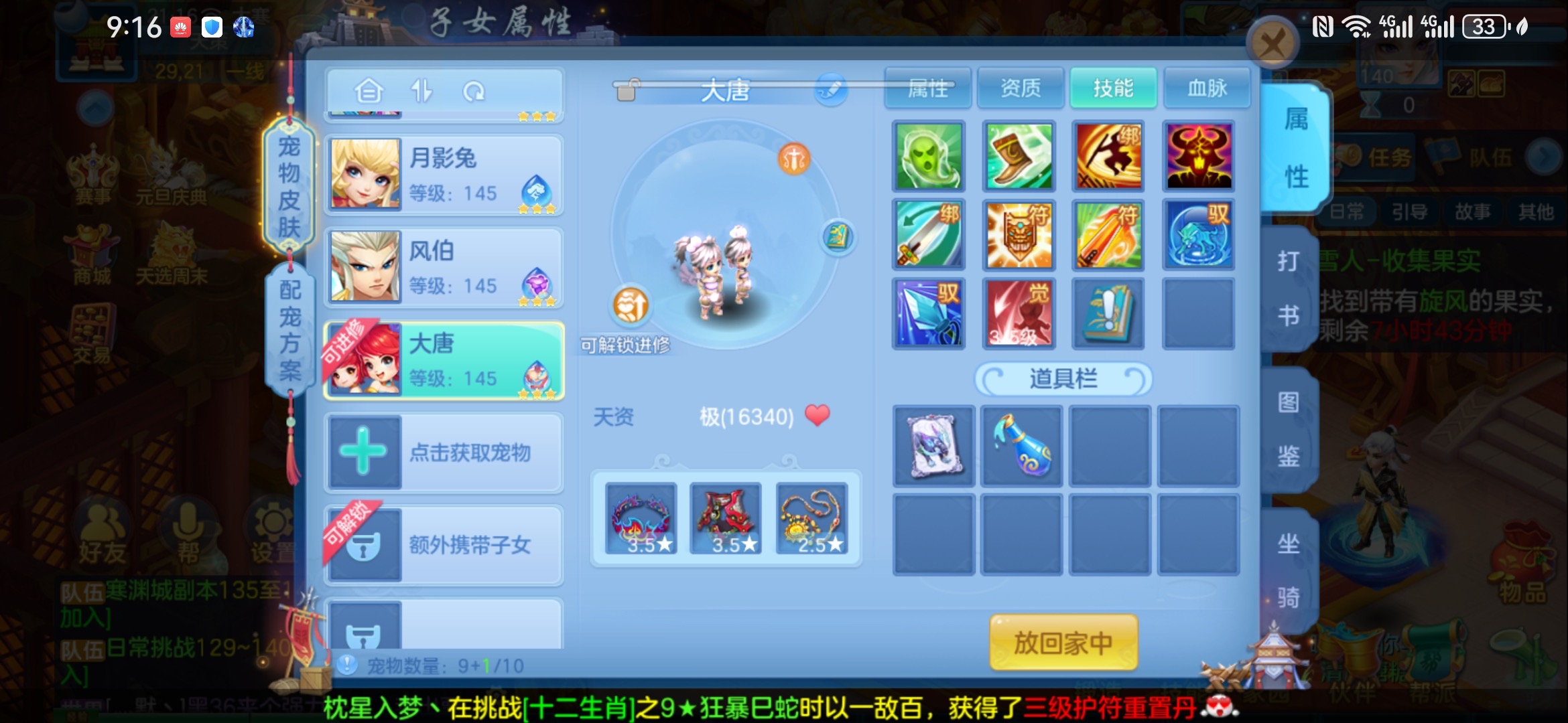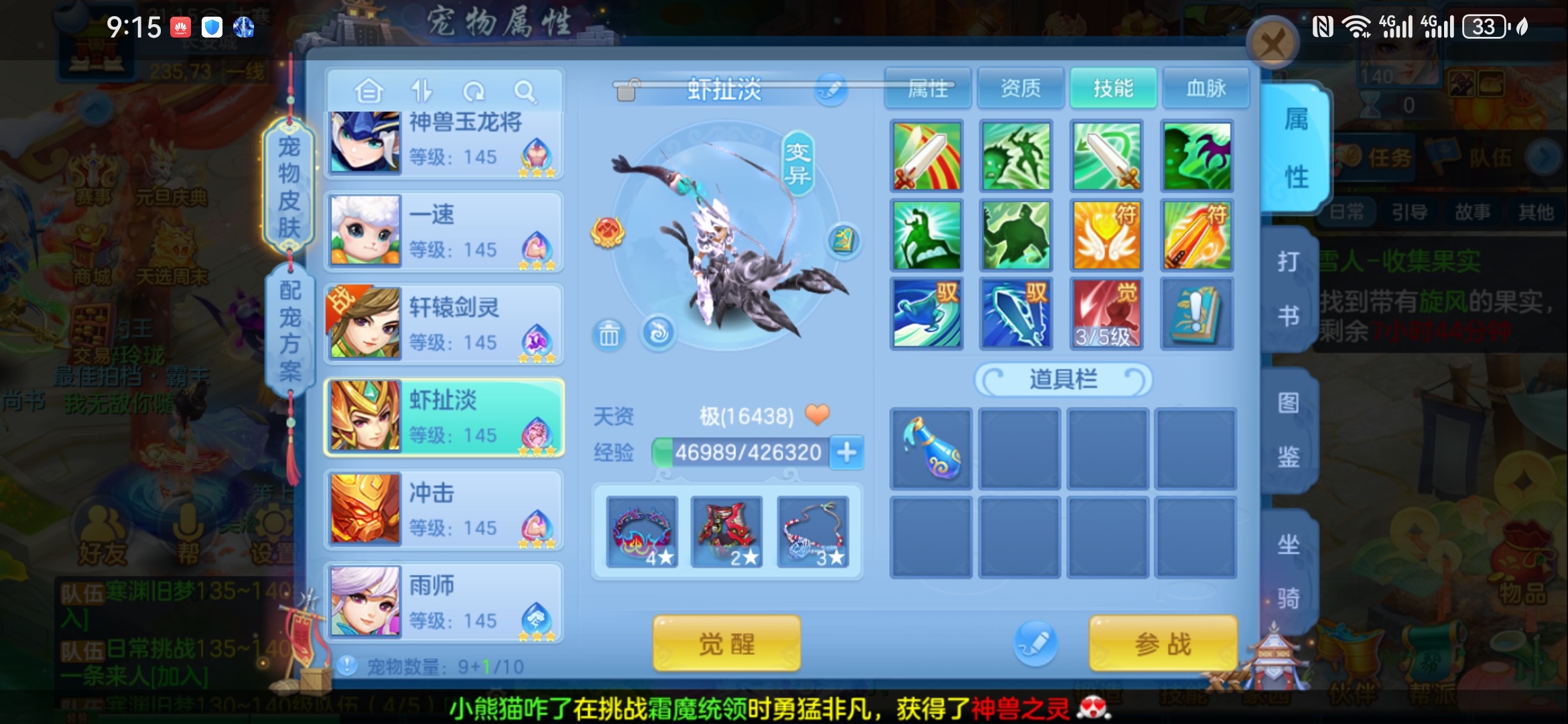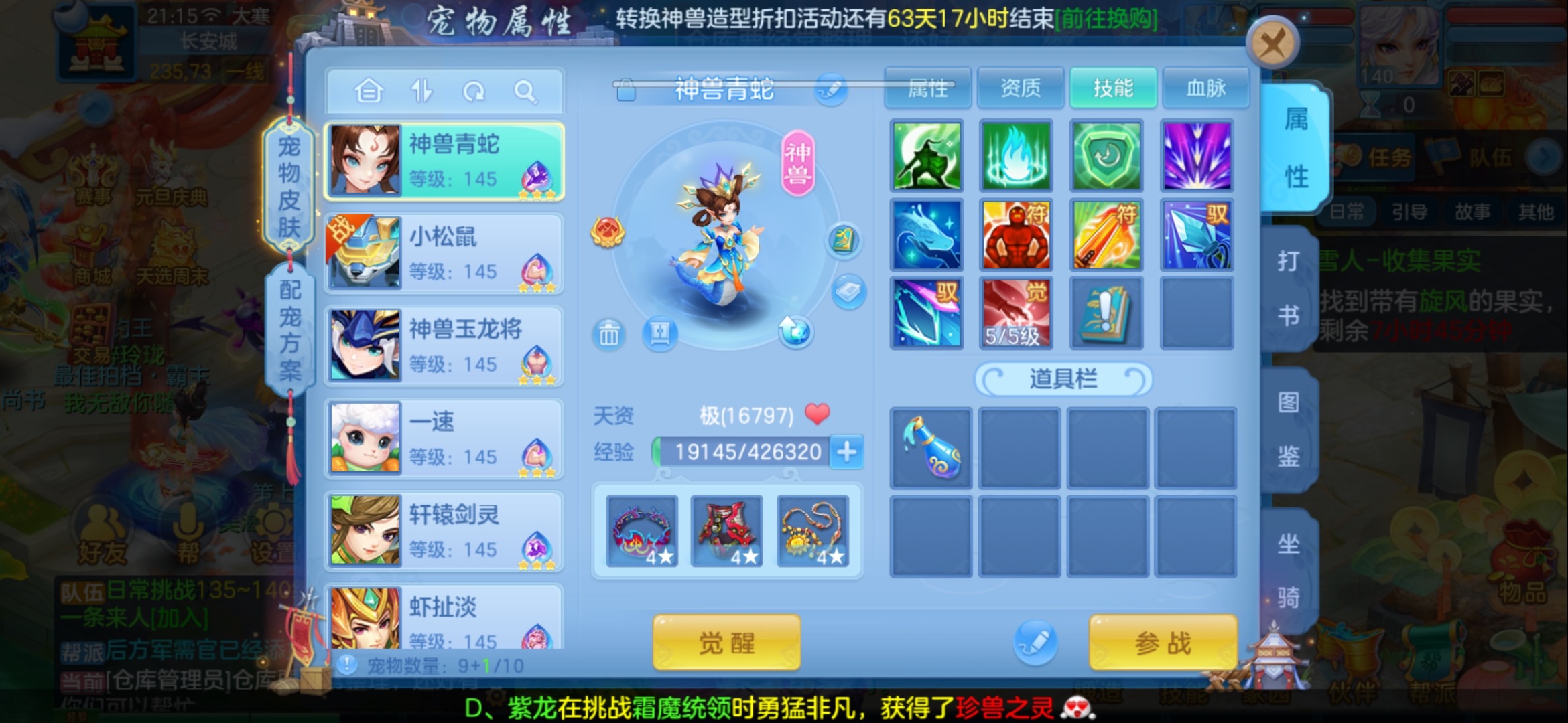 青蛇玉龙将双神兽,一堆成品宠物,特级齐全,所有任务通刷