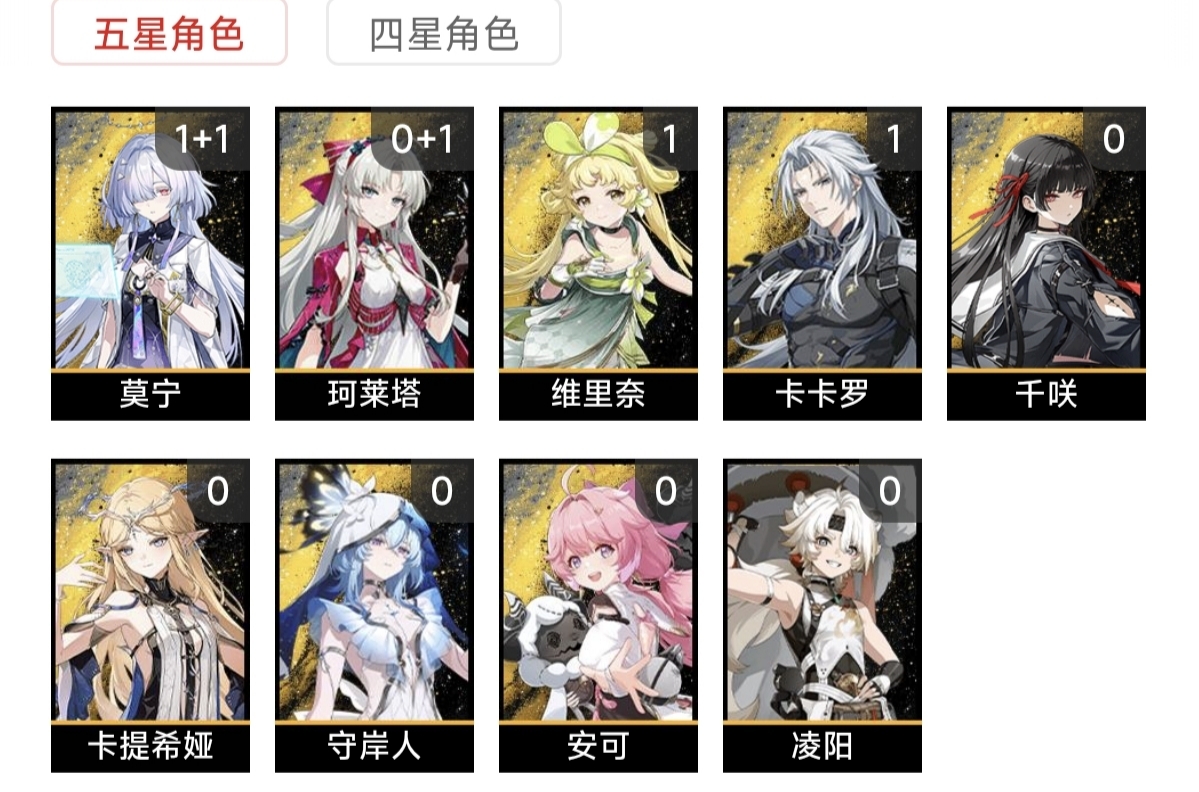 1+1莫宁,0+1珂莱塔,0命守岸人,0命千咲