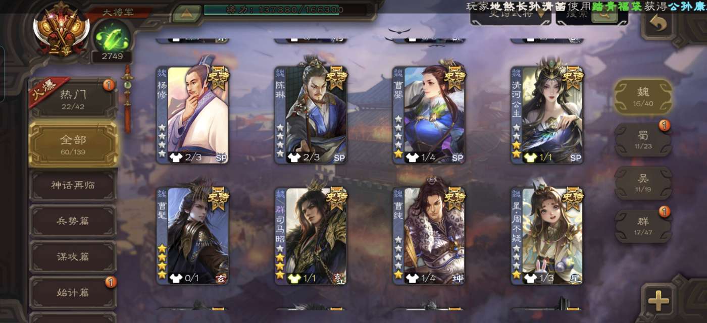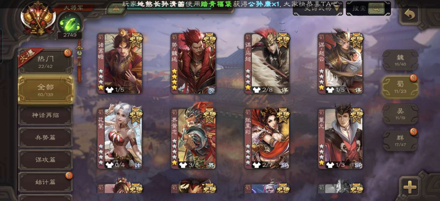 神荀彧刘焉一体号火龙果新能源草帽小鸟全有其他权三一堆自己看,还有一万八心愿积分攒一攒就是一个神郭