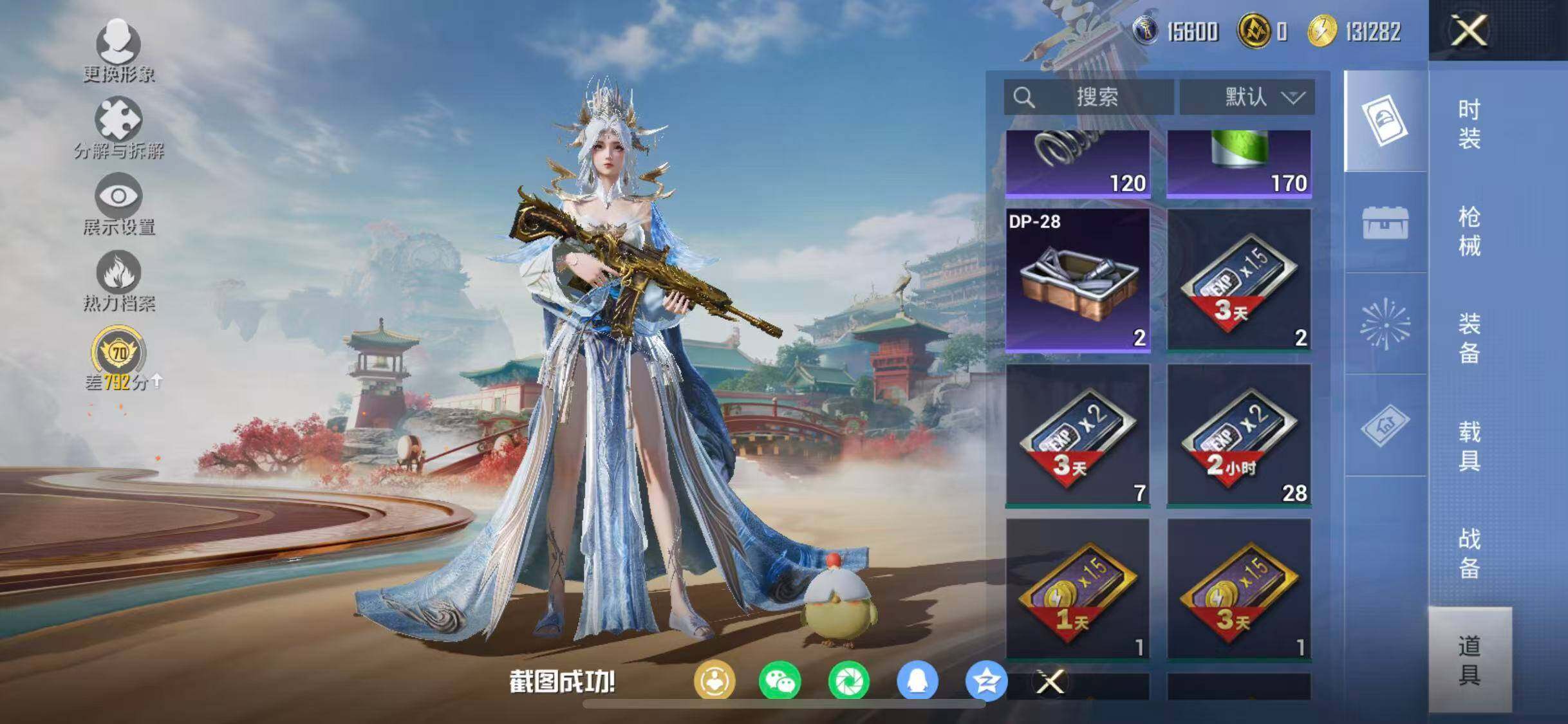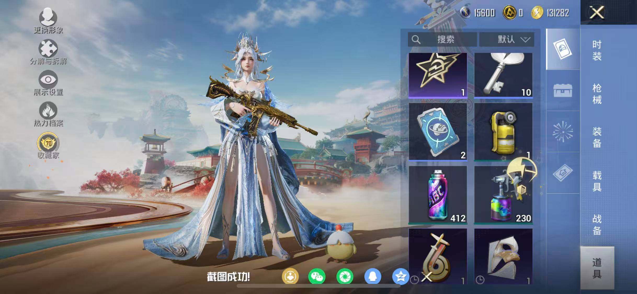 苹果 手Q-6粉装-7特效枪-0载具-3粉色飞行器-74400热力值-14王牌