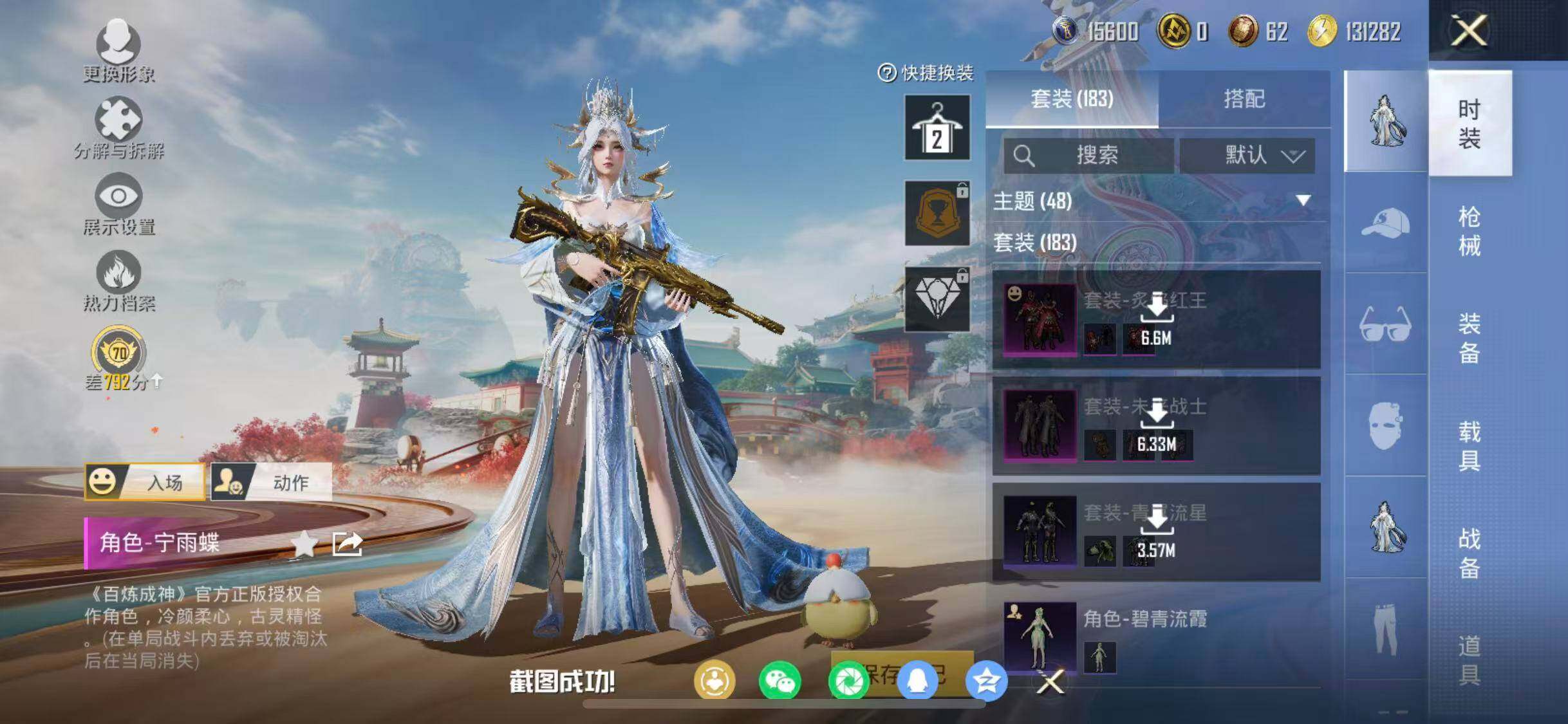 【粉色套装】:粉装-未来战士,粉装-炙焰红王,粉装-星之彼岸,粉装-未来歌姬,粉装-星穹咏叹调,角色-宁雨蝶