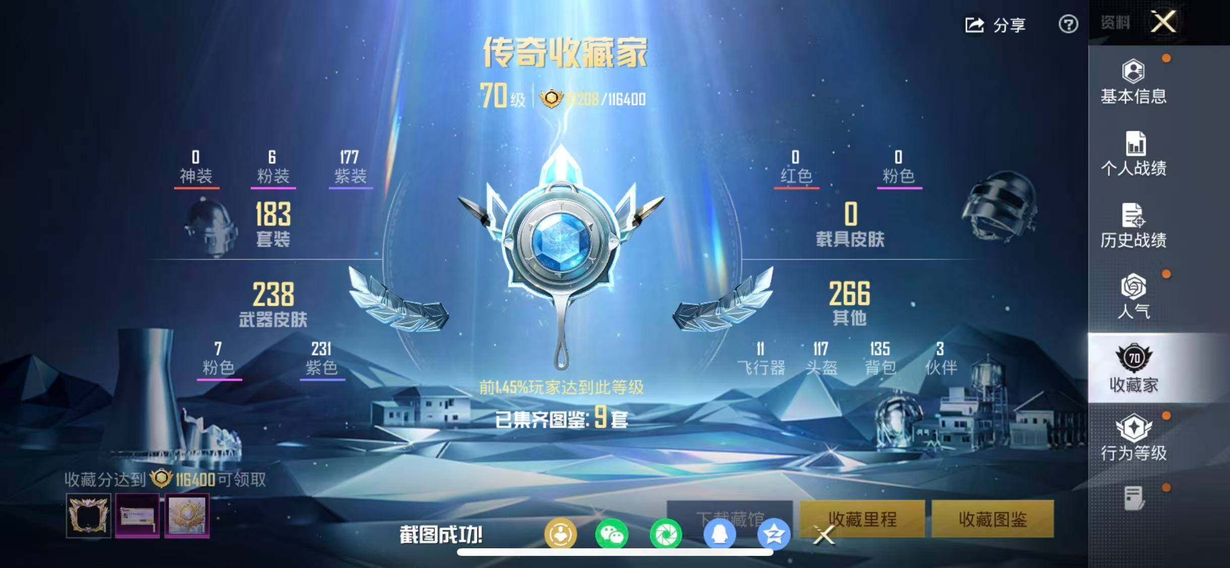 苹果 手Q-6粉装-7特效枪-0载具-3粉色飞行器-74400热力值-14王牌印记-183套装-252枪皮