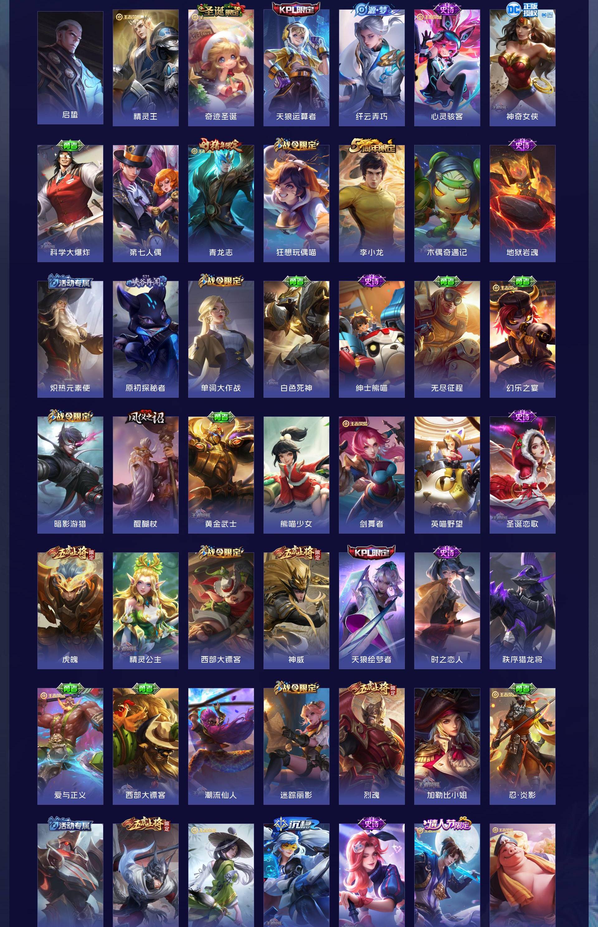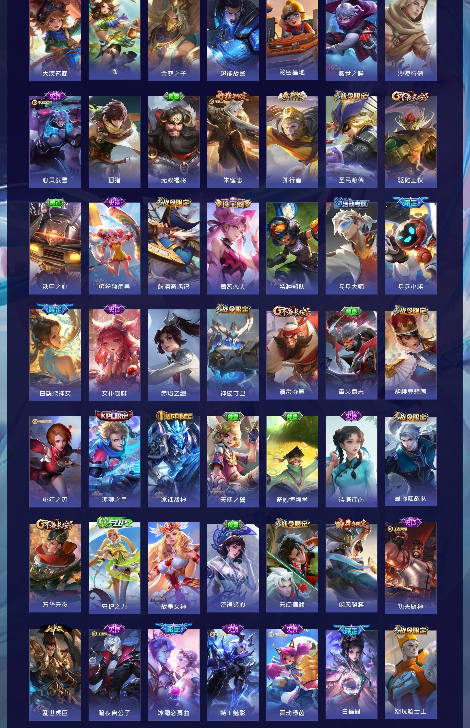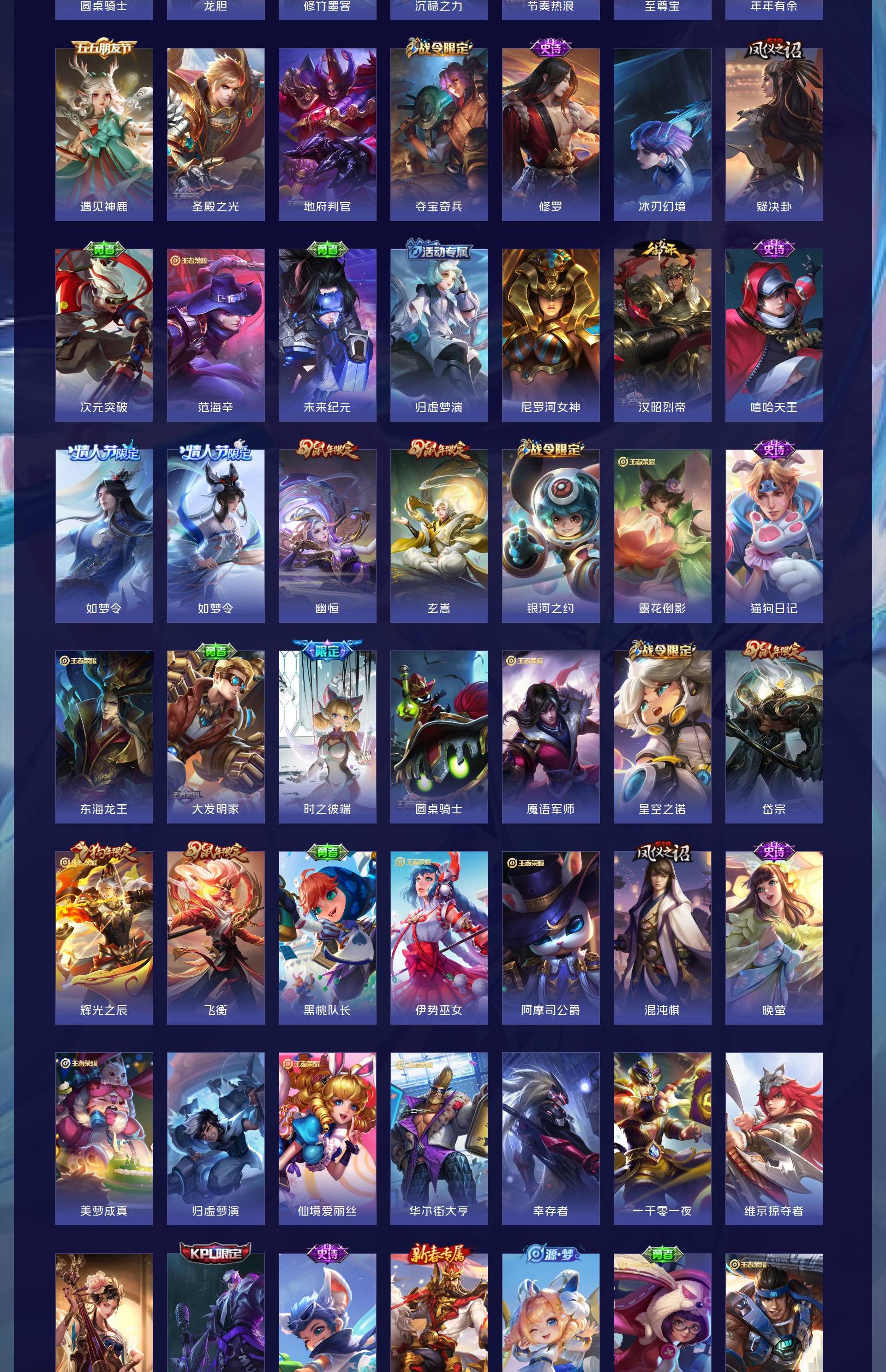 无双贵族 皮肤479 英雄129 最强王者 荣耀典藏8 珍品传说3 星传说1 传说60 其他皮肤415
