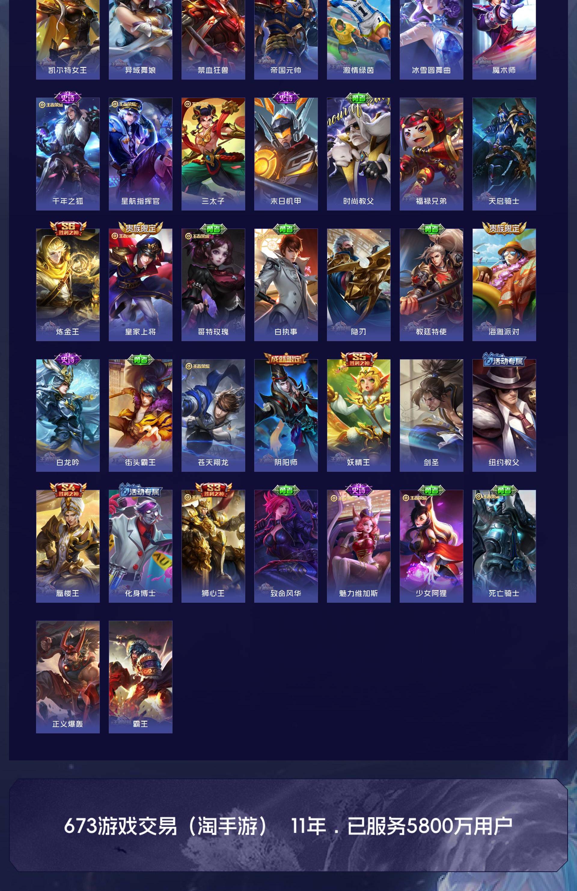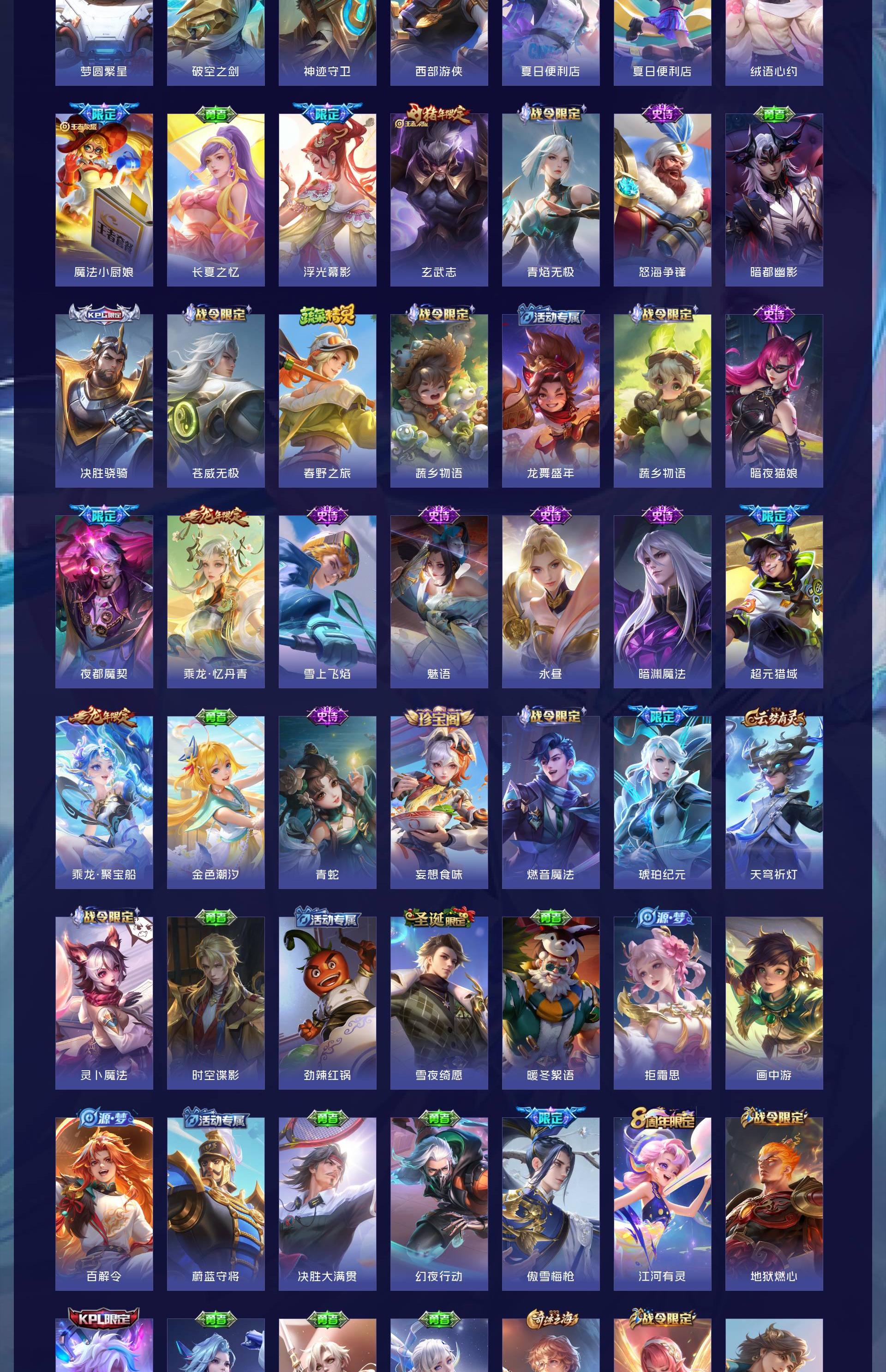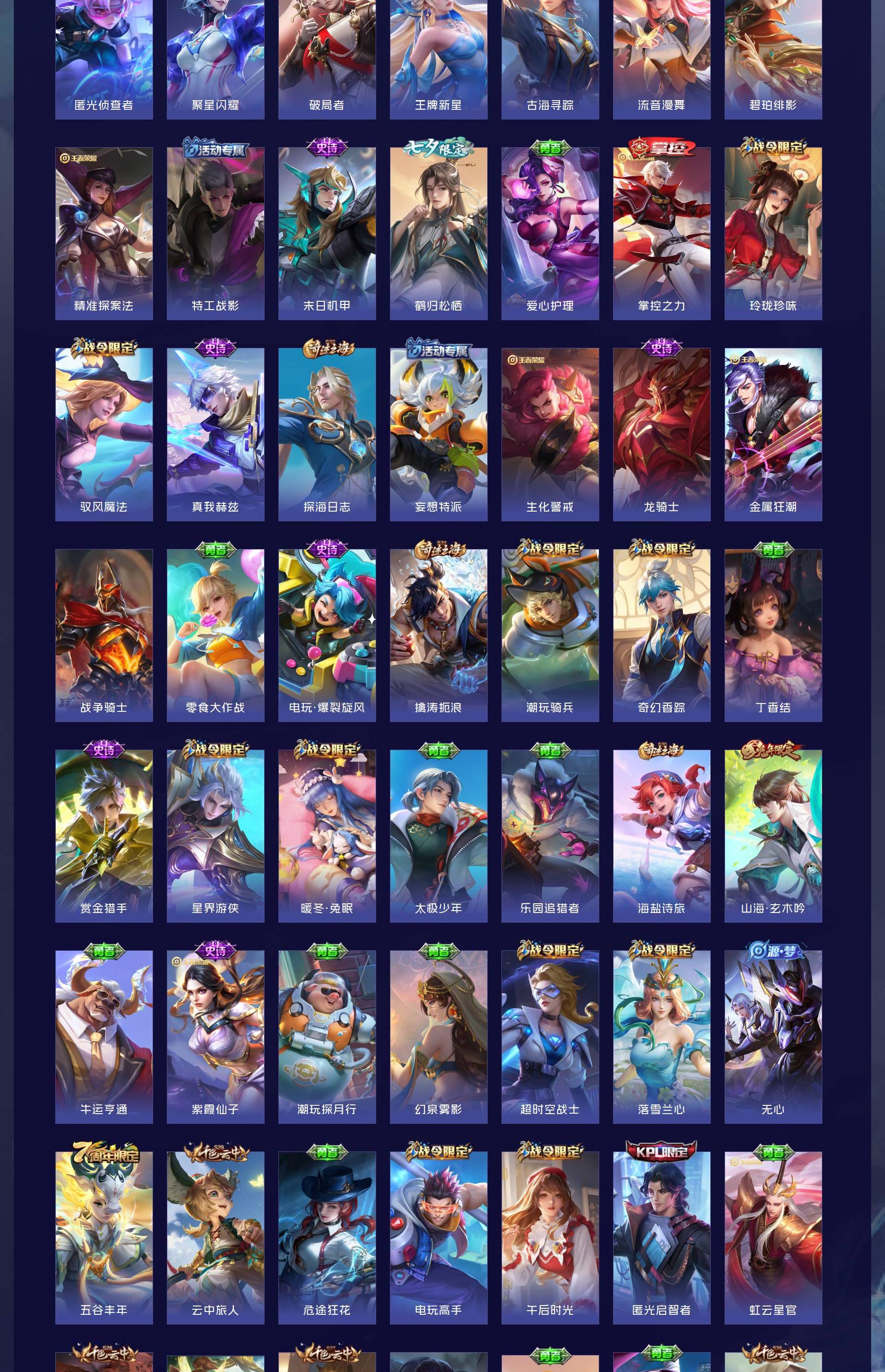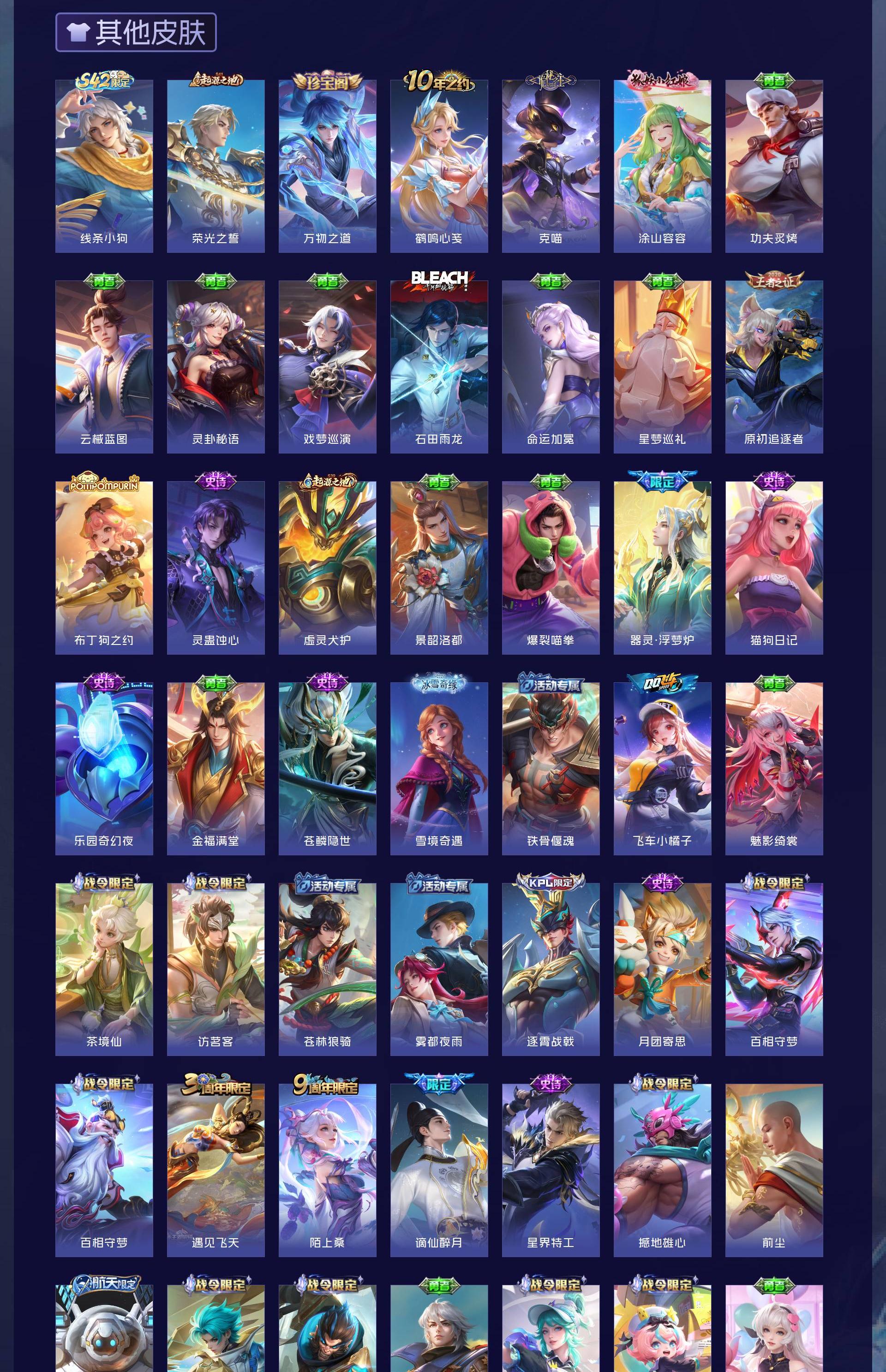 无双贵族 皮肤479 英雄129 最强王者 荣耀典藏8 珍品传说3 星传说1 传说60 其他皮肤415