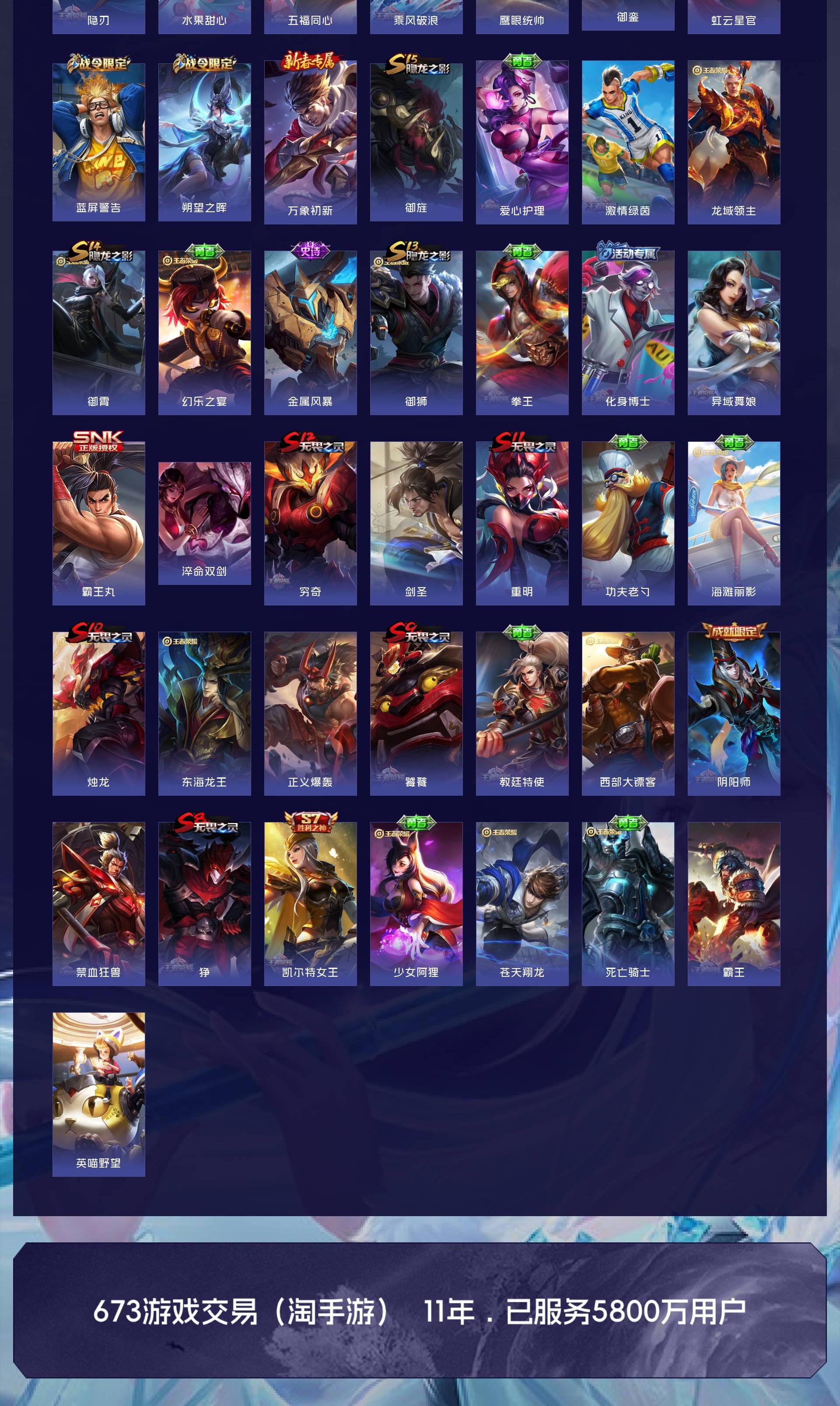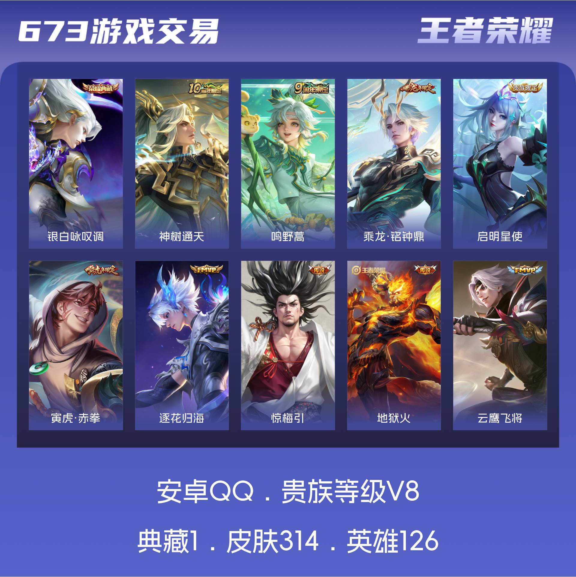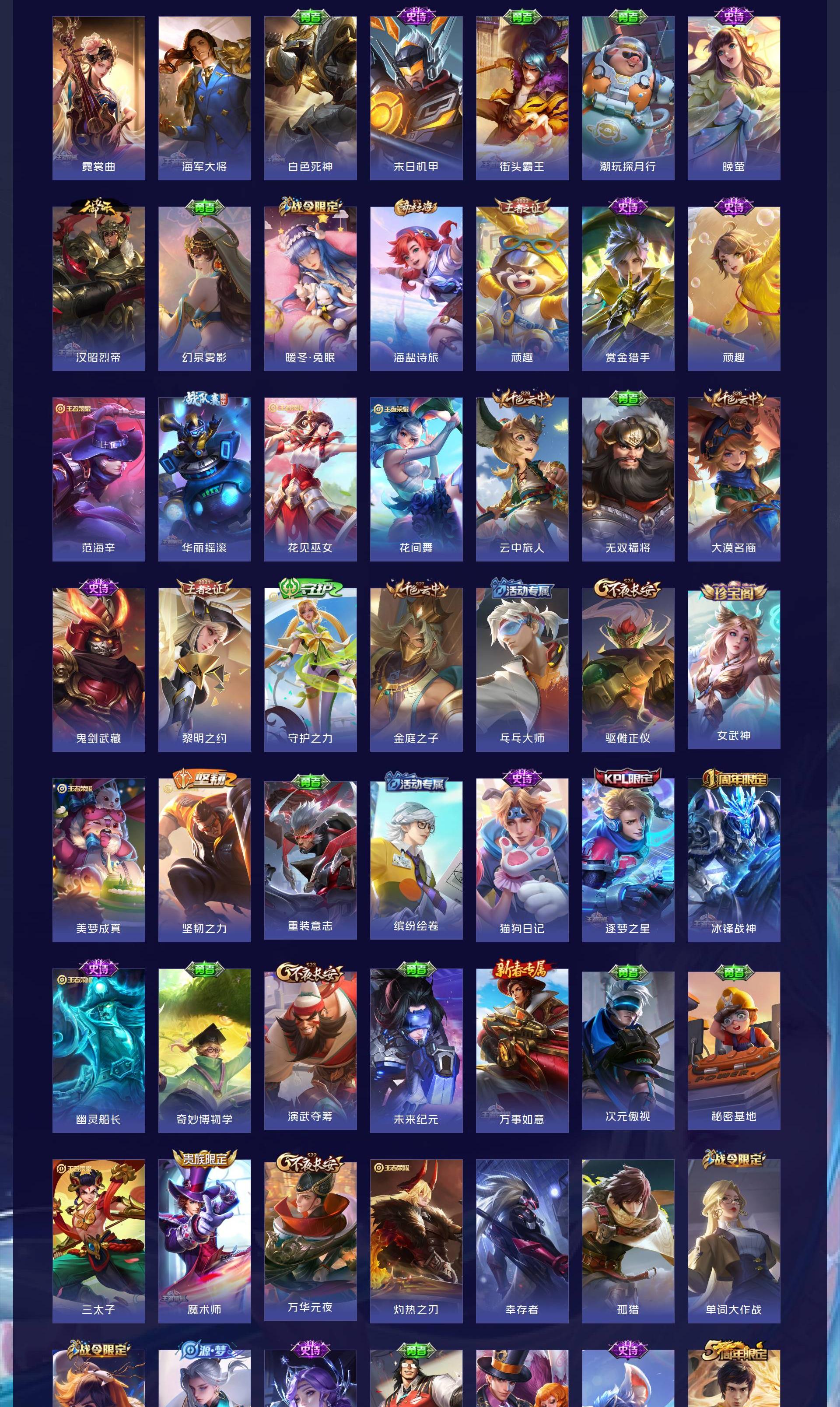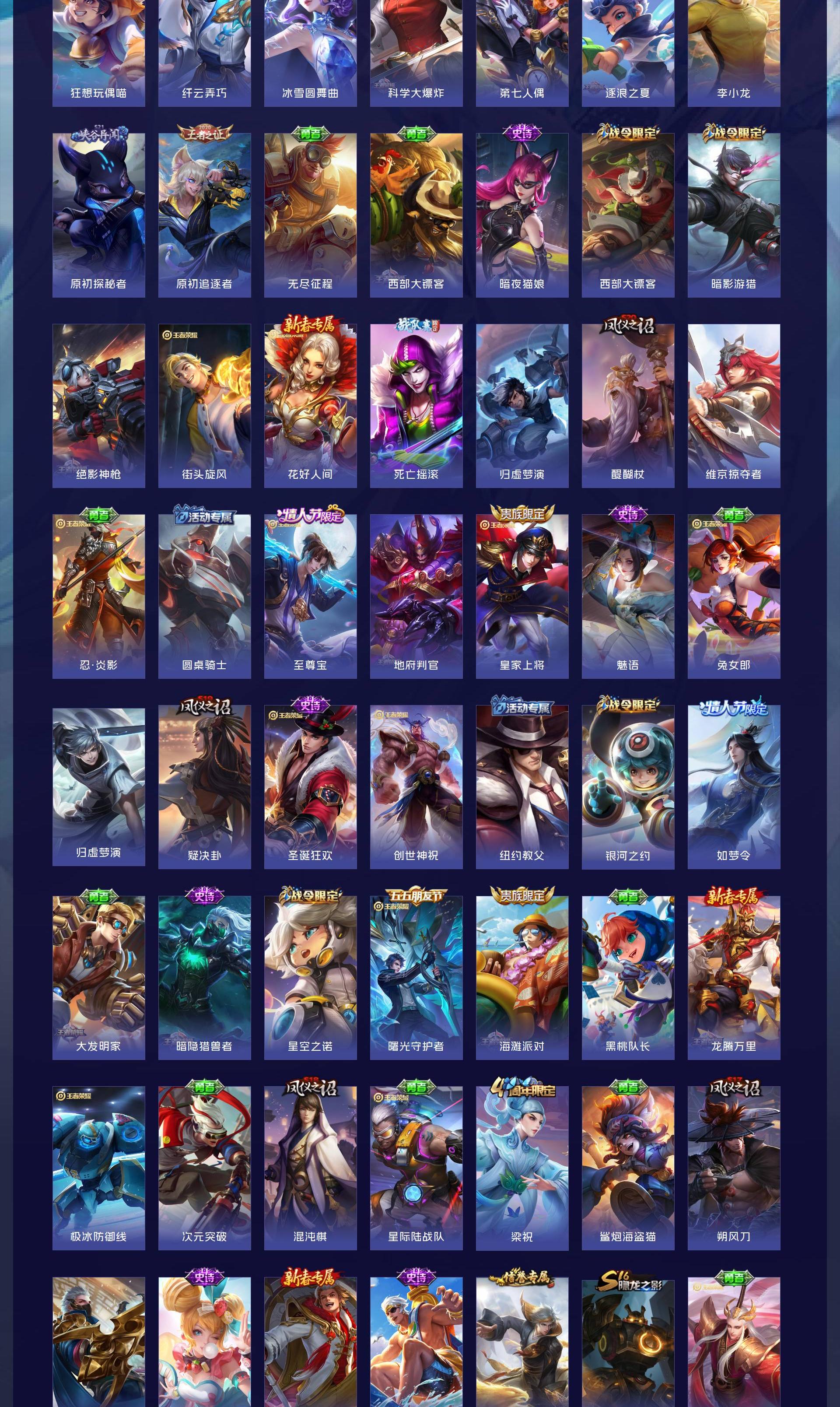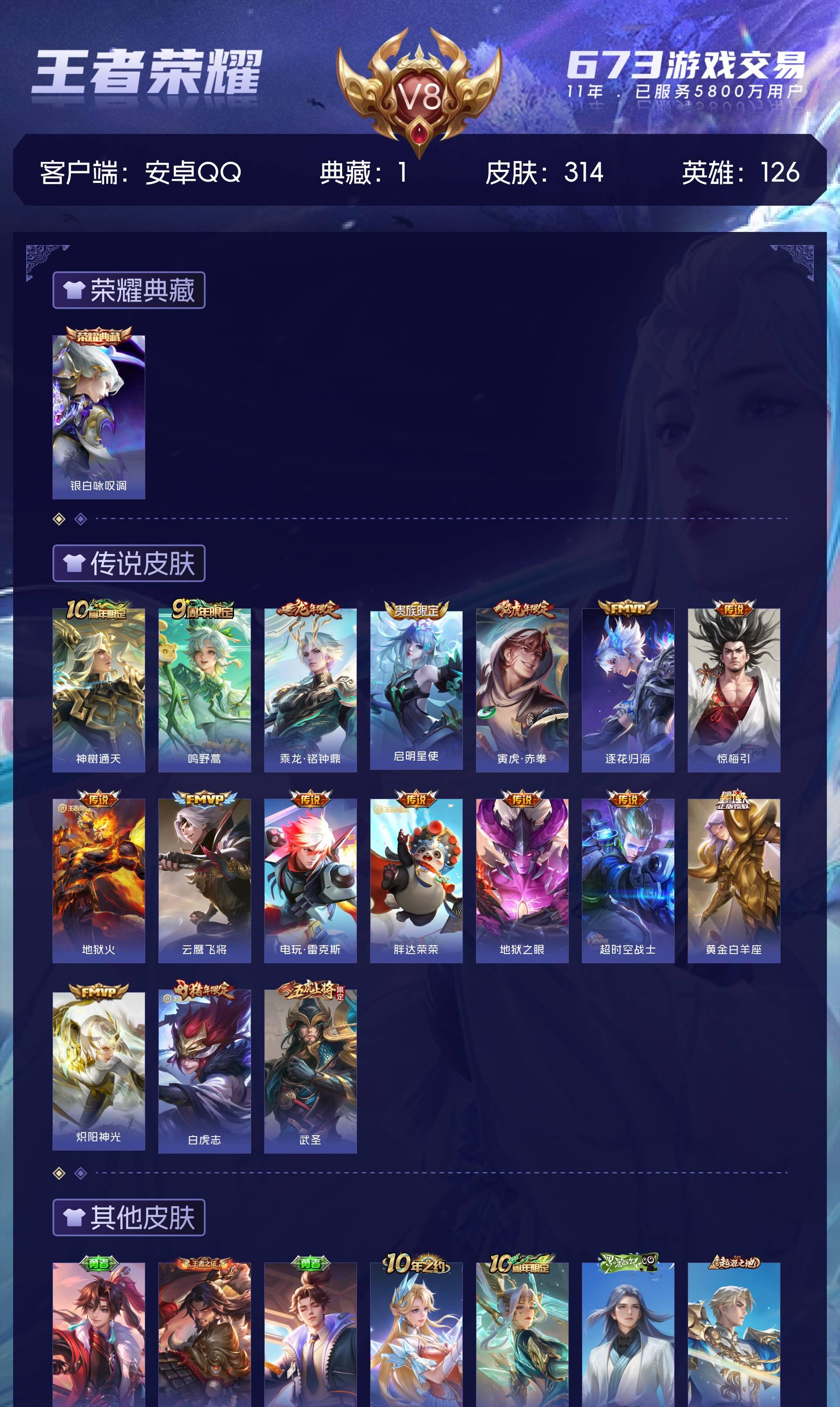 V8 皮肤314 英雄126 永恒钻石 荣耀典藏1 星传说2 传说17 其他皮肤302