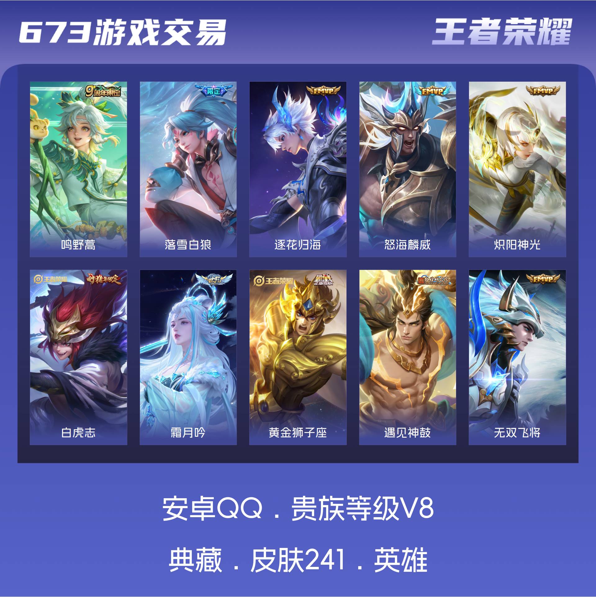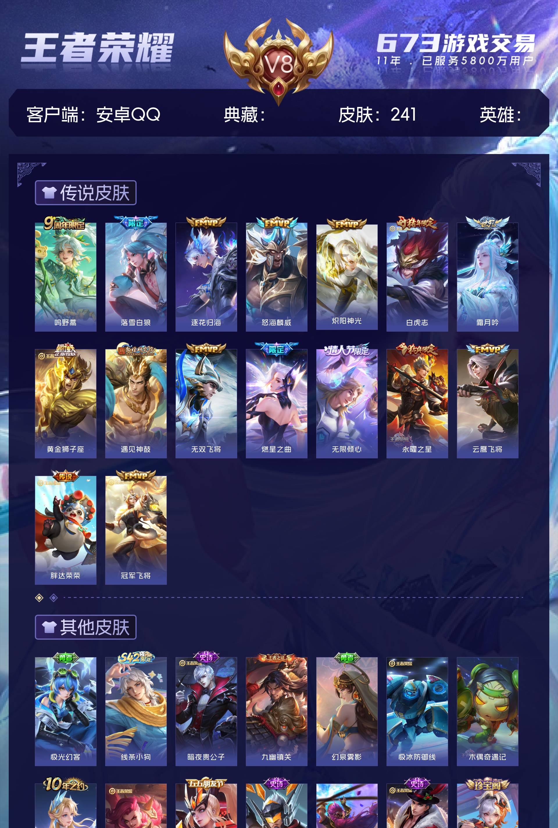 V8 皮肤241 至尊星耀 传说16 其他皮肤231