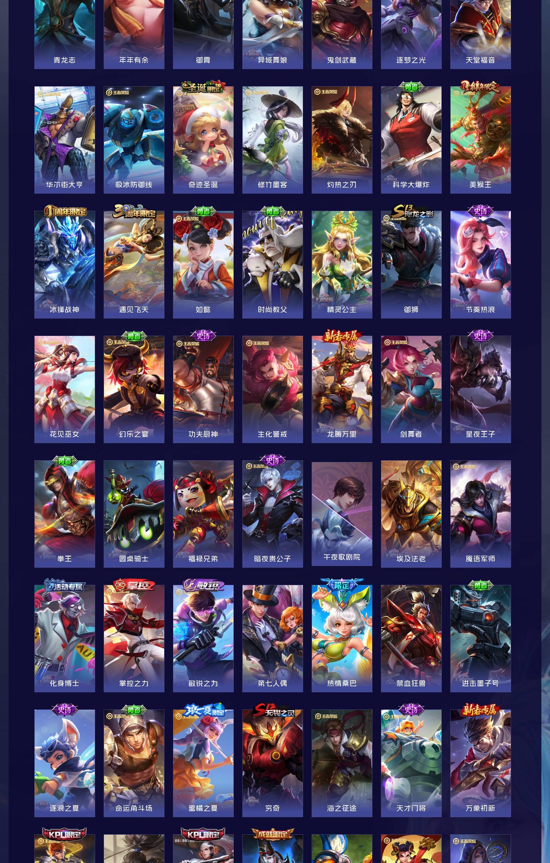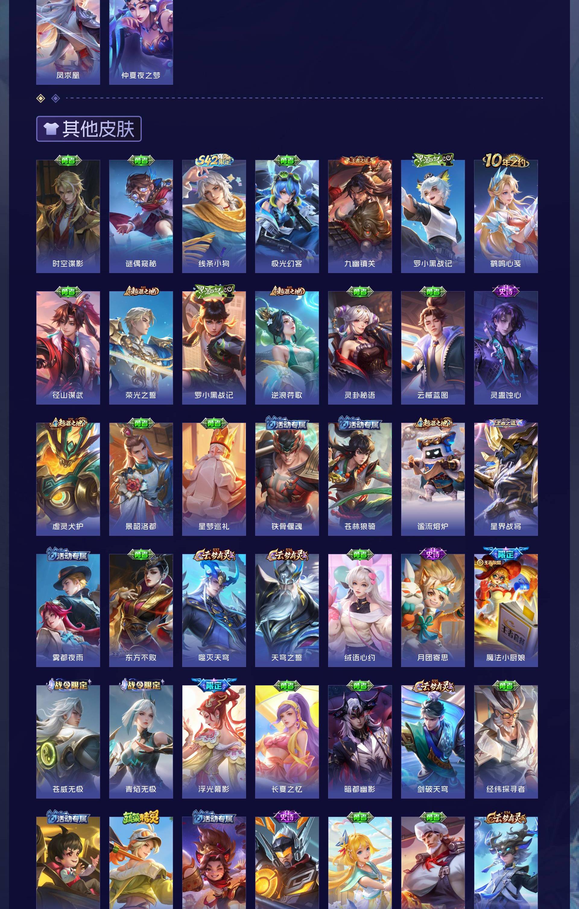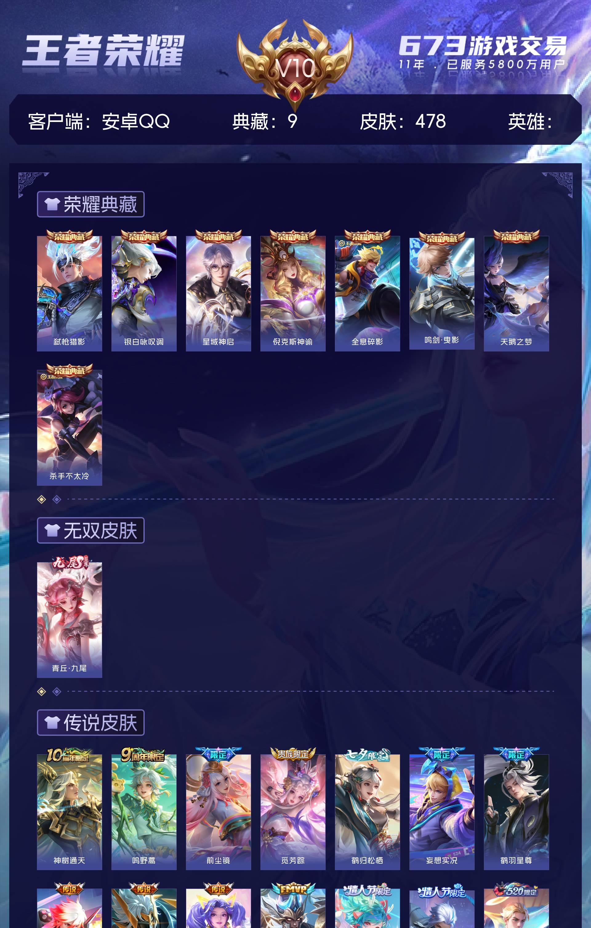 V10 皮肤478 至尊星耀 荣耀典藏9 无双皮肤1 星传说3 传说59 其他皮肤415