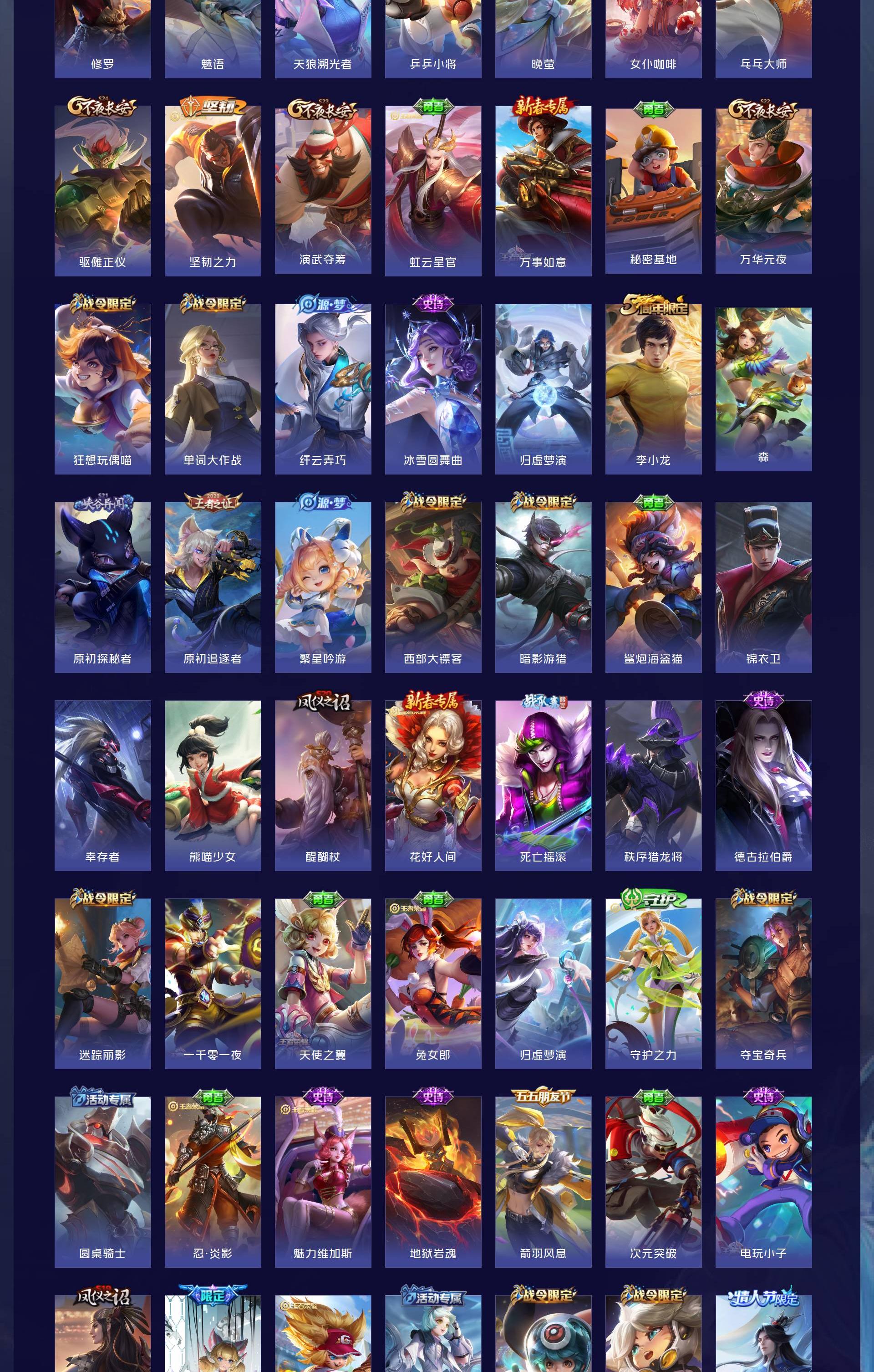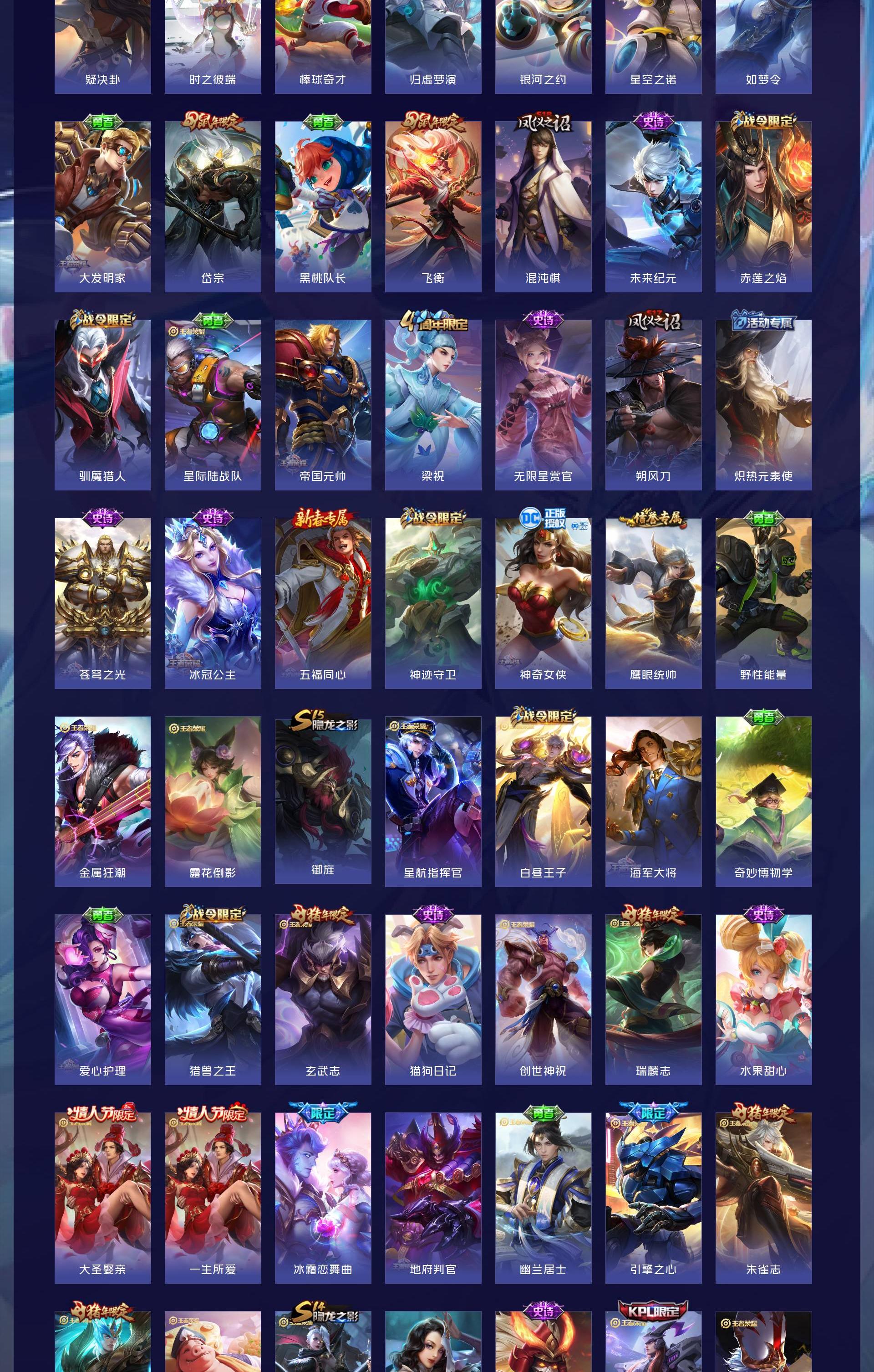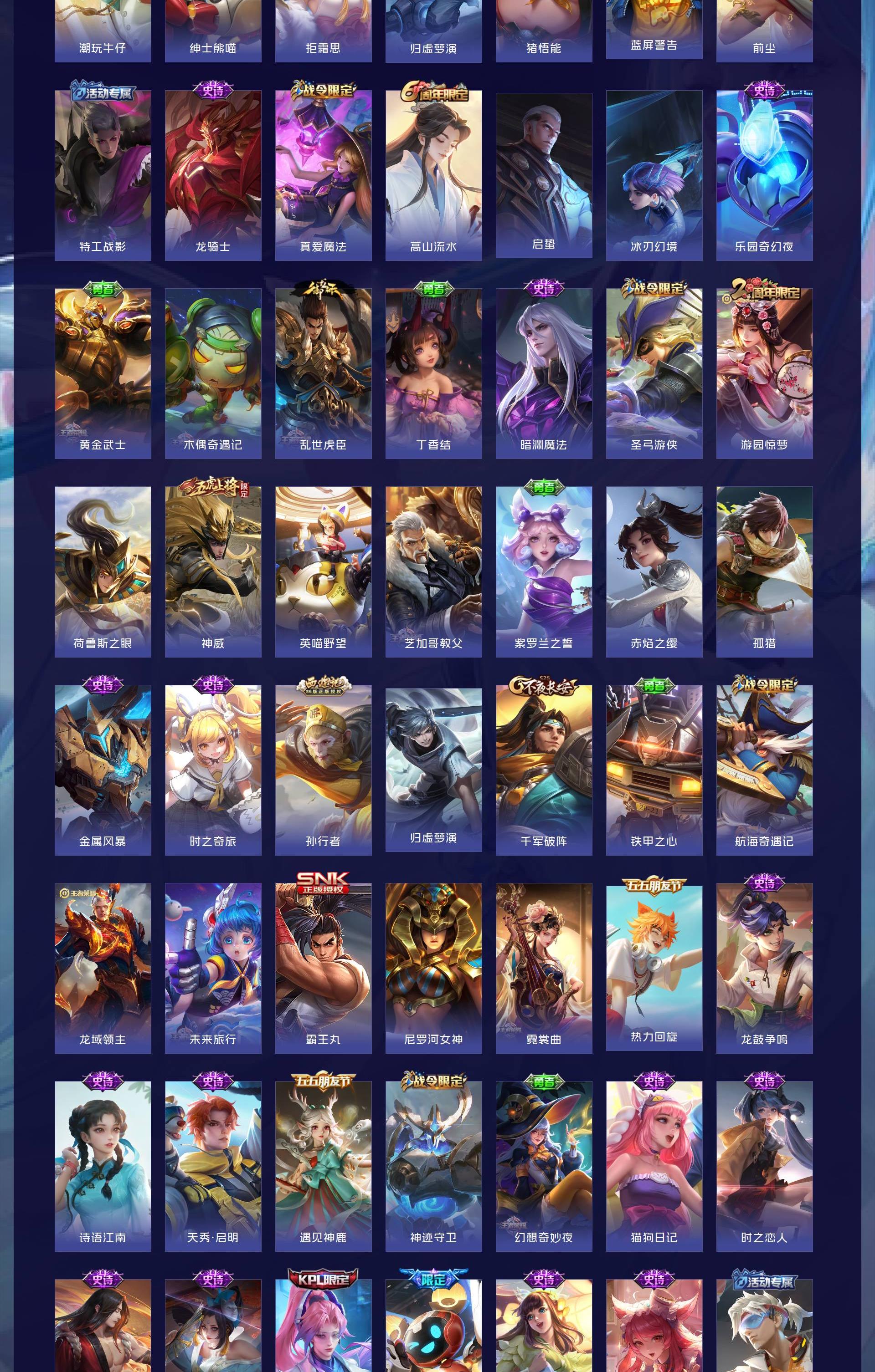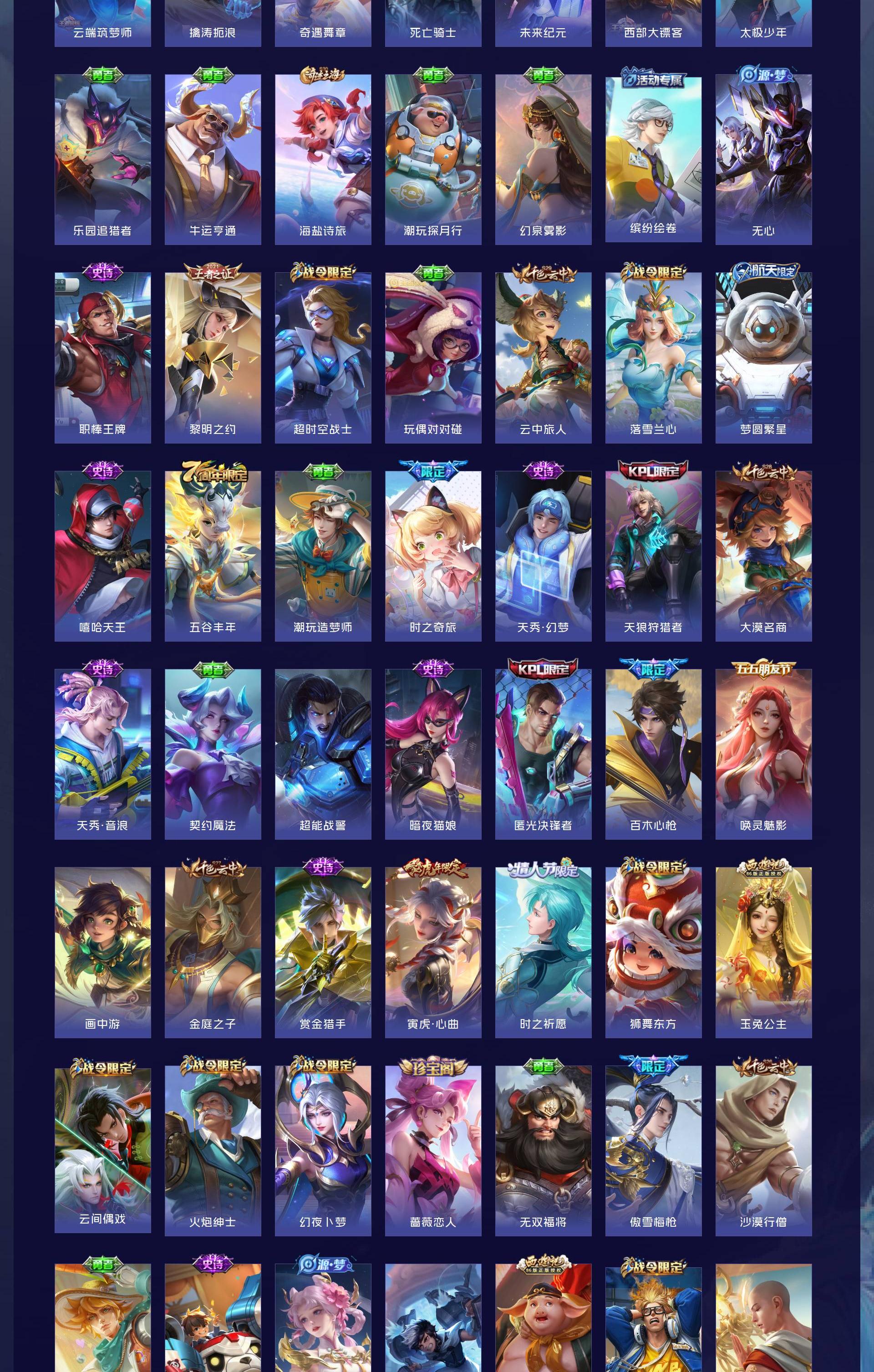 V10 皮肤478 至尊星耀 荣耀典藏9 无双皮肤1 星传说3 传说59 其他皮肤415