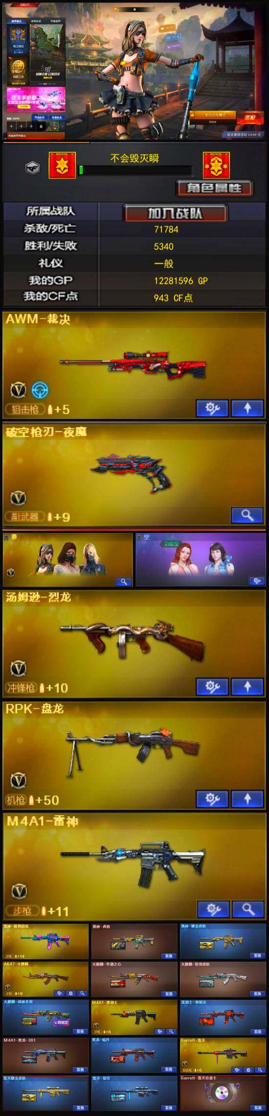 【皮肤】:烈龙-星空,雷神-虎将,雷神-耀金皮肤,火麒麟-华夏之心,火麒麟-轻羽皮肤,火麒麟-战神关羽,毁灭耀金皮肤,毁灭-星空,黑龙-暗月,M4A1-黑龙-361,黑骑士