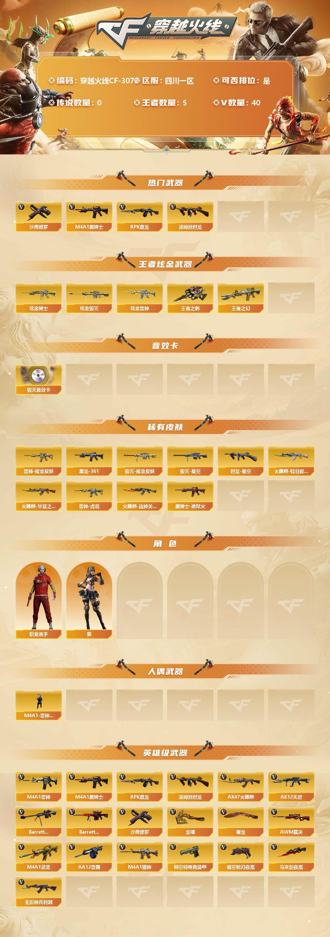 四川一区-40V-5王者-5炫金【热门武器】:M4A1-黑骑士,汤姆逊-烈龙