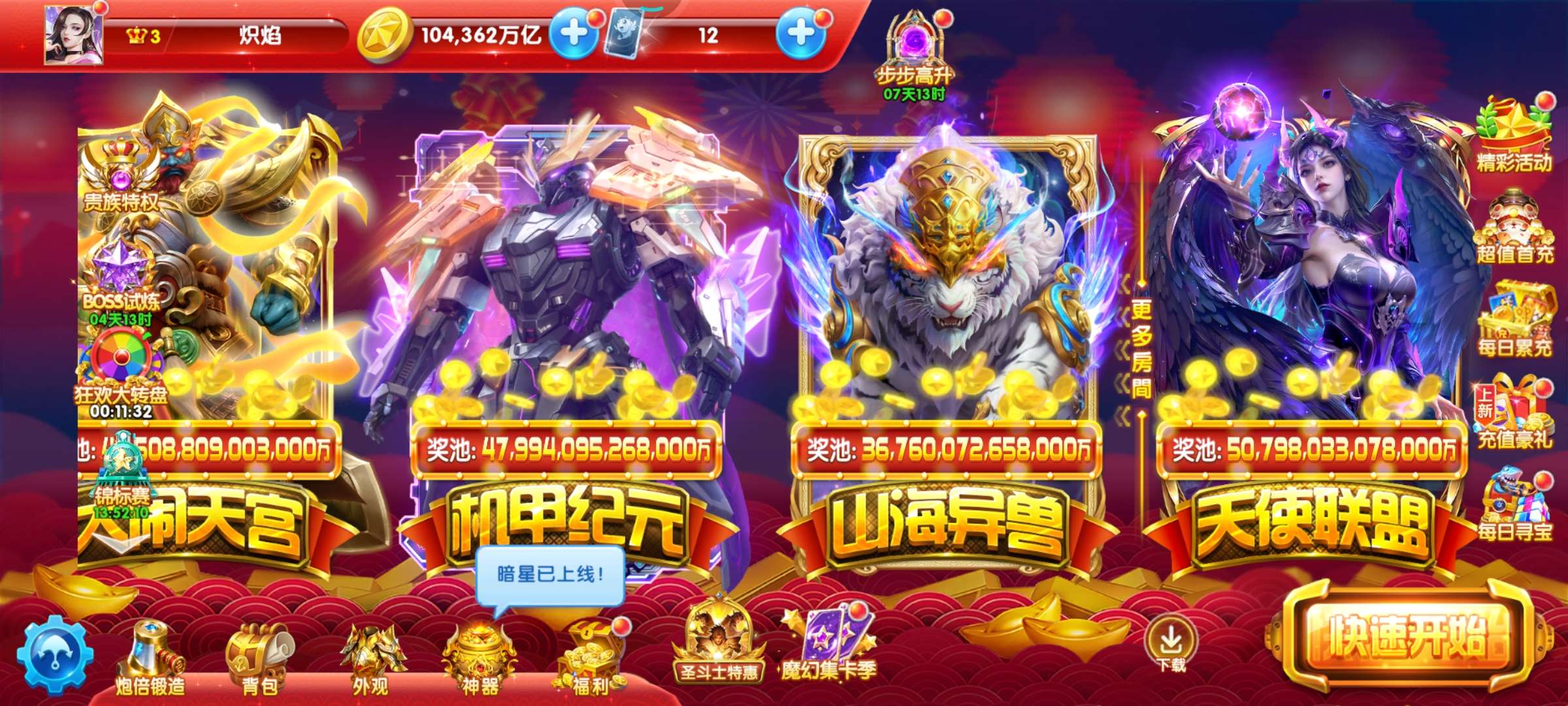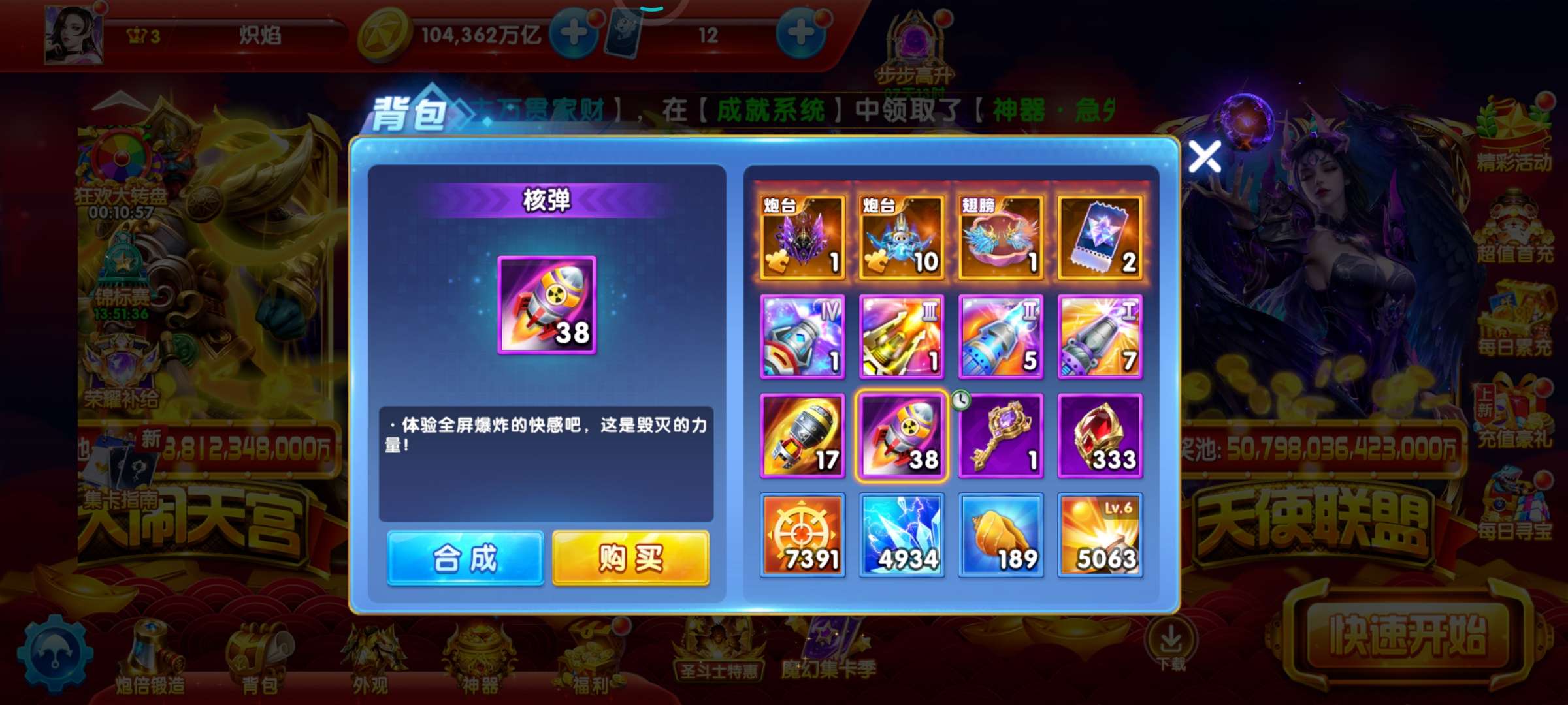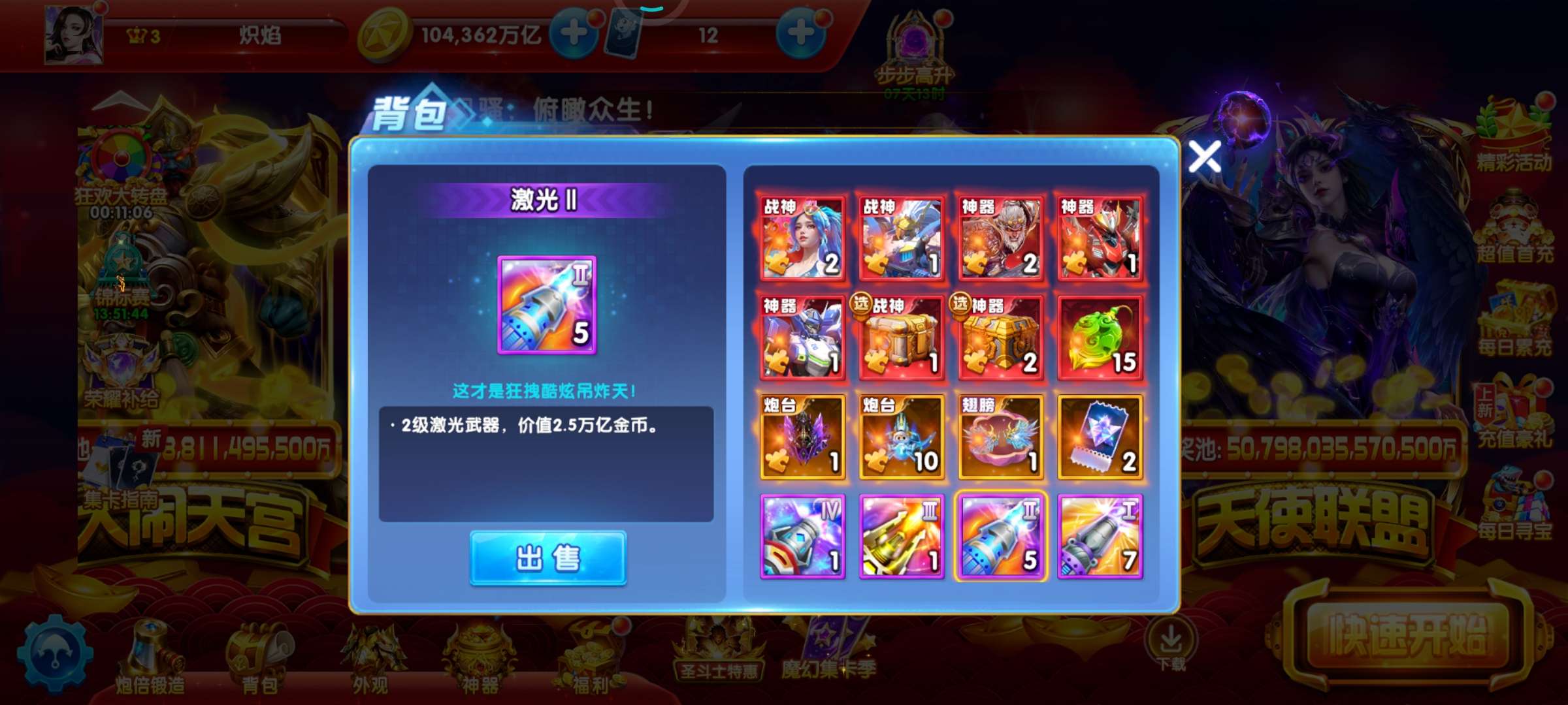 带号出 v3 1043万亿 80炮 巅峰16级 加速翅膀9天 6级狂4天 狂暴5063 刀手充3天