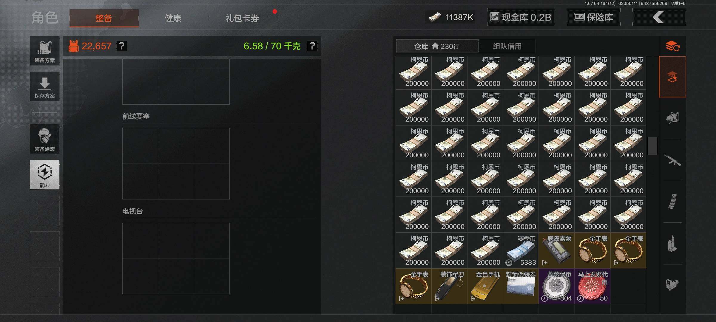 等级:30/段位:暗区传说/仓库价值(百万):227.3/柯恩币:165626553/热能武器补牢/旗帜AEK/