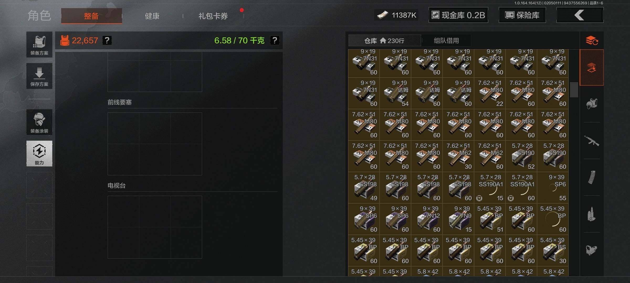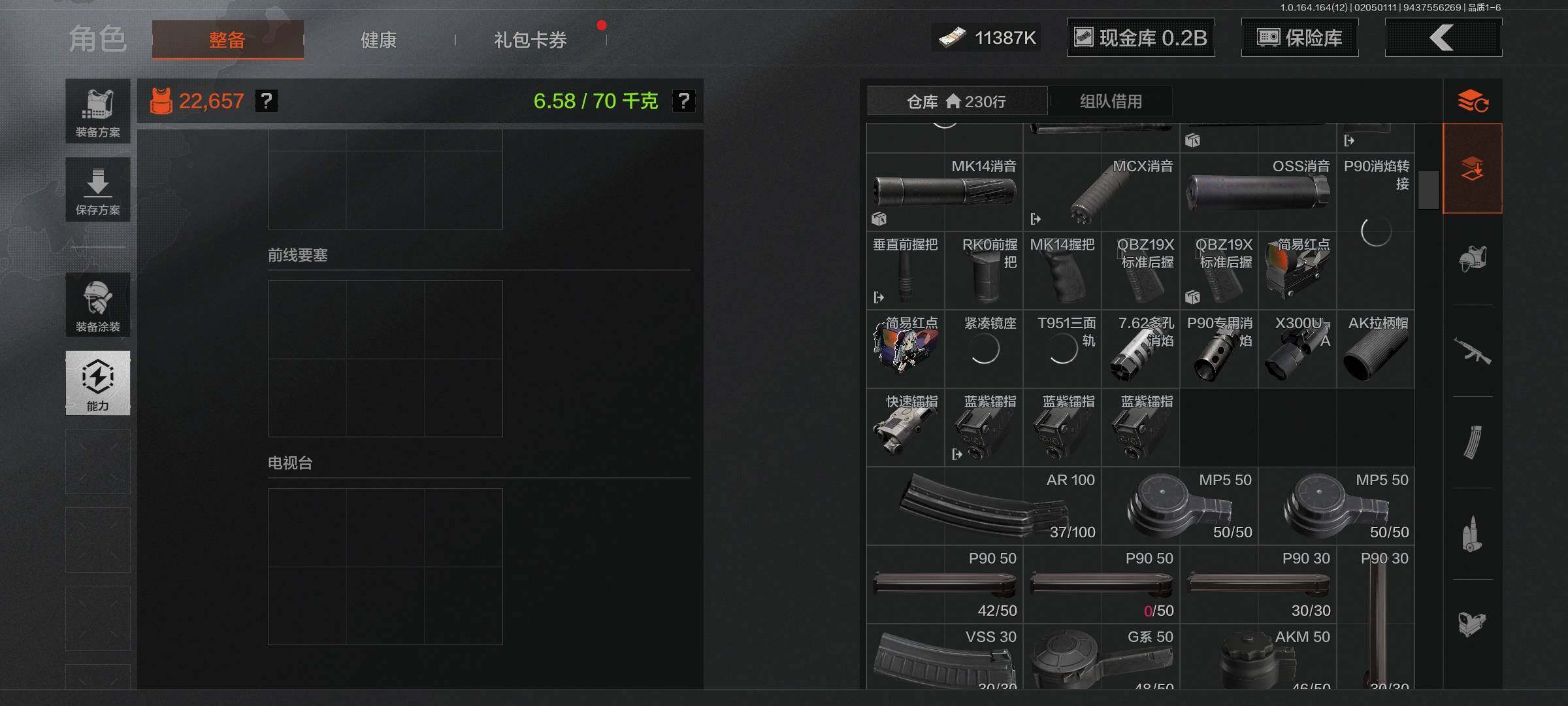 【AQZG1191】等级:30/段位:暗区传说/仓库价值(百万):227.3/柯恩币:165626553/热能武器补牢/旗帜AEK/旧王圣谕VSS/棱光裂变QBU191/利齿风暴MPX