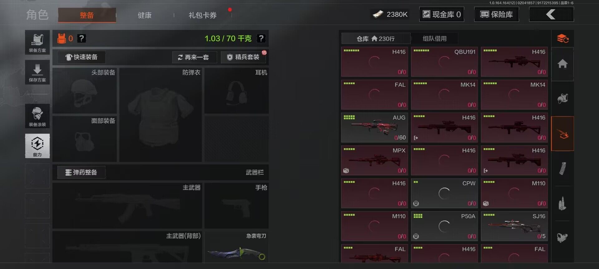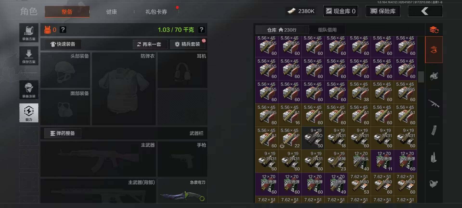 【AQZG1183】等级:30/段位:大师/仓库价值(百万):73.1/柯恩币:2380000/工兵铲/急袭弯刀/苍穹利爪/赢家匕首/热能武器补牢/脉冲马克西姆/白蔷薇斯黛拉/旧王圣谕QBZ191/告丧夜曲AUG/战术大师AEK/战术大师AN94/利齿风暴MPX/旧王圣谕VSS