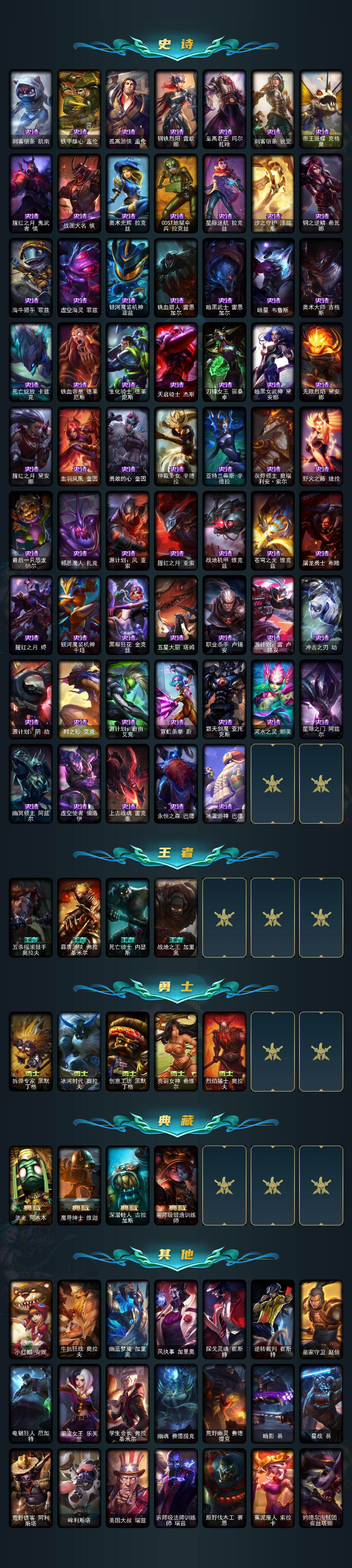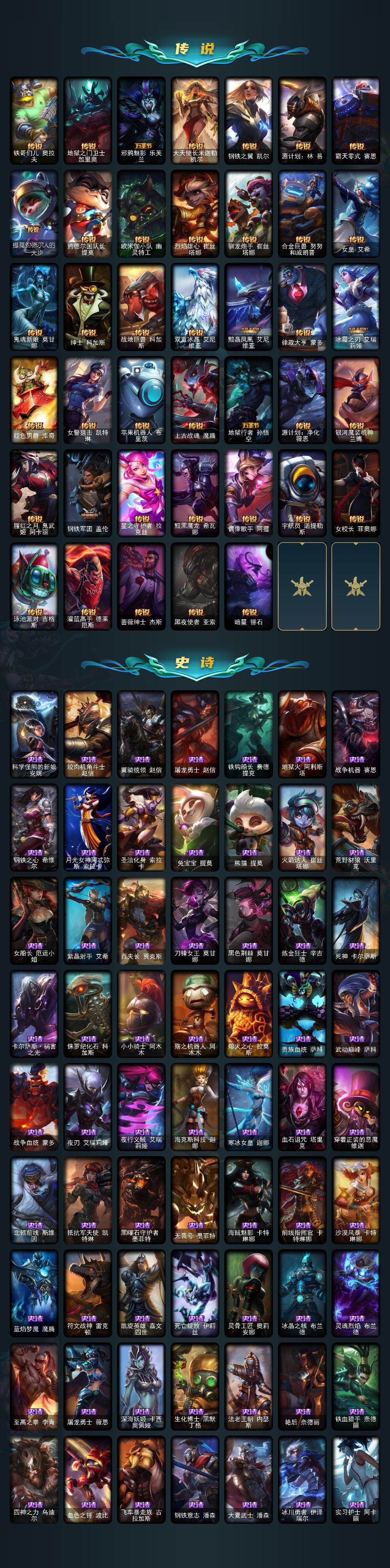 148英雄/420皮肤/2终极/73限定/32炫彩/40传说/124史诗/流光翡翠/