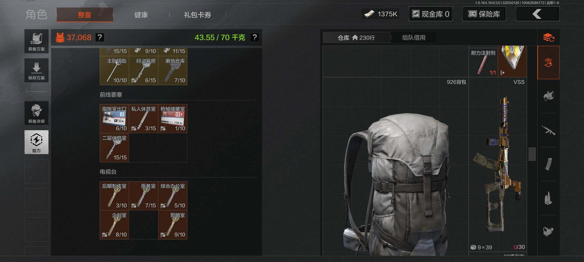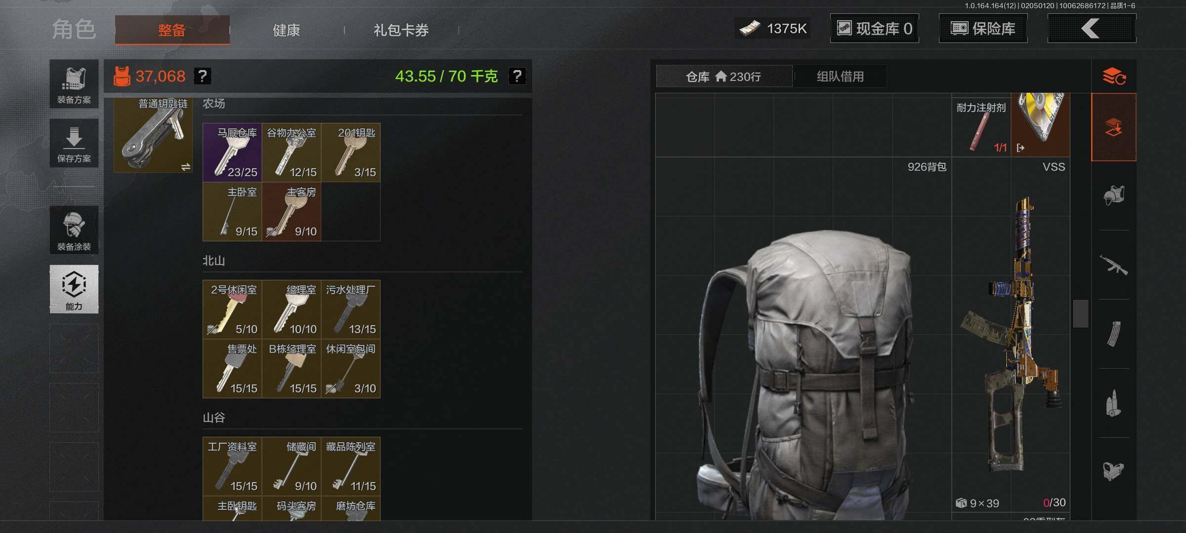 等级:30/段位:暗区传说/仓库价值(百万):49.3/柯恩币:1375000/噤声者作战手套/工兵铲/来战开山刀/不败坚守作战服/浮鳞影青QBZ192/旧王圣谕VSS/利齿风暴MPX/旗帜AEK/告丧夜曲AR57