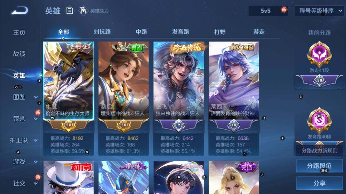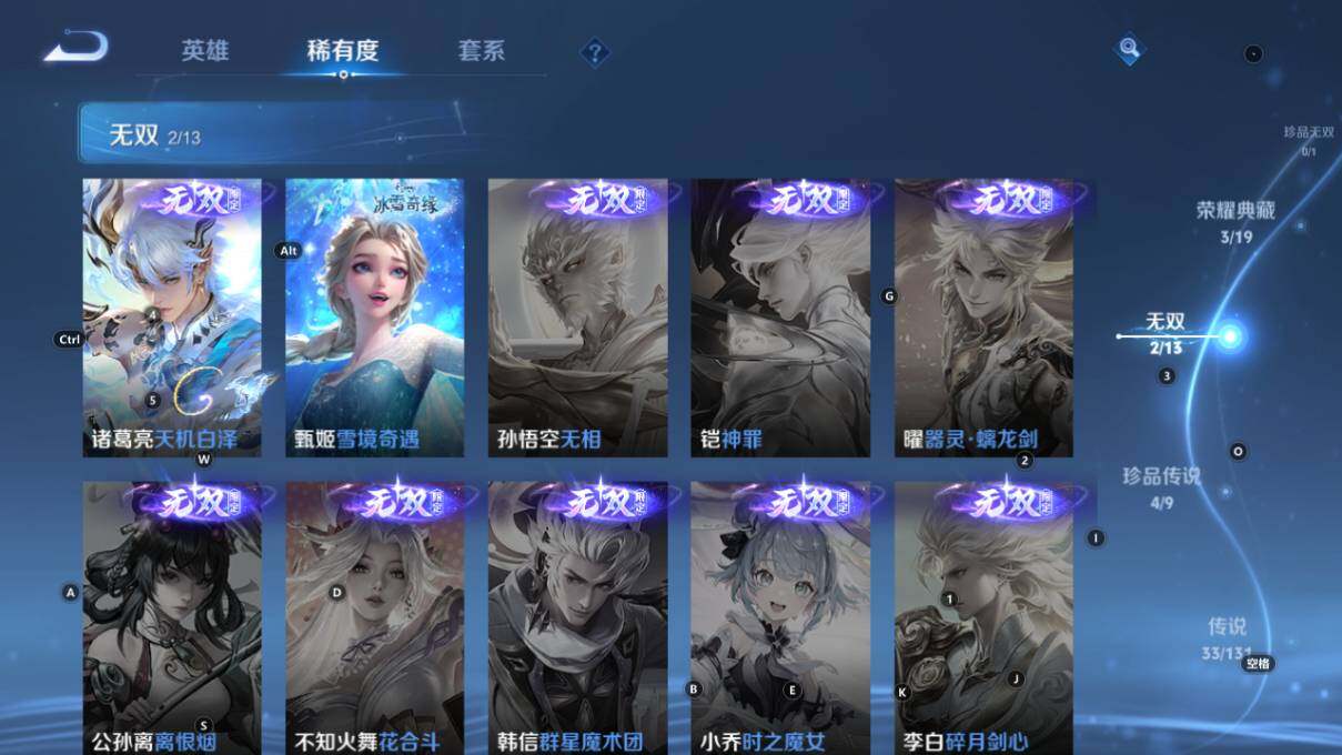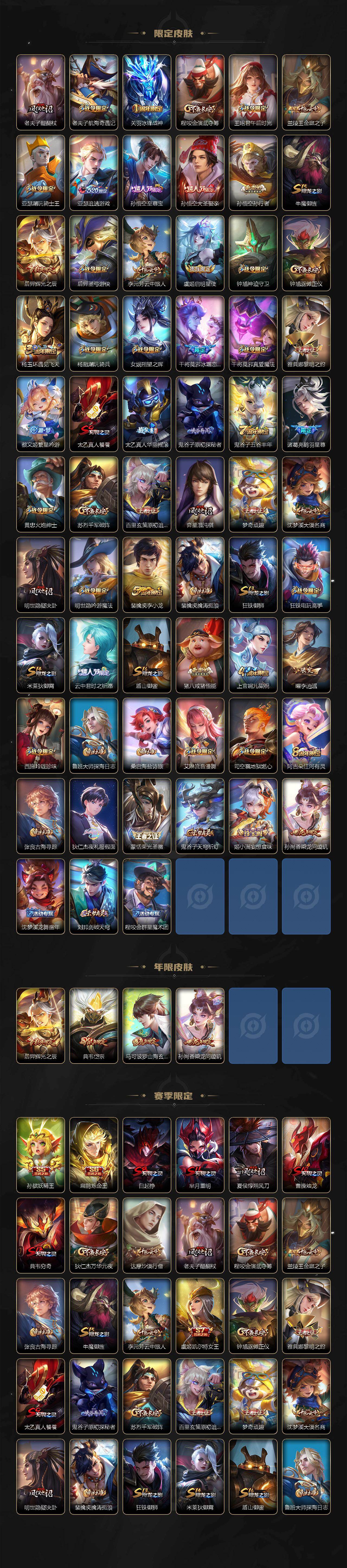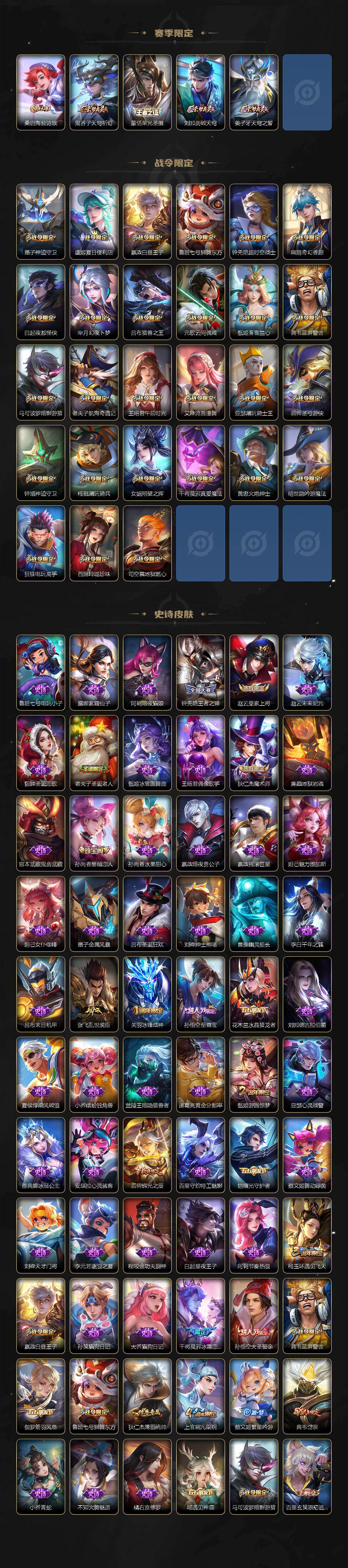 V9-最强王者段位-126英雄-410皮肤-3典藏皮肤-2无双-4珍品传说-3星传说-33传说-119史诗