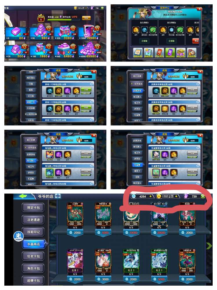 铜杯6个(轻松前三),成就9295,曹操冥神圣蛇魔笛三战龙爹双爆裂龙古苏生鲁肃雷击,金币1707w,