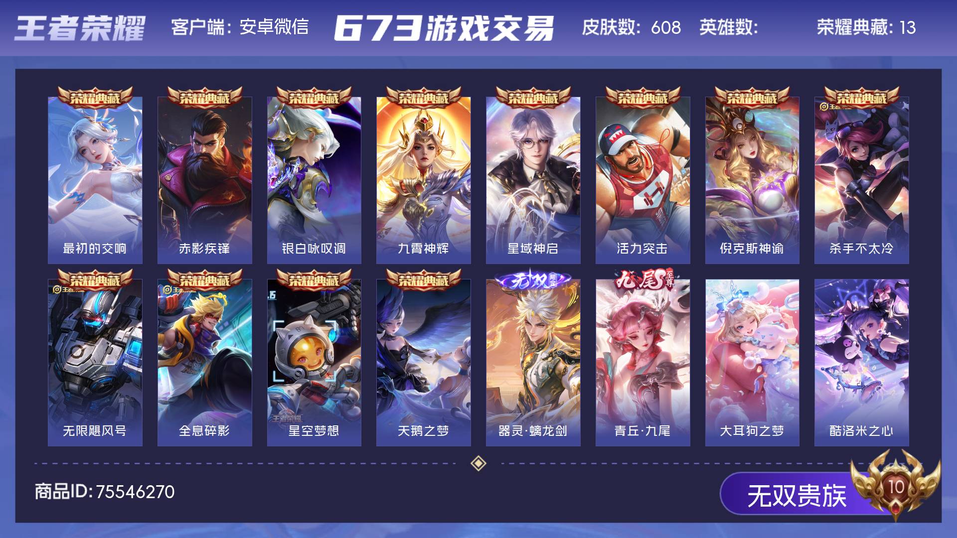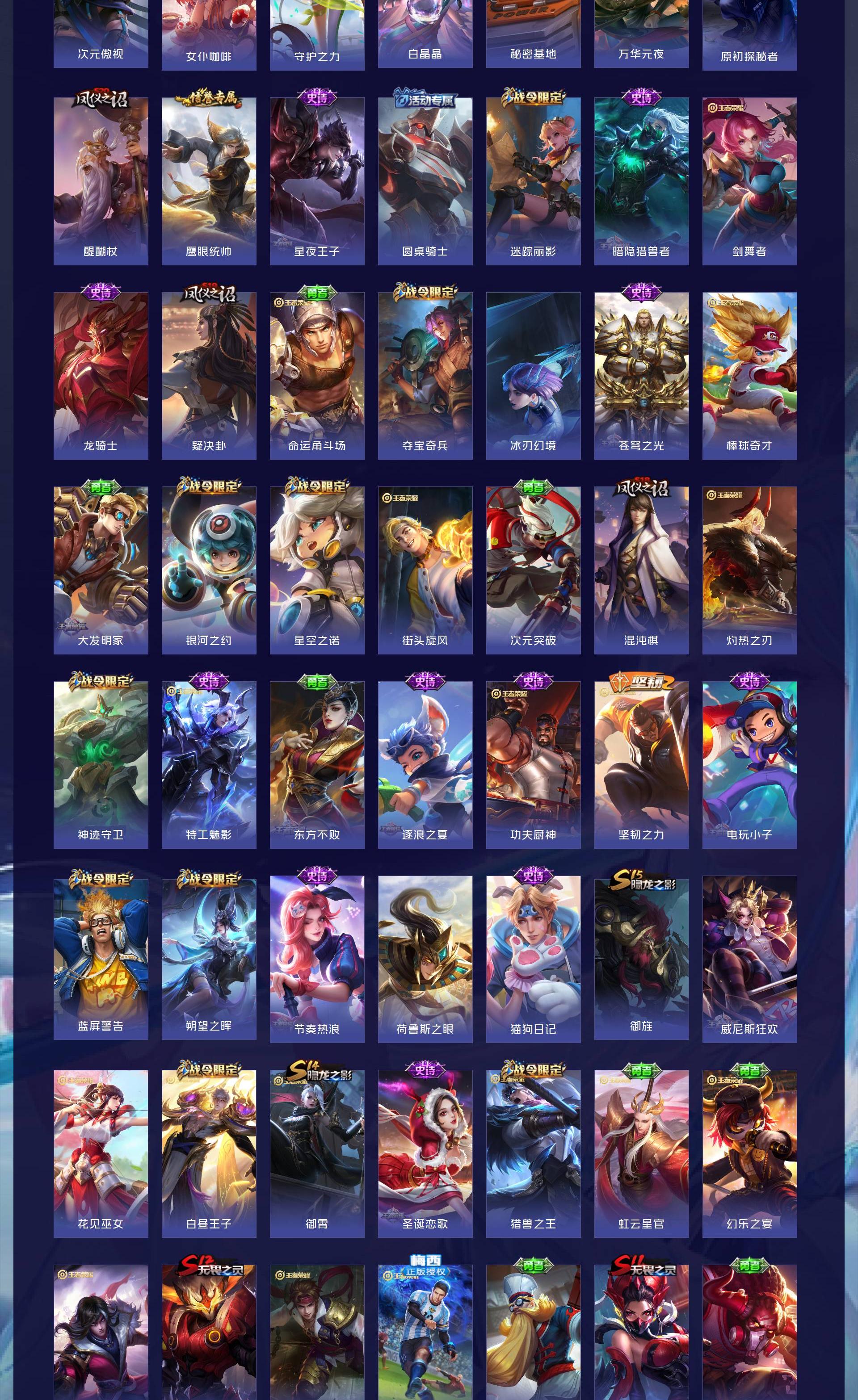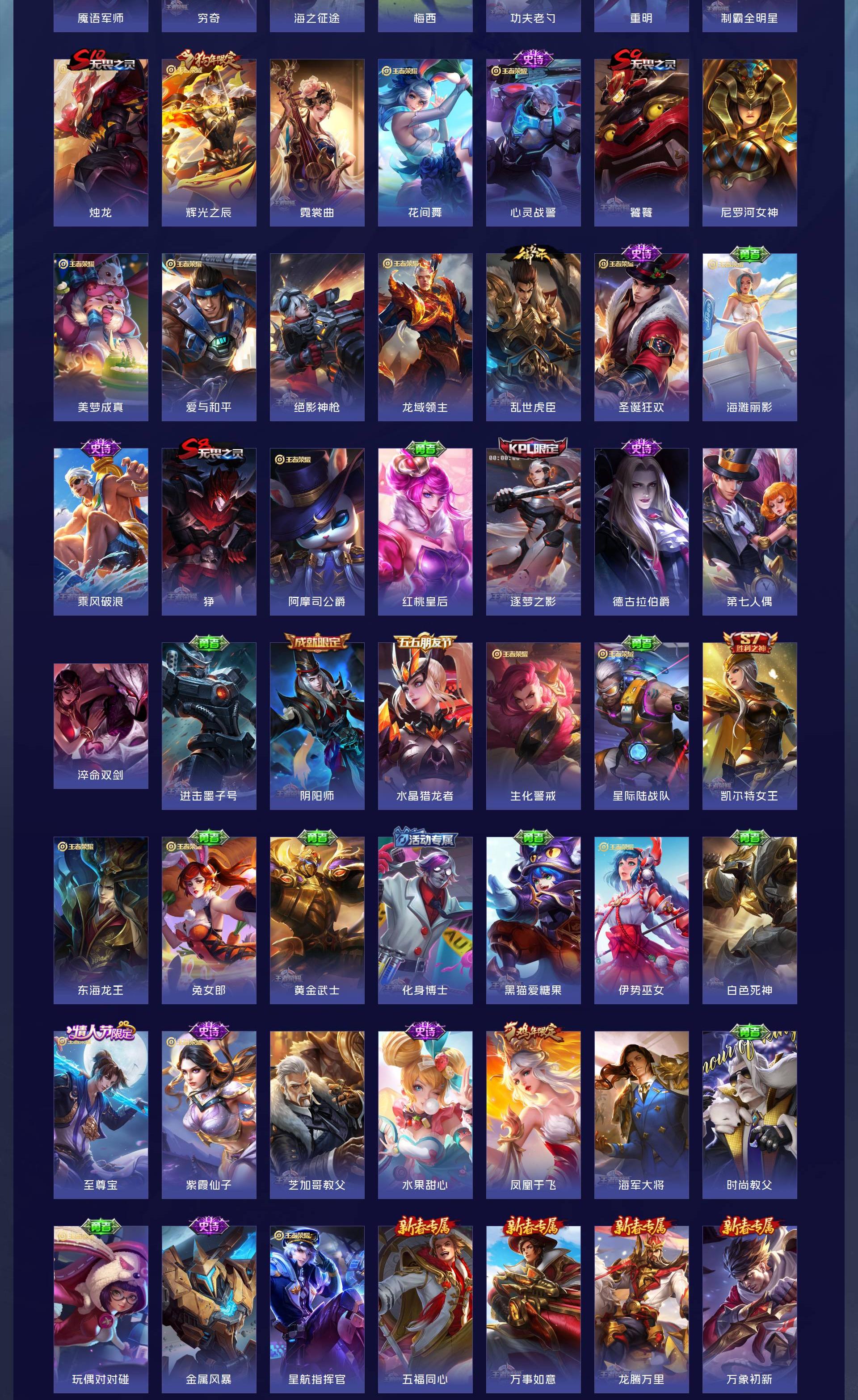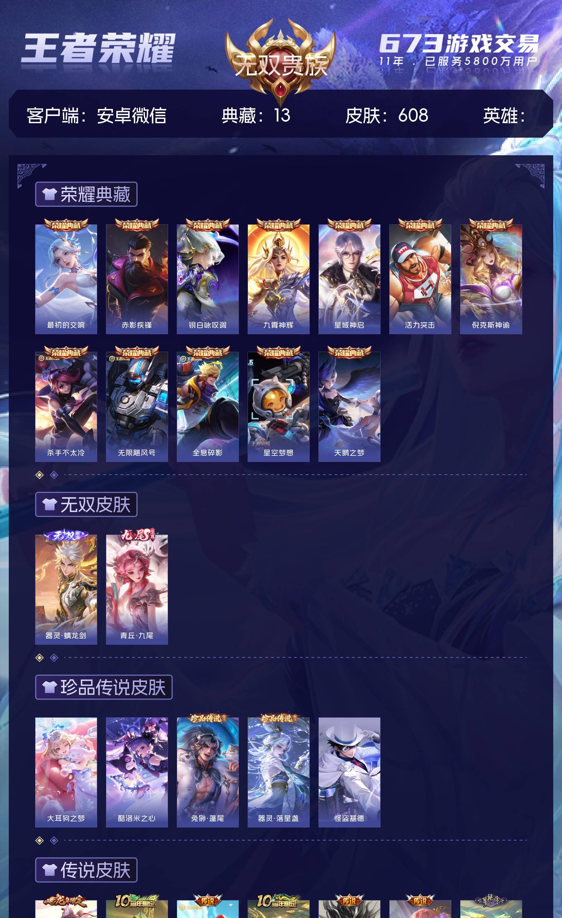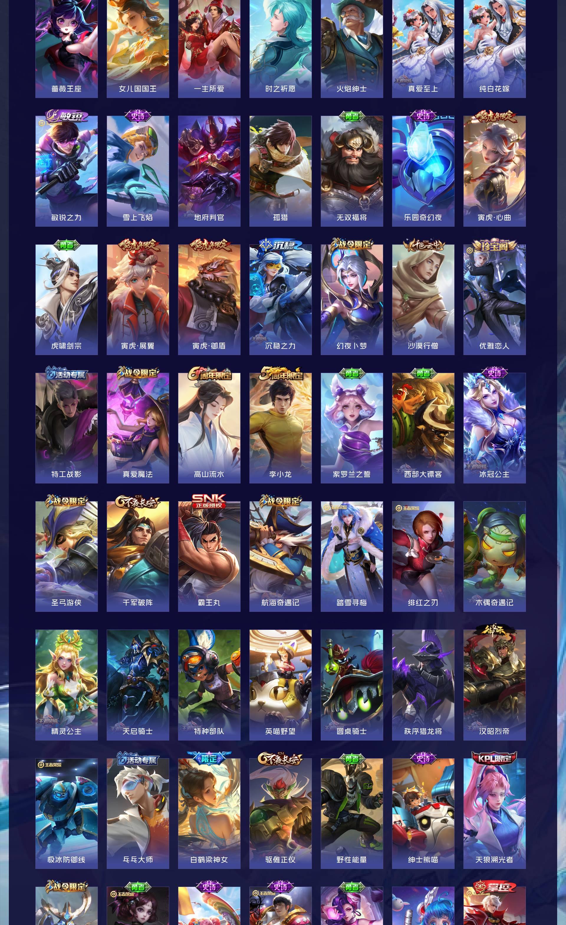 无双贵族 皮肤608 最强王者 荣耀典藏13 无双皮肤2 珍品传说5 星传说10 传说68 其他皮肤