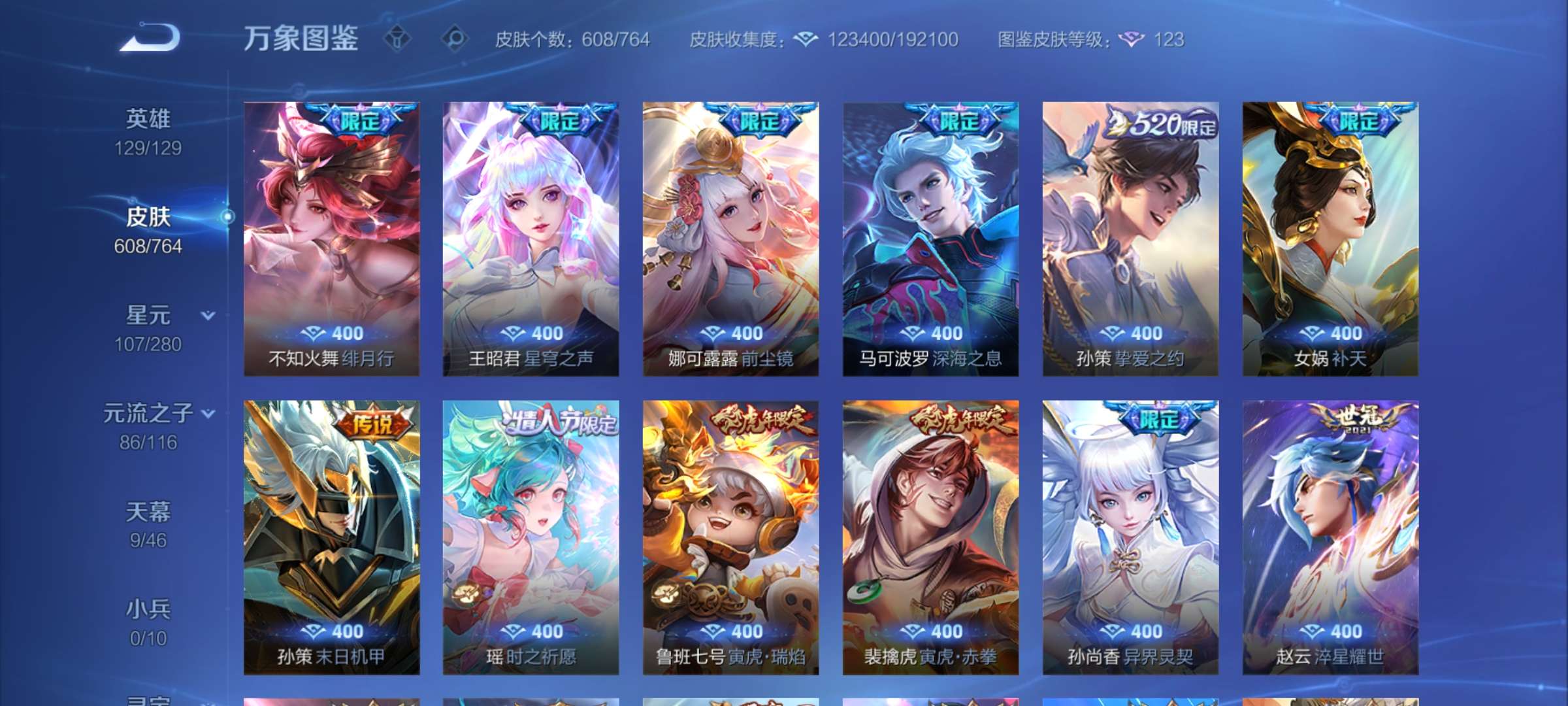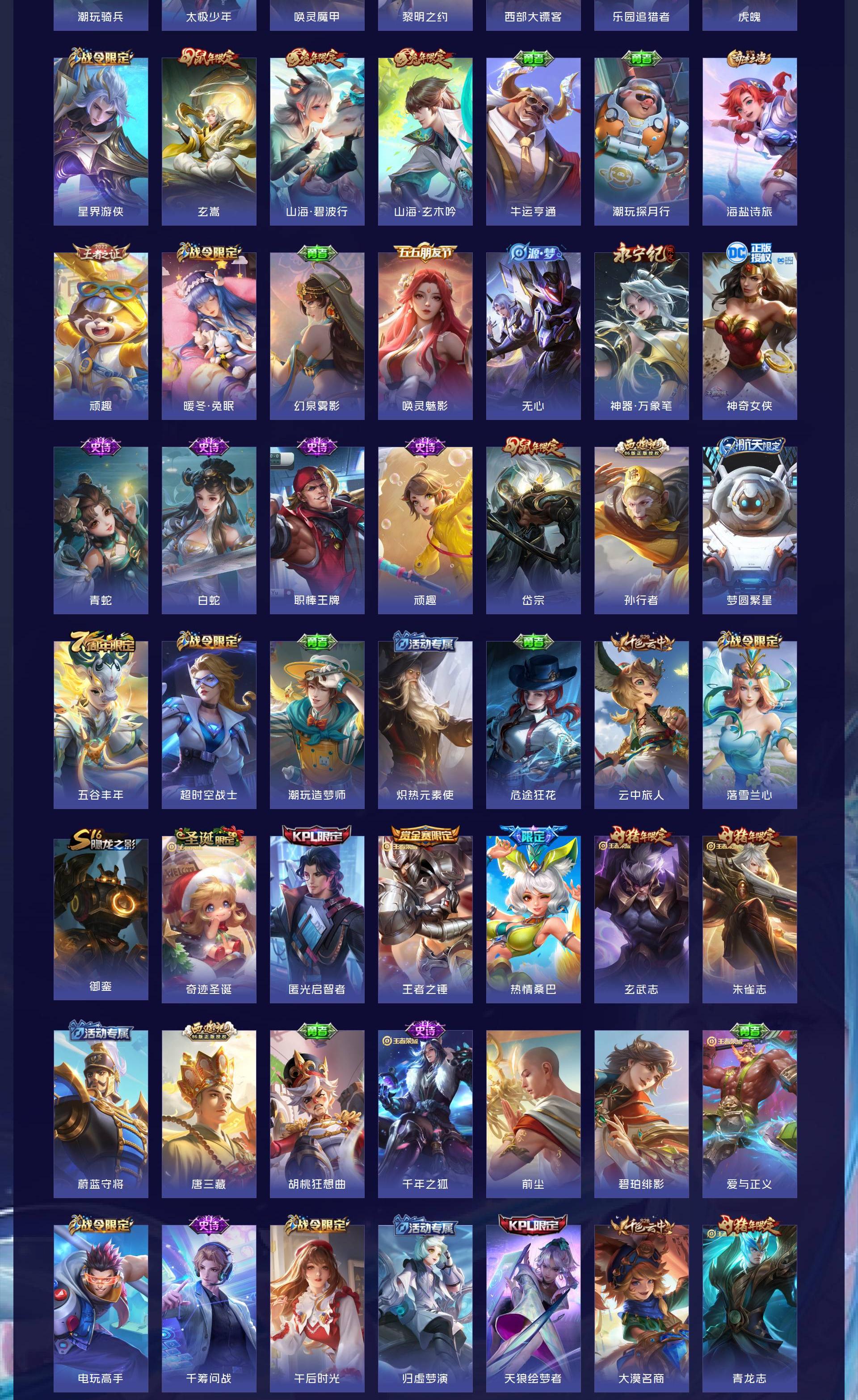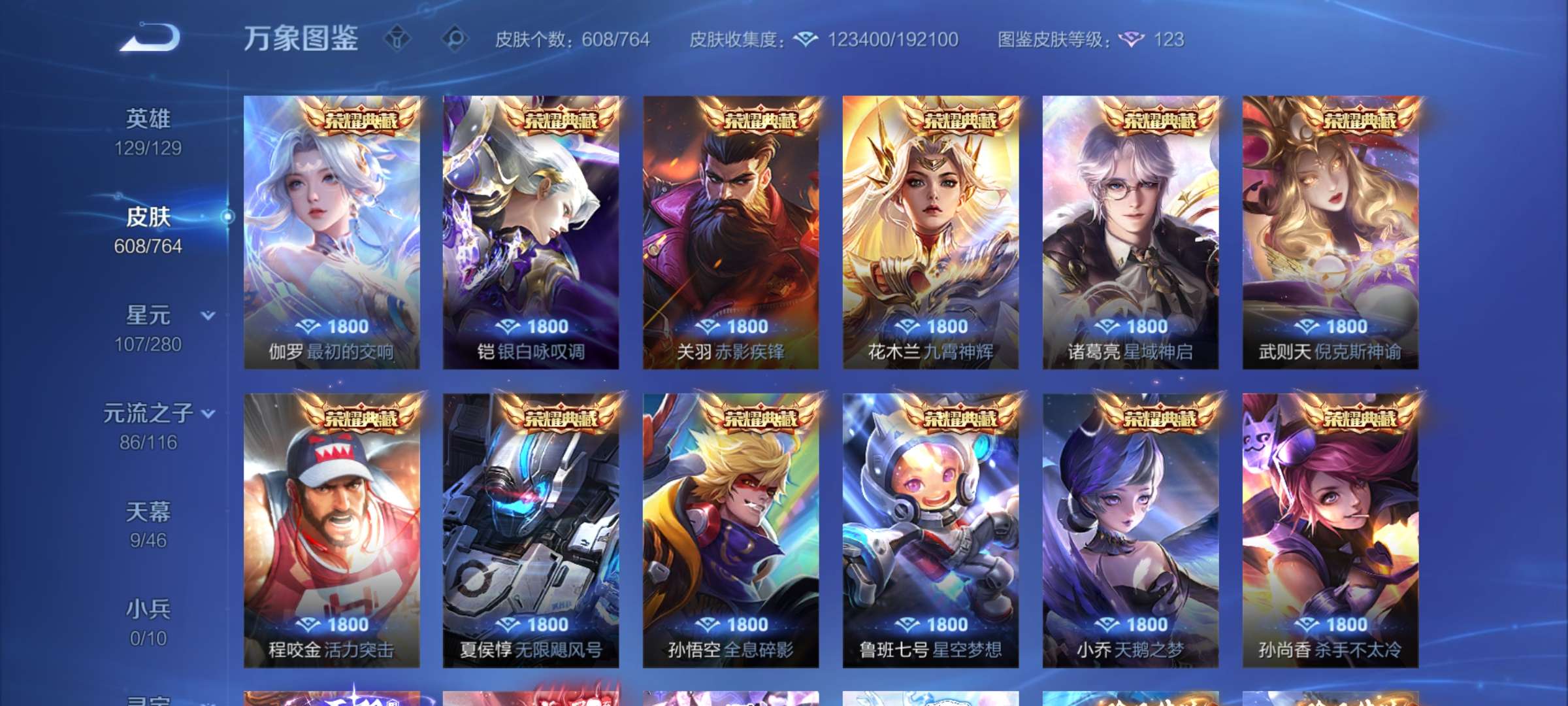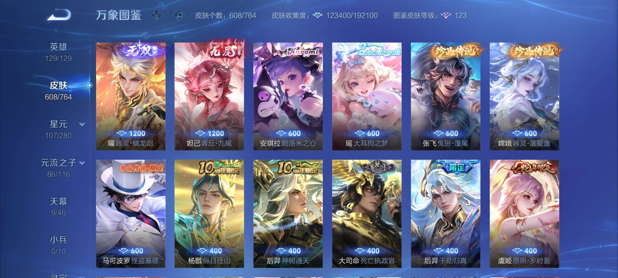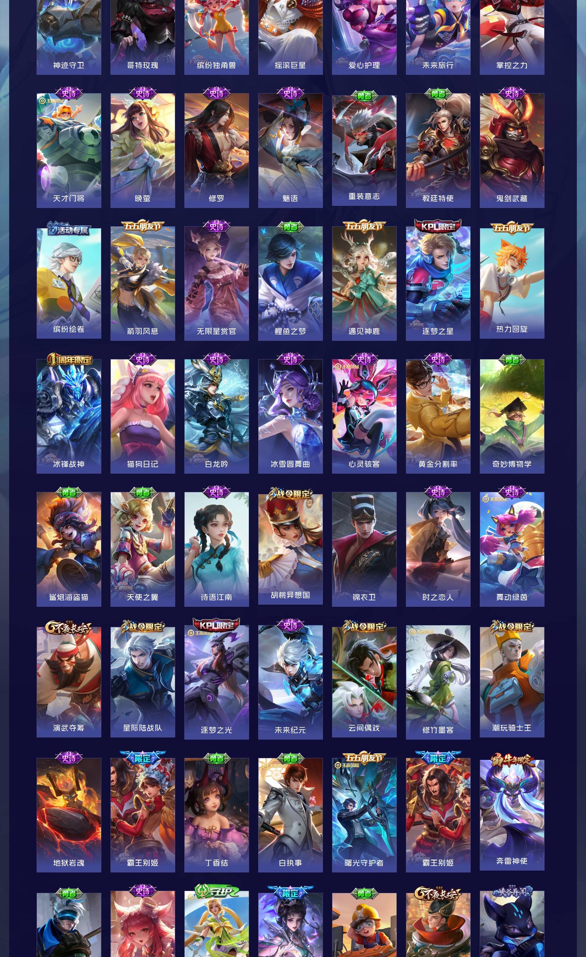 无双贵族 皮肤608 最强王者 荣耀典藏13 无双皮肤2 珍品传说5 星传说10 传说68 其他皮肤