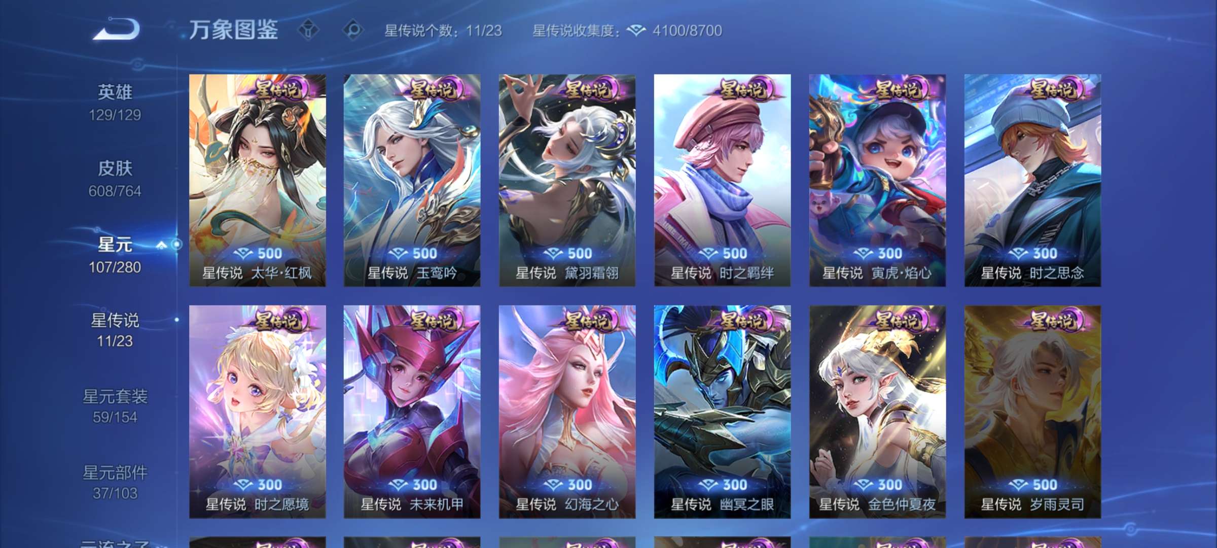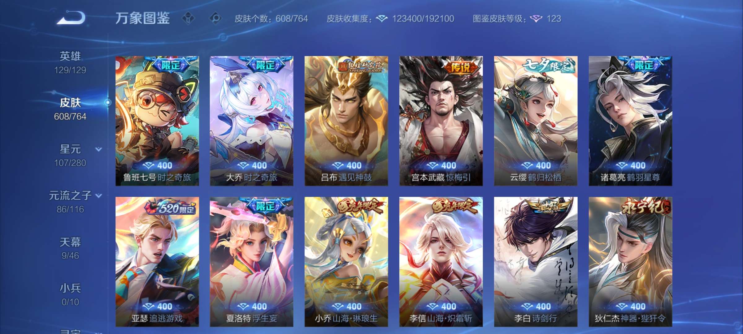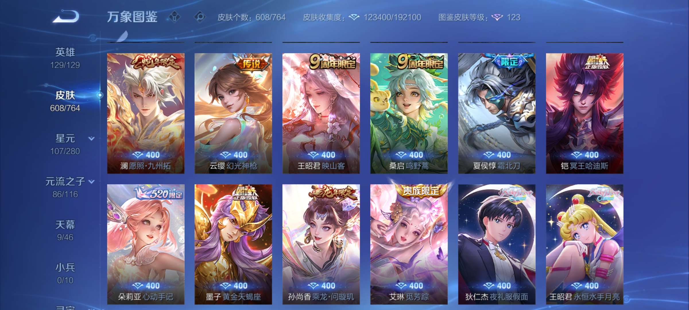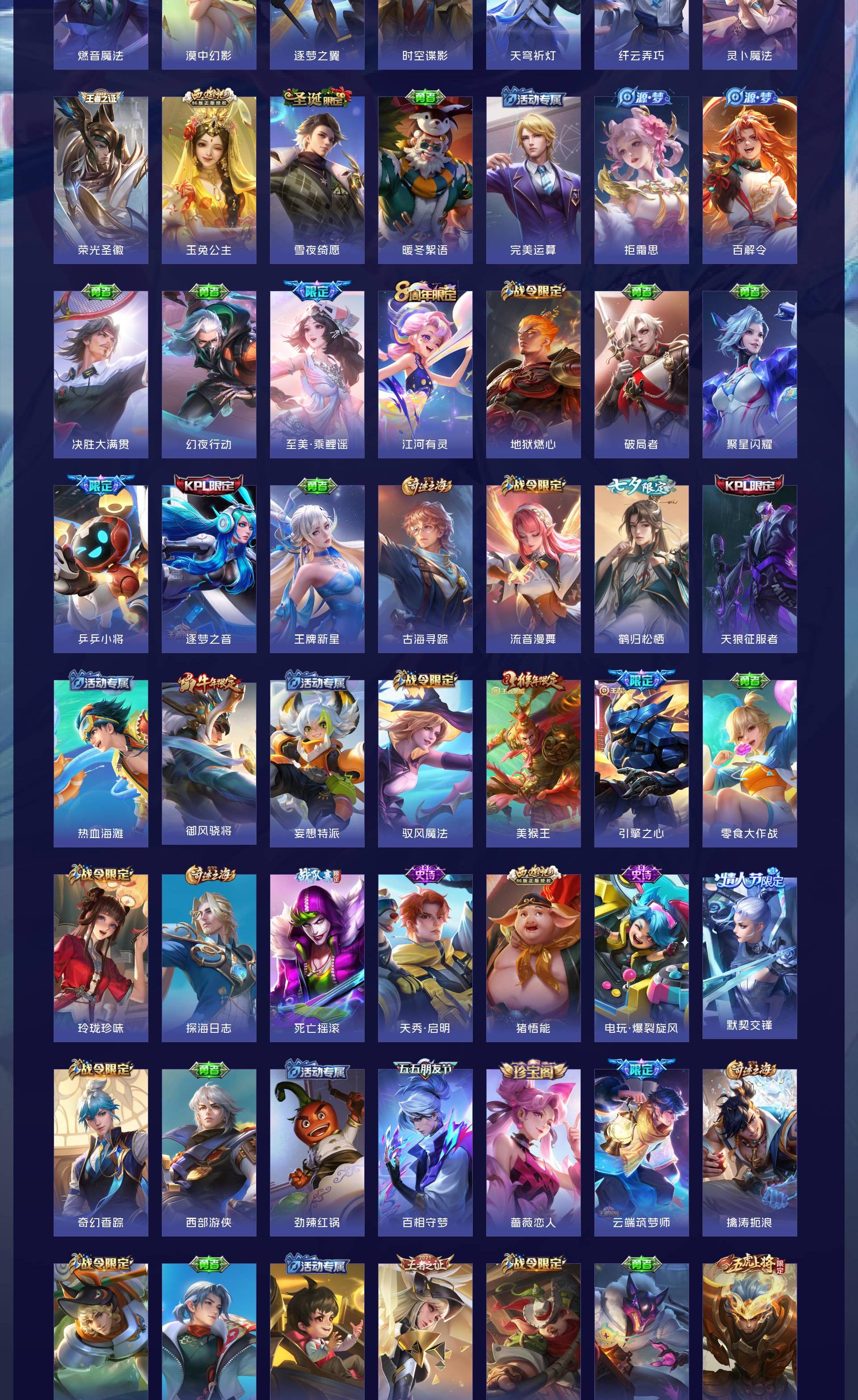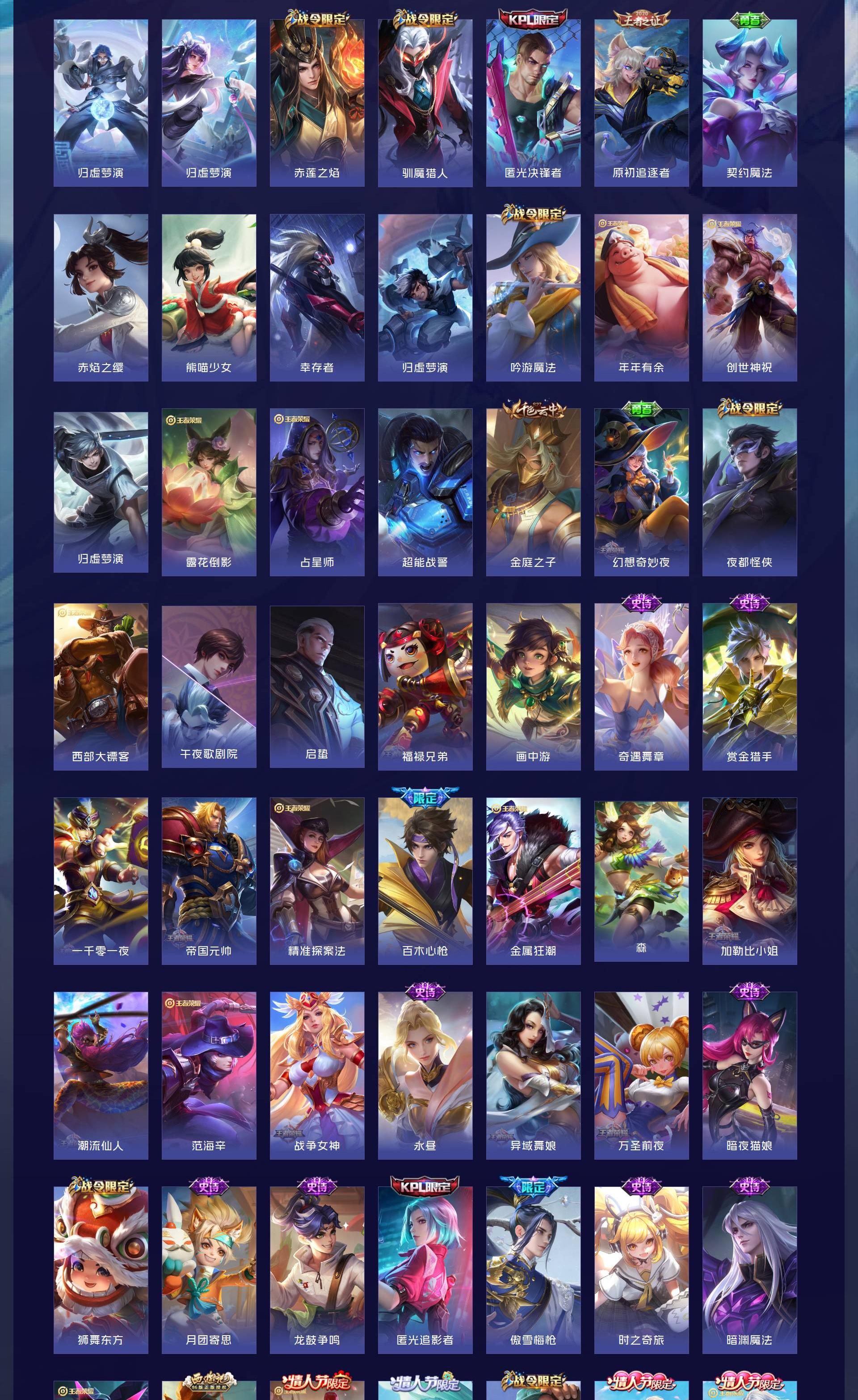 无双贵族 皮肤608 最强王者 荣耀典藏13 无双皮肤2 珍品传说5 星传说10 传说68 其他皮肤
