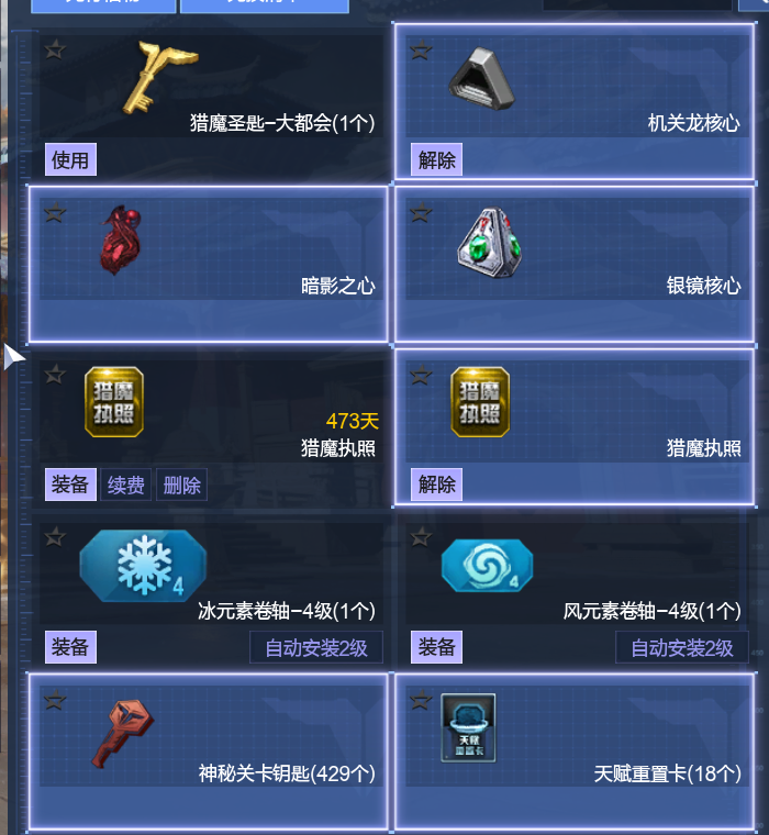 很多绝版道具都有,足够一个玩家日常,很多东西都没展示,可以具体问
