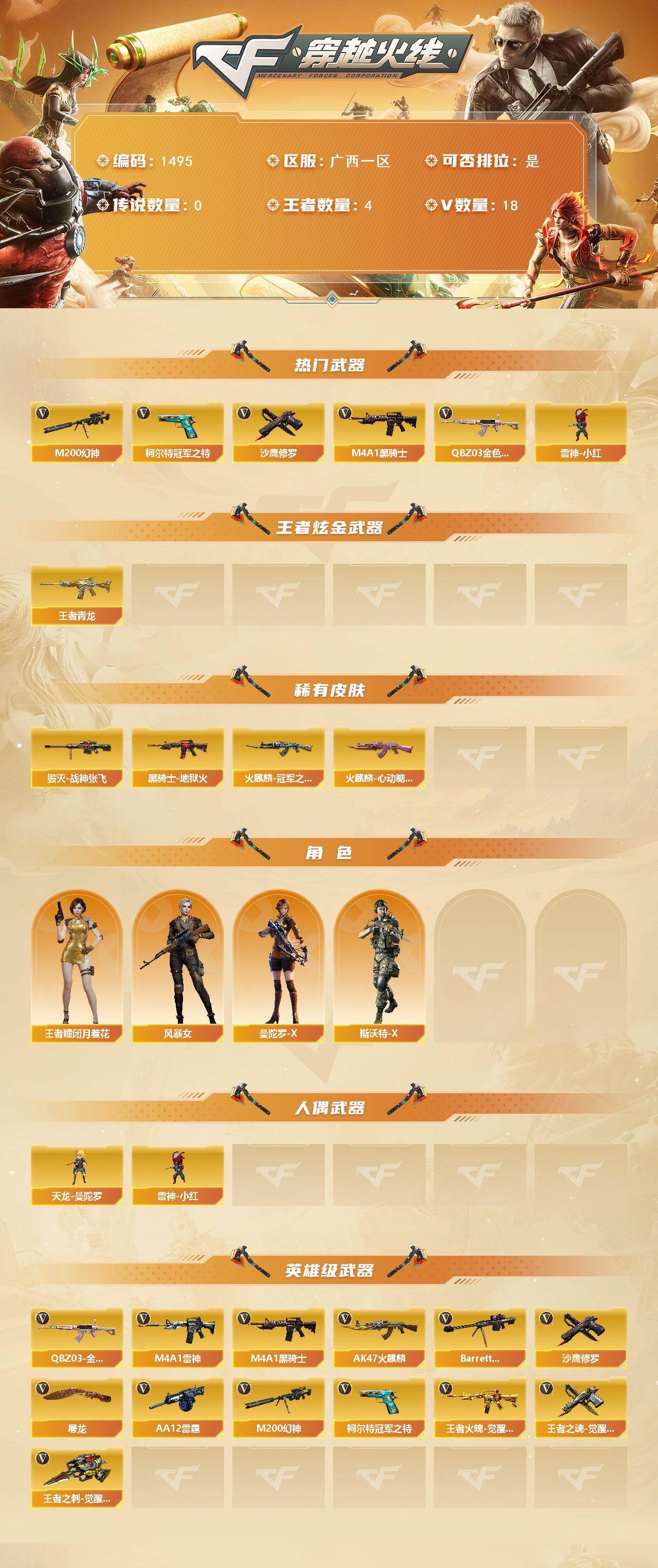广西一区-21V-4王者武器数-0炫金武器数