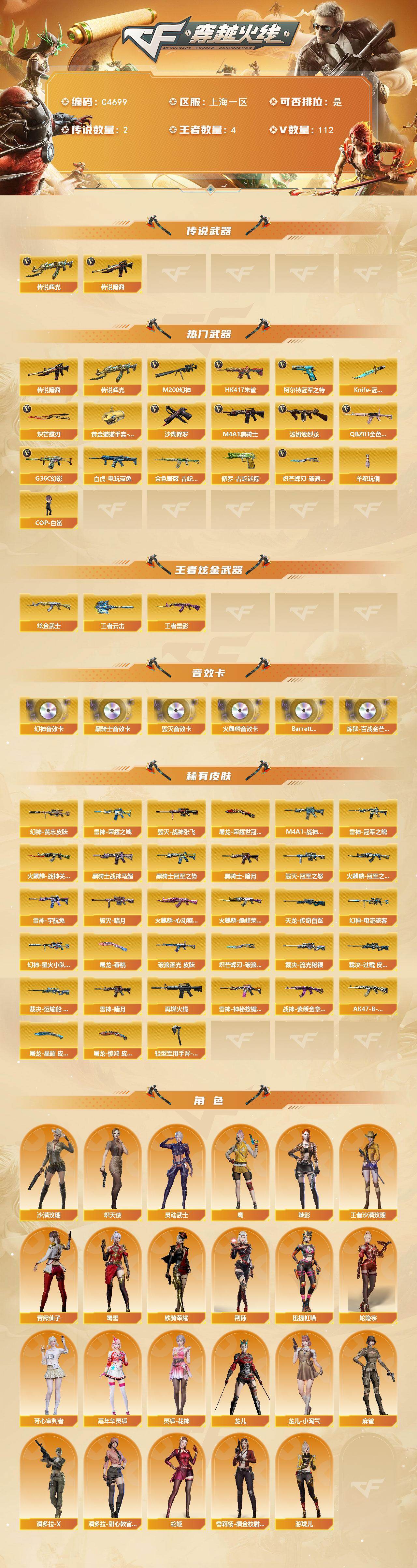 【C4699】上海一区-112V-4王者武器数-1炫金武器数