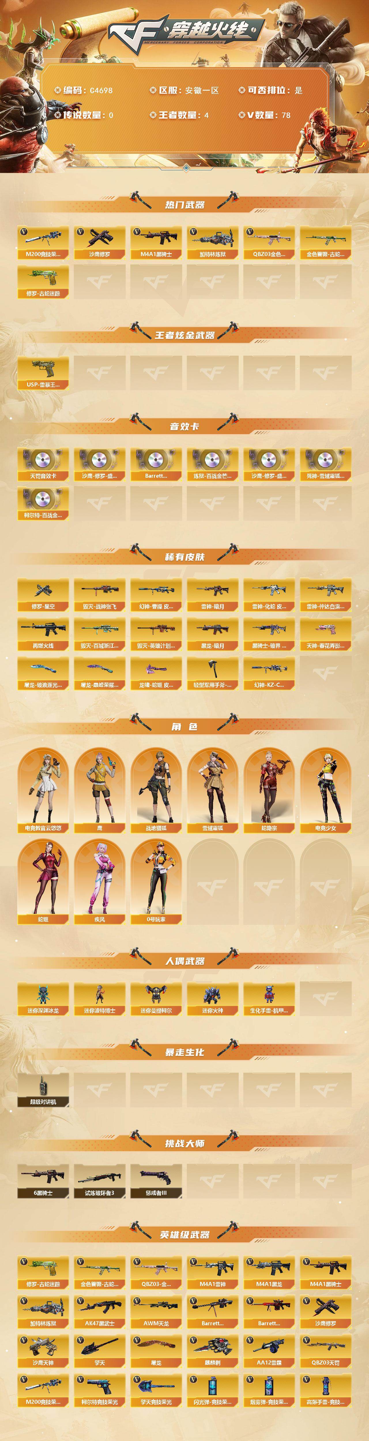 【C4698】安徽一区-77V-4王者武器数-0炫金武器数