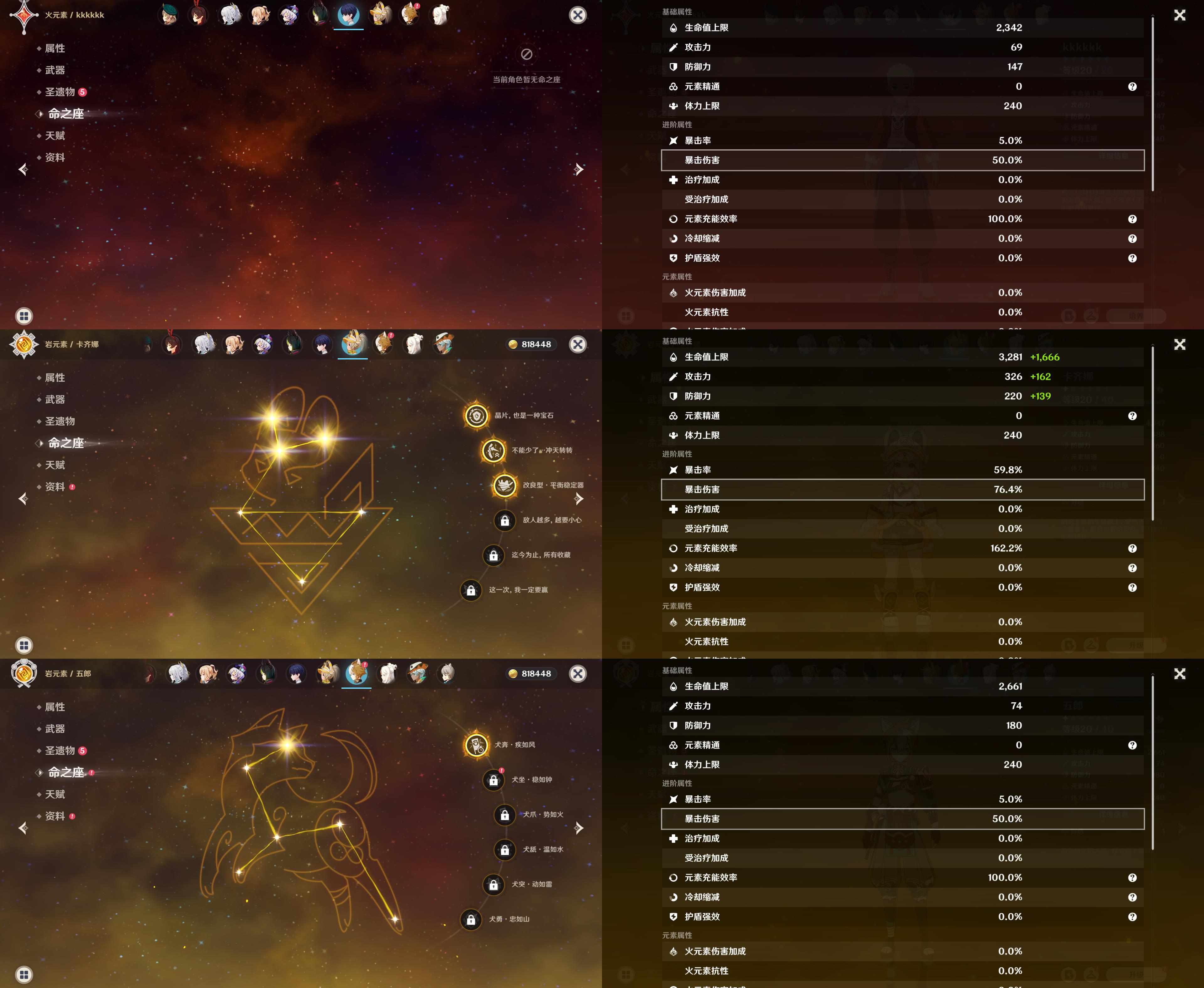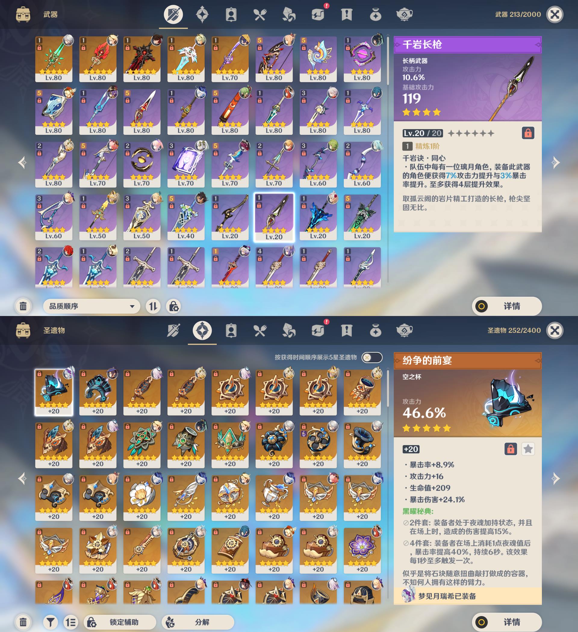 58级/31黄/女主/22个五星角色/5个五星武器