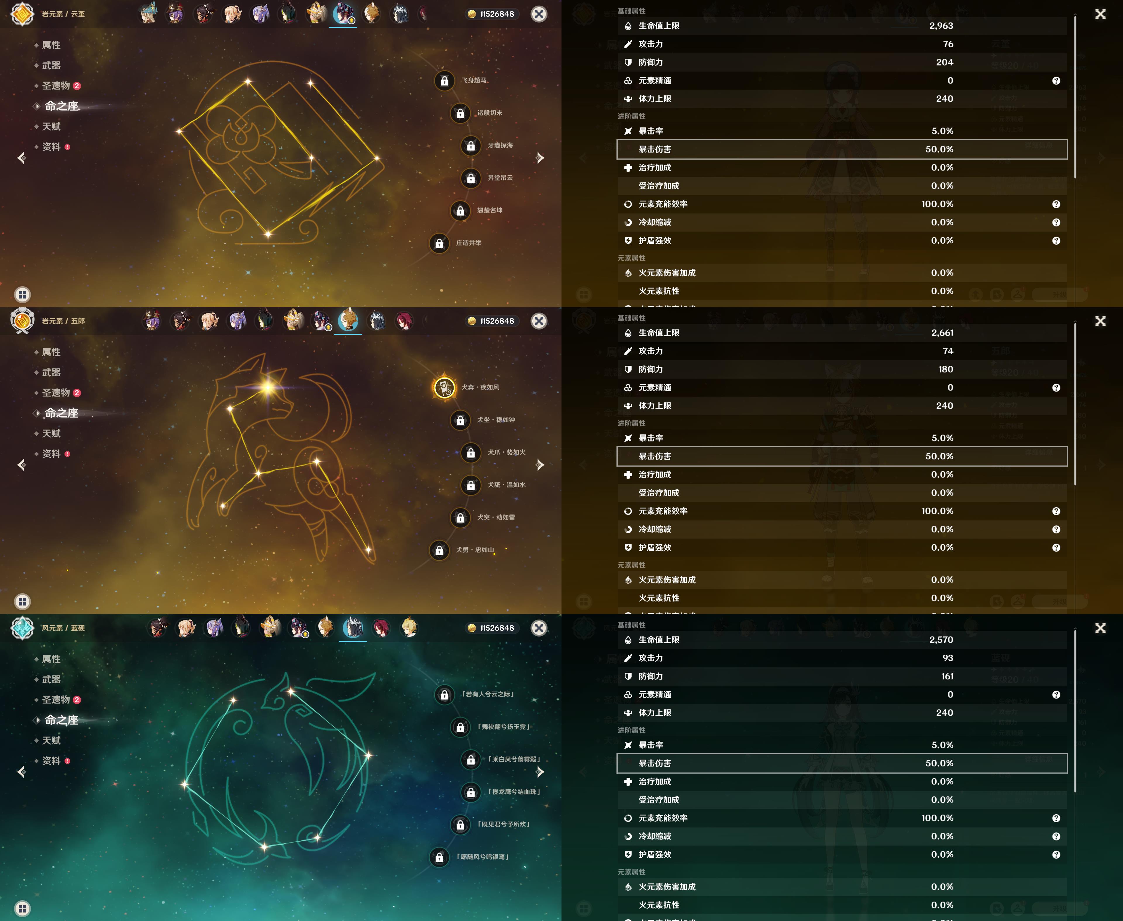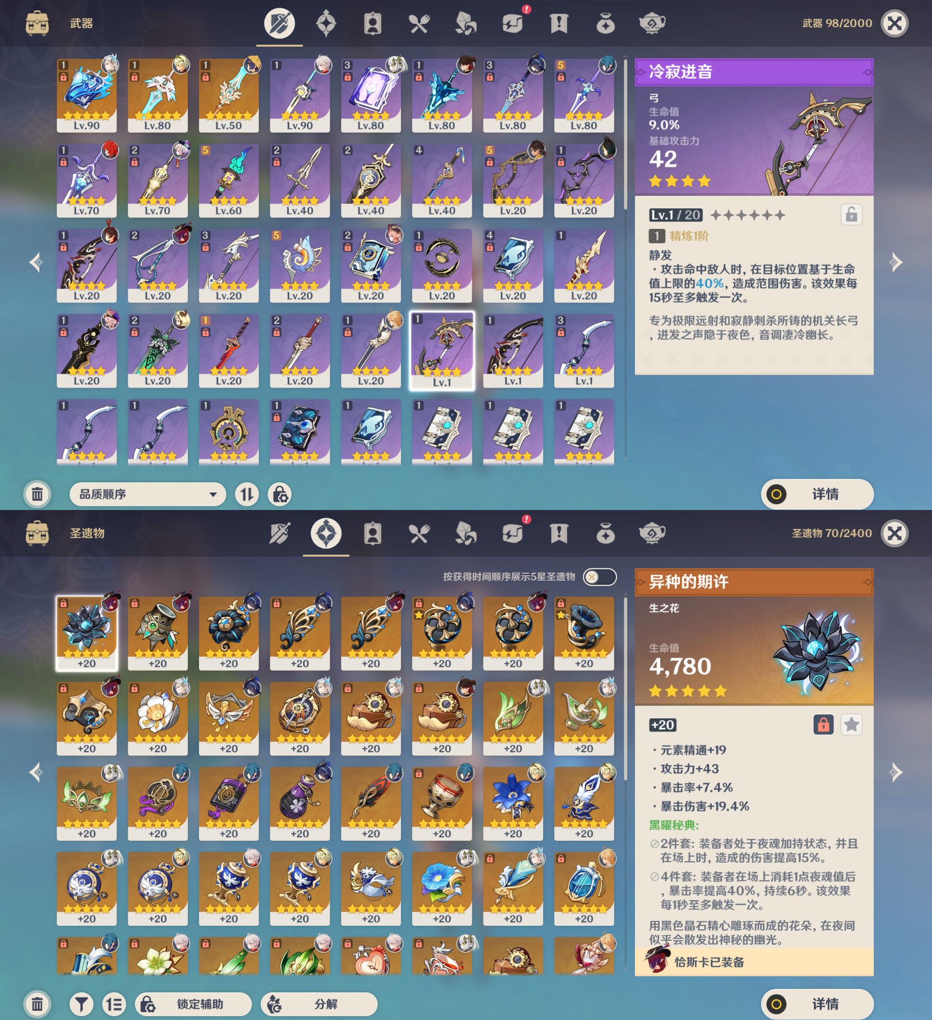 56级/15黄/女主/10个五星角色/3个五星武器/